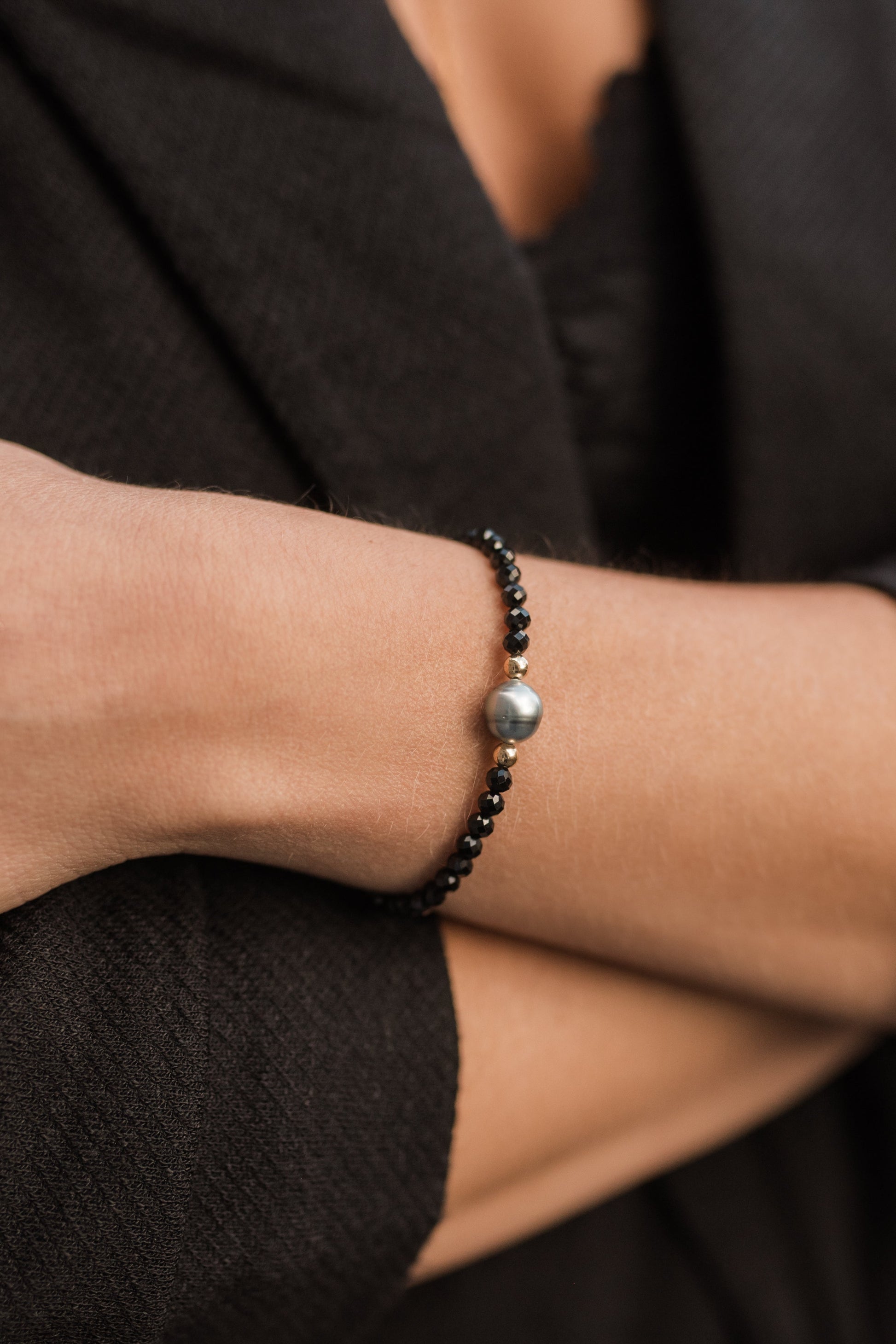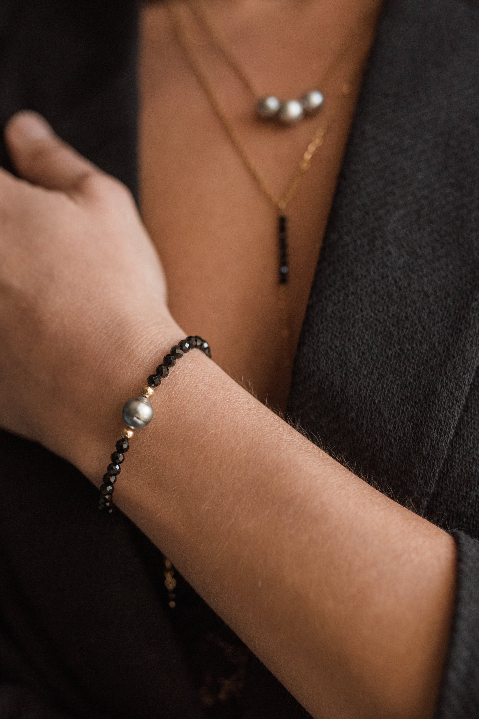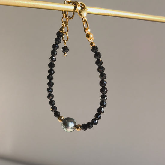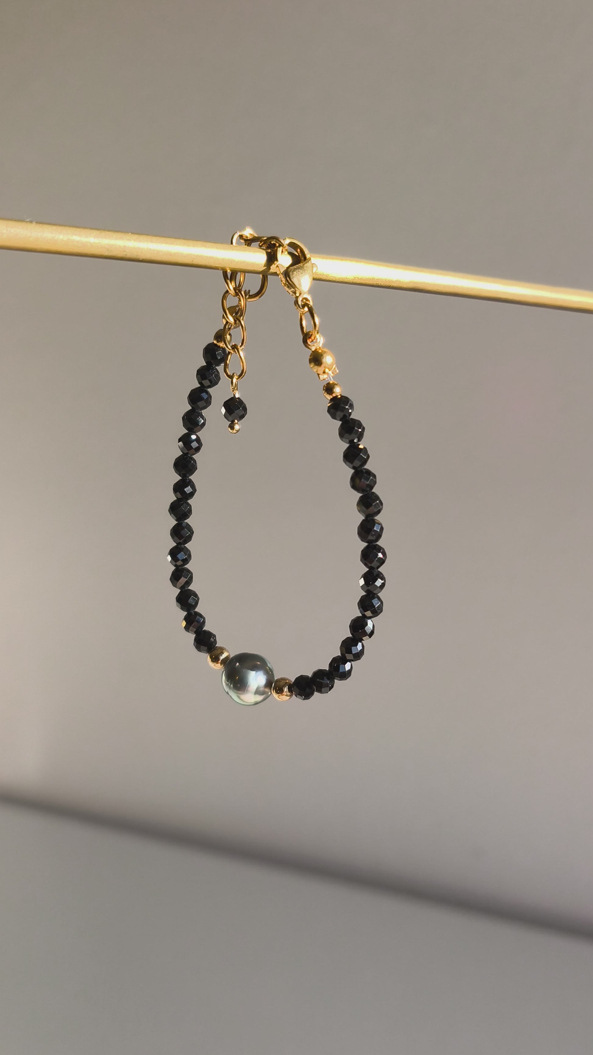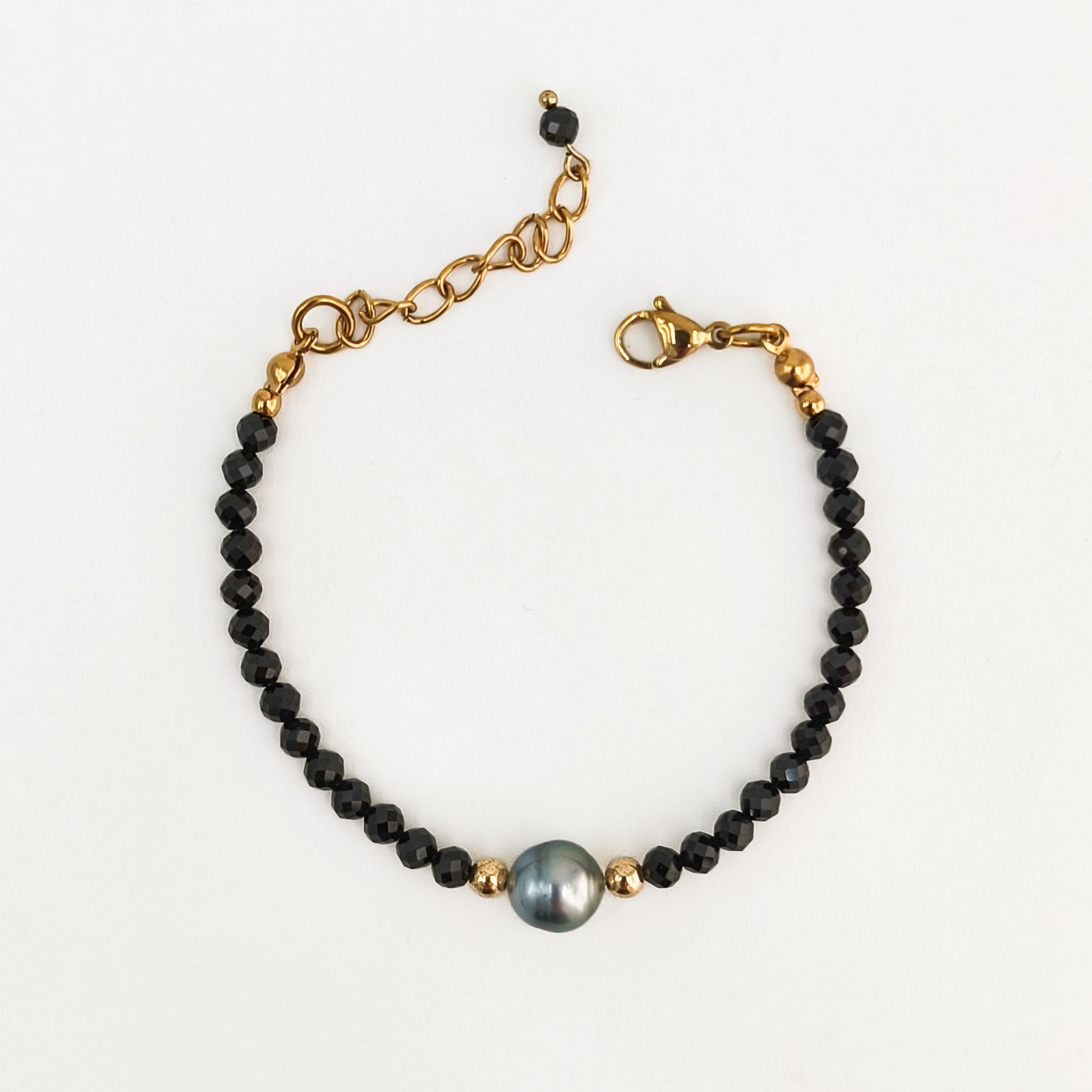 Náramek ze třpytivého spinelu s tahitskou perlou