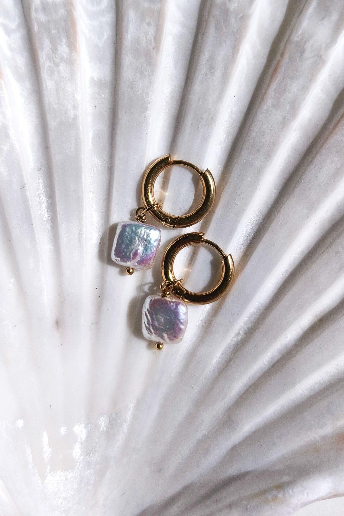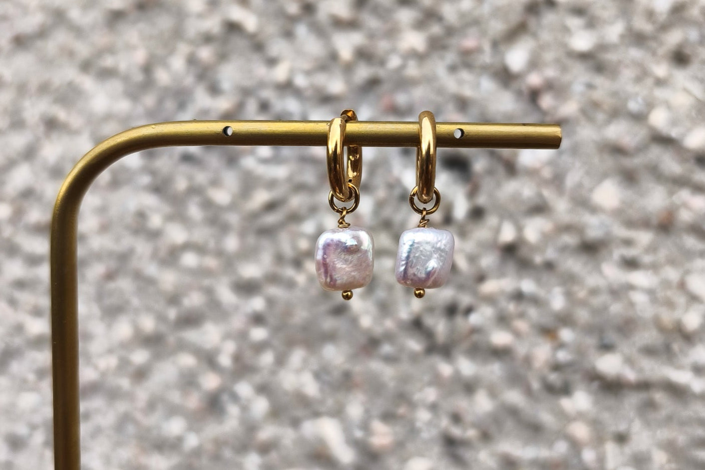 Kruhové náušnice se sladkovodními perlami ve tvaru čtverců