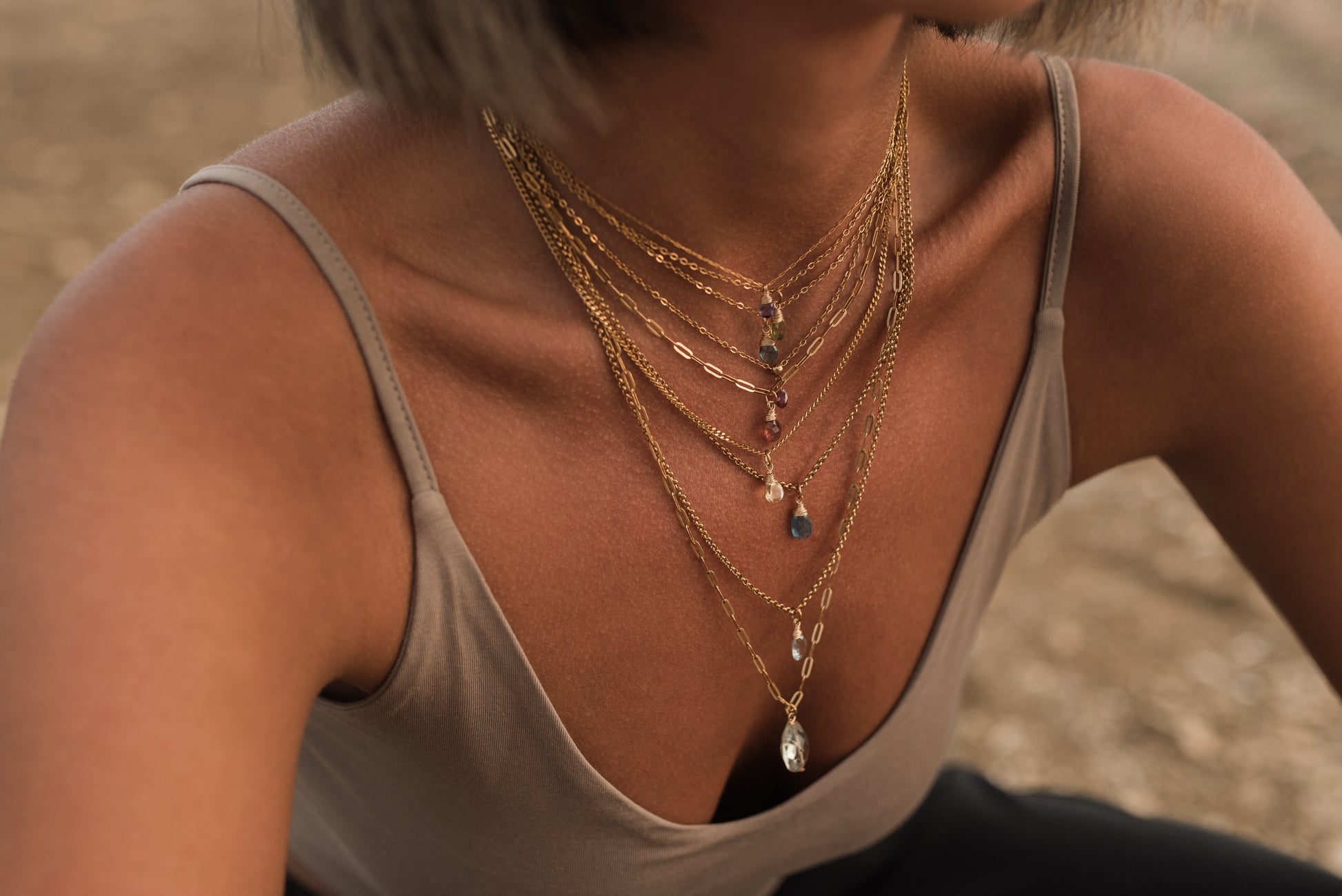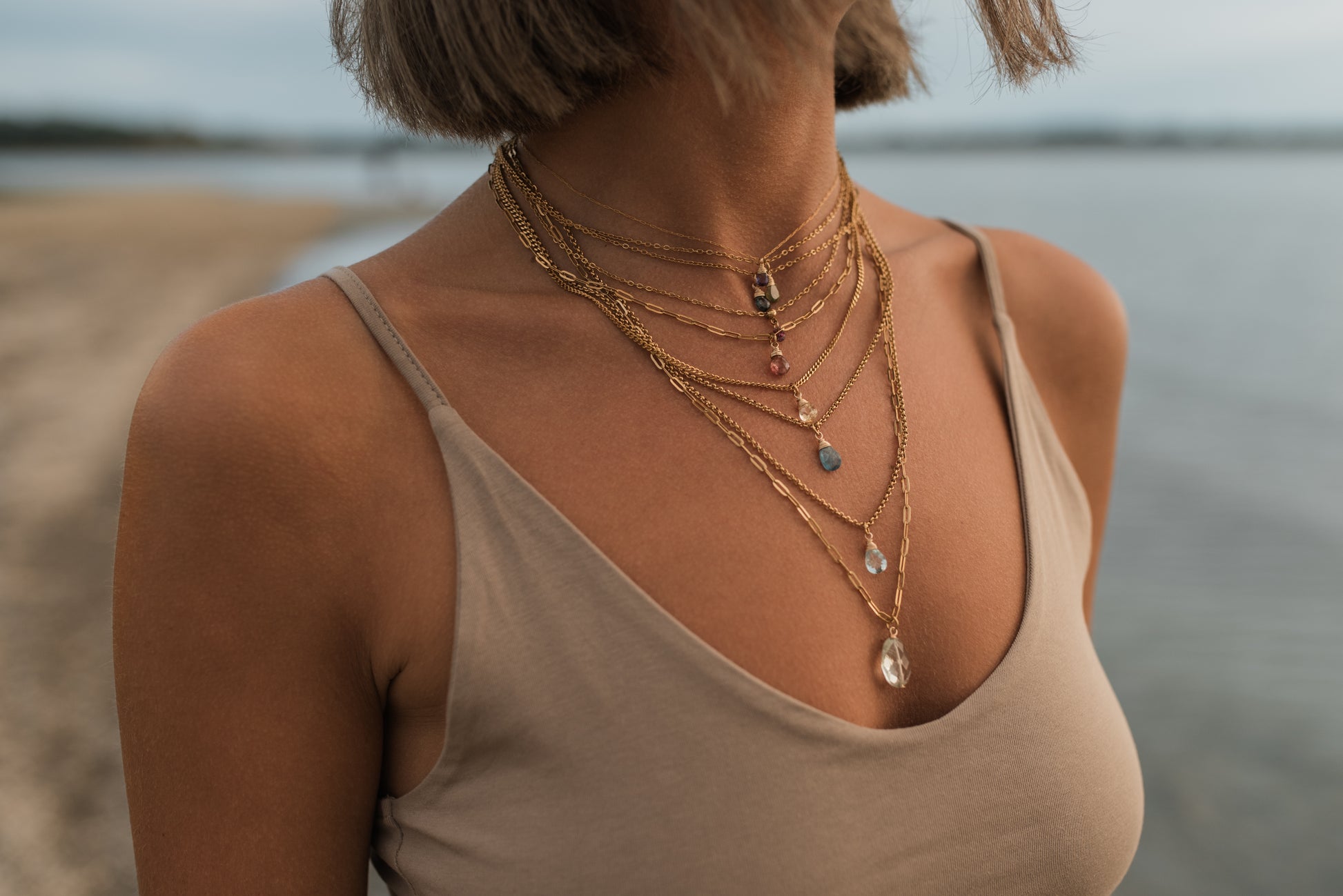 Perlen, Mineralien und Edelsteine sollten nicht mit Wasser, Kosmetika oder Schweiß in Berührung kommen – mit der Zeit nutzen sie sich stärker ab. Ich empfehle, beim Sport, Schlafen und anderen anstrengenden Aktivitäten allen Schmuck abzulegen, um die Lebensdauer zu verlängern. Ausnahme ist Vollmetallschmuck aus Stahl ohne Steine oder Perlen.