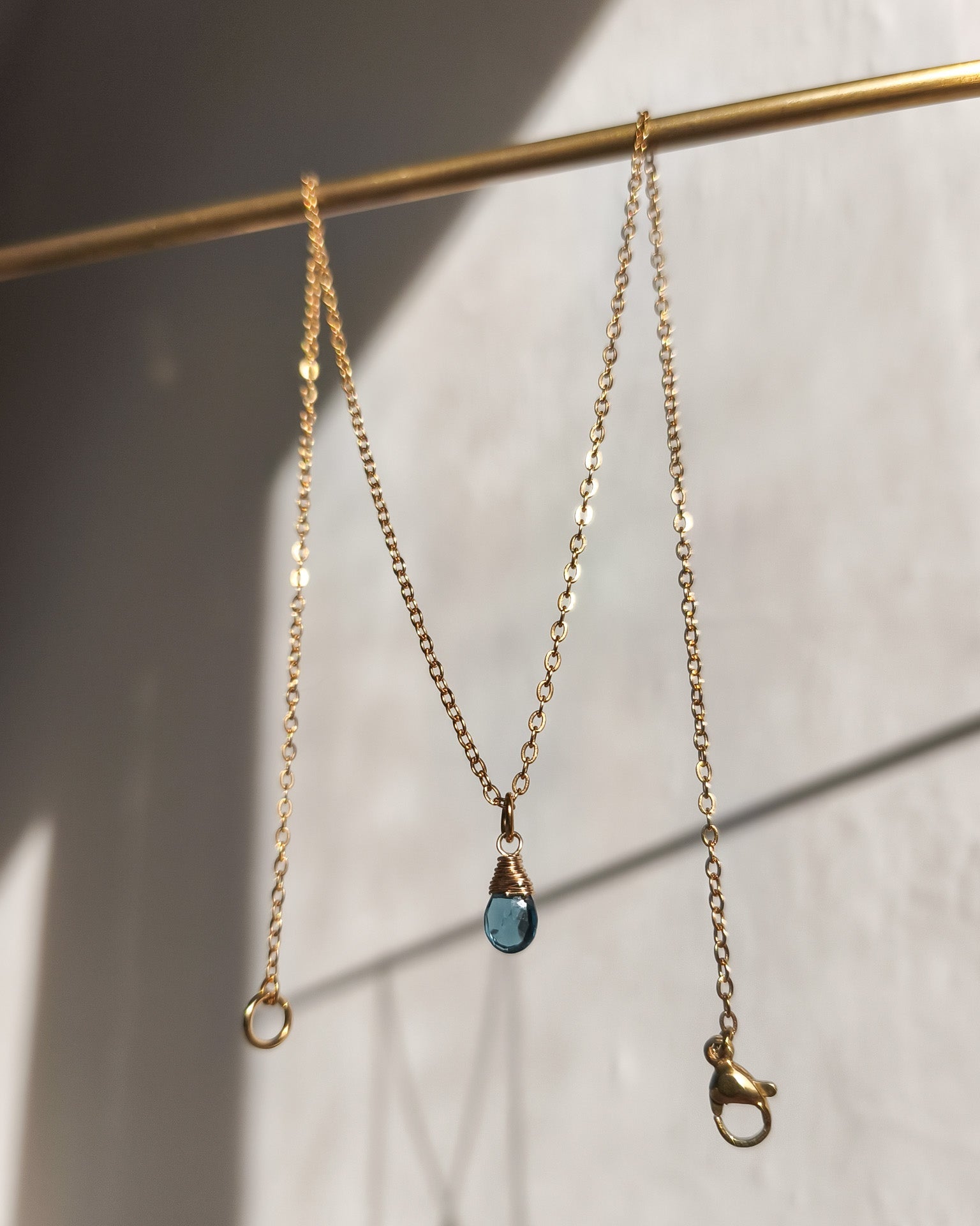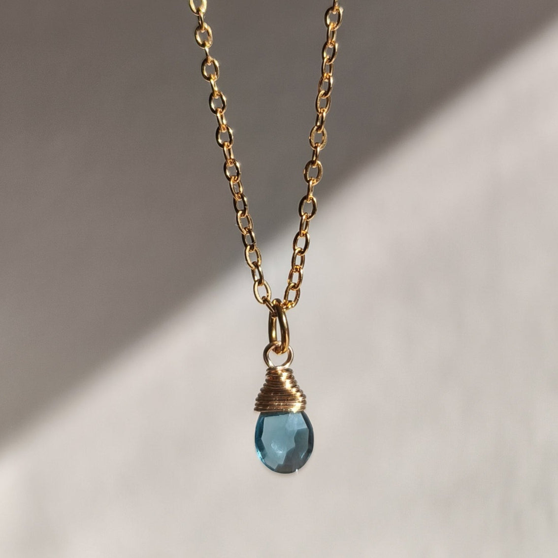 Řetízek s topazem - barva London Blue - broušeným do tvaru kapky