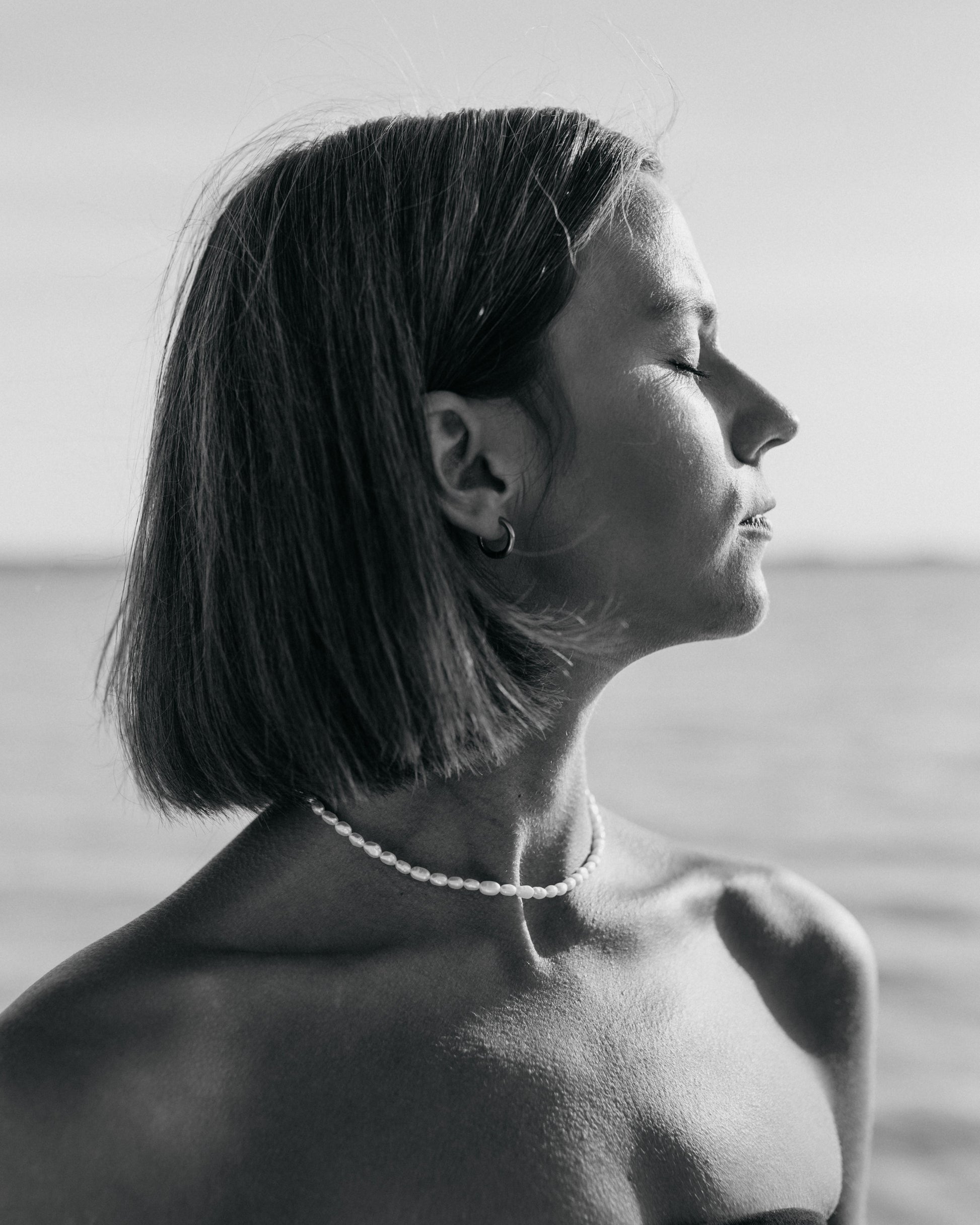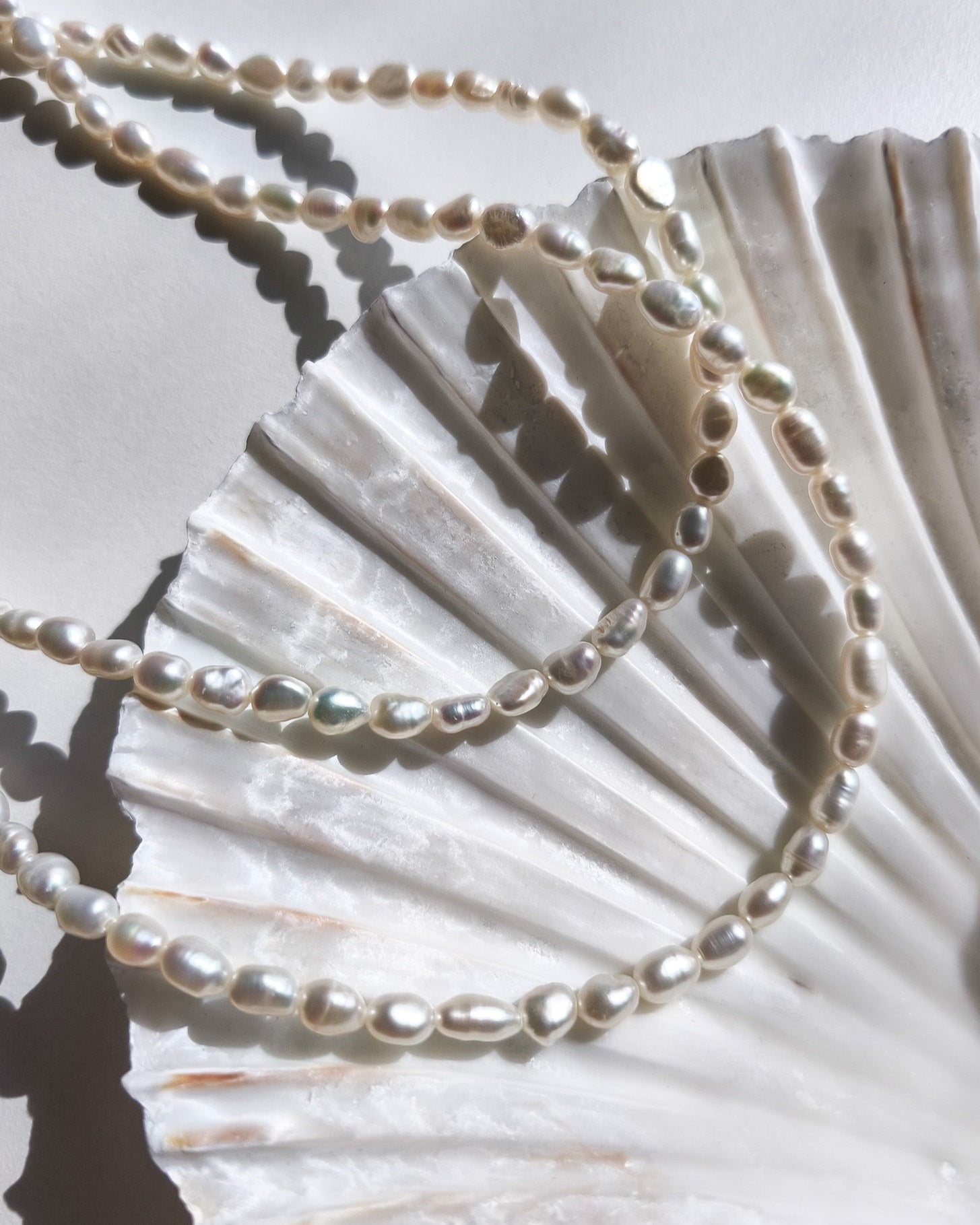 Pearls, minerals and gemstones should not come into contact with water, cosmetics or sweat - over time they will wear out more. I recommend removing all jewellery when doing sports, sleeping or other strenuous activities to extend their lifespan. The exception is all-metal jewellery made of steel without stones or pearls.