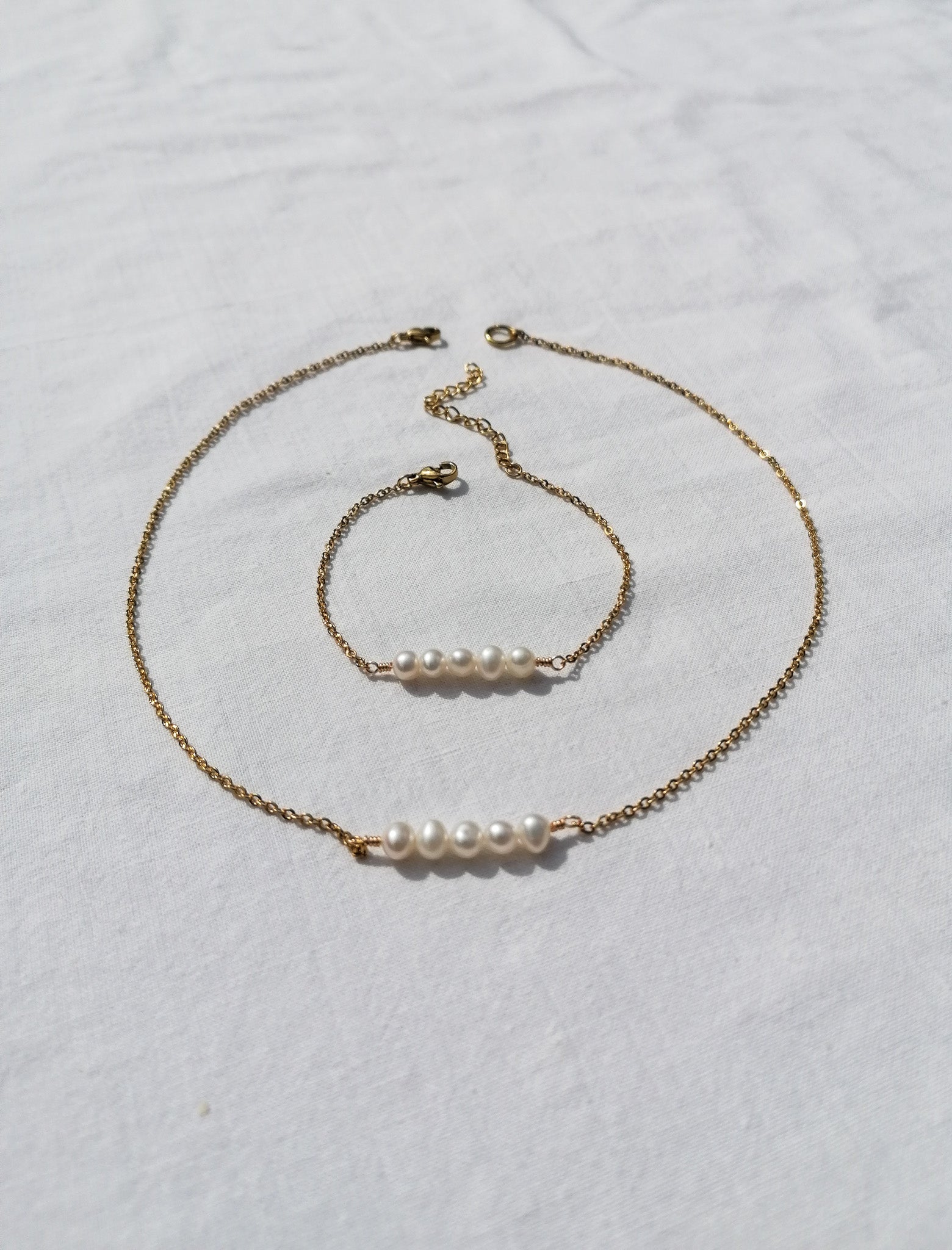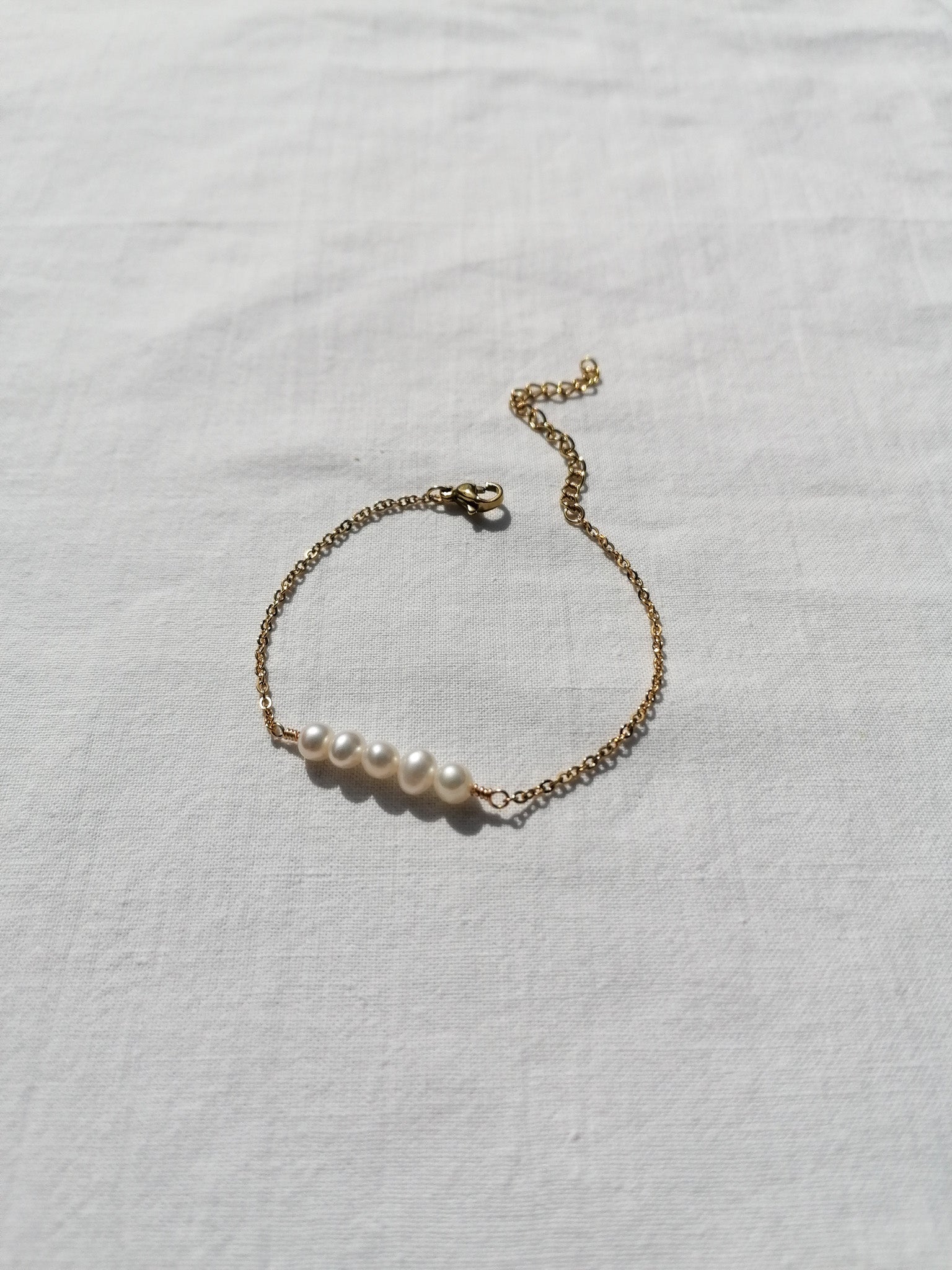 Five freshwater pearls on a fine chain