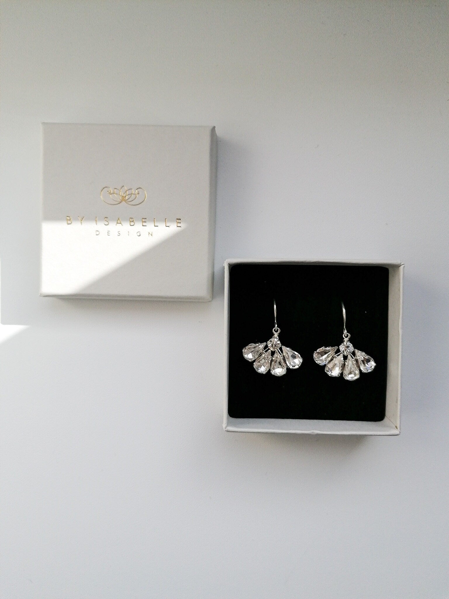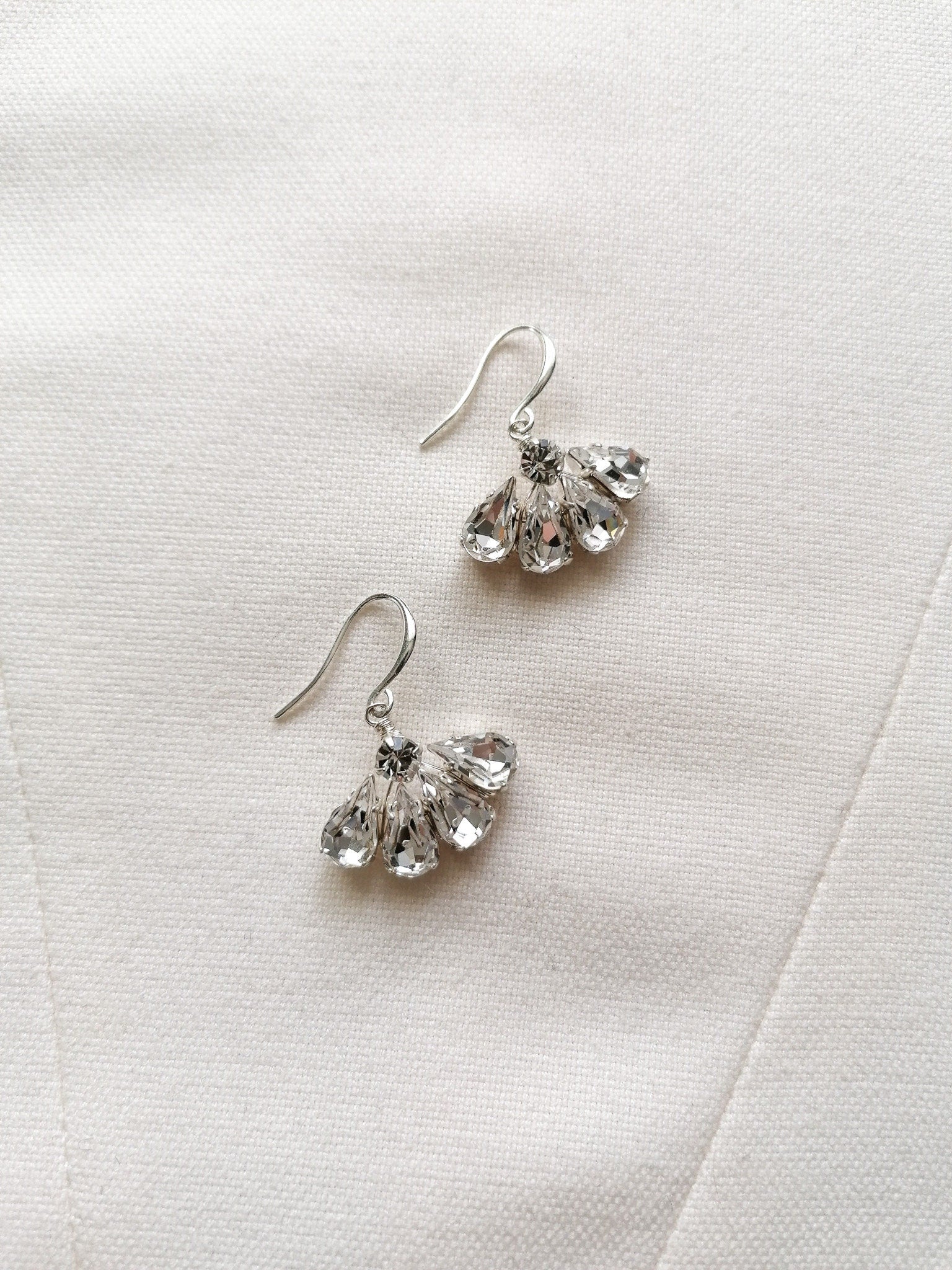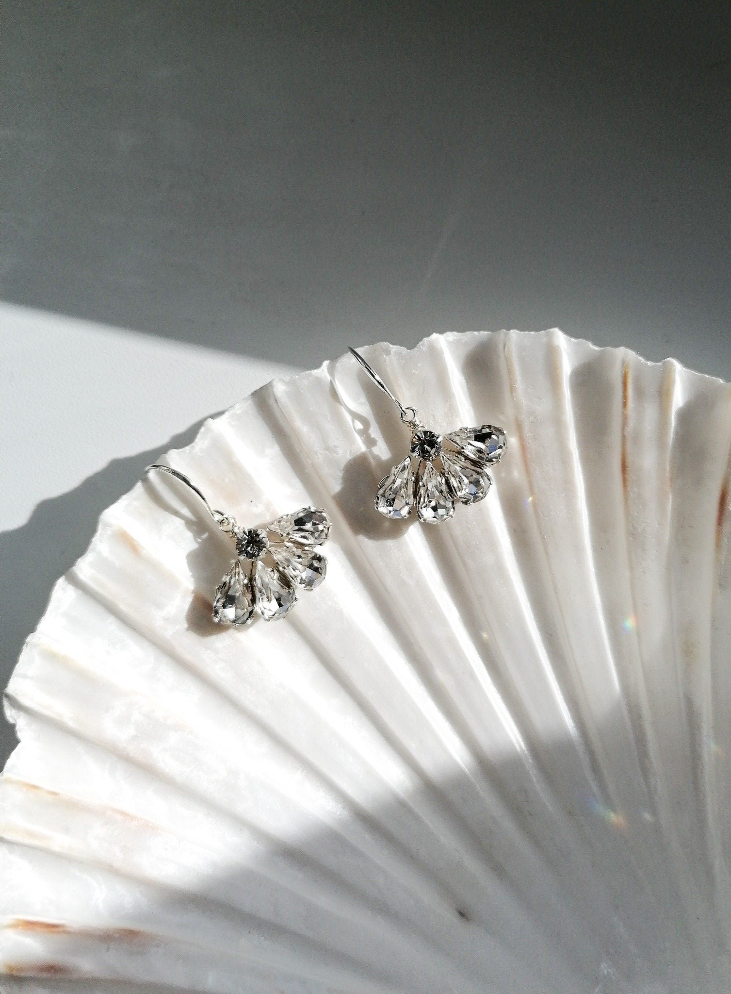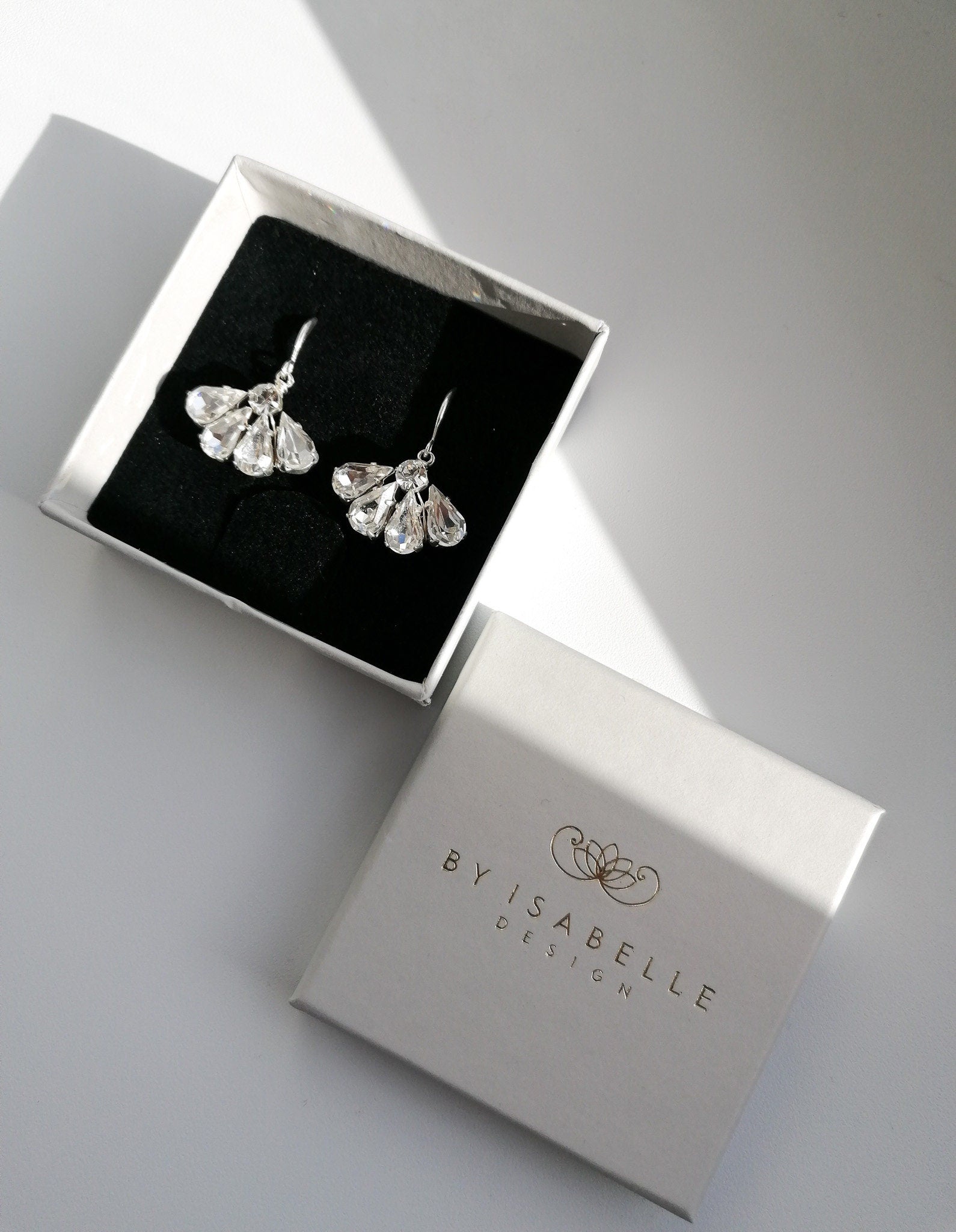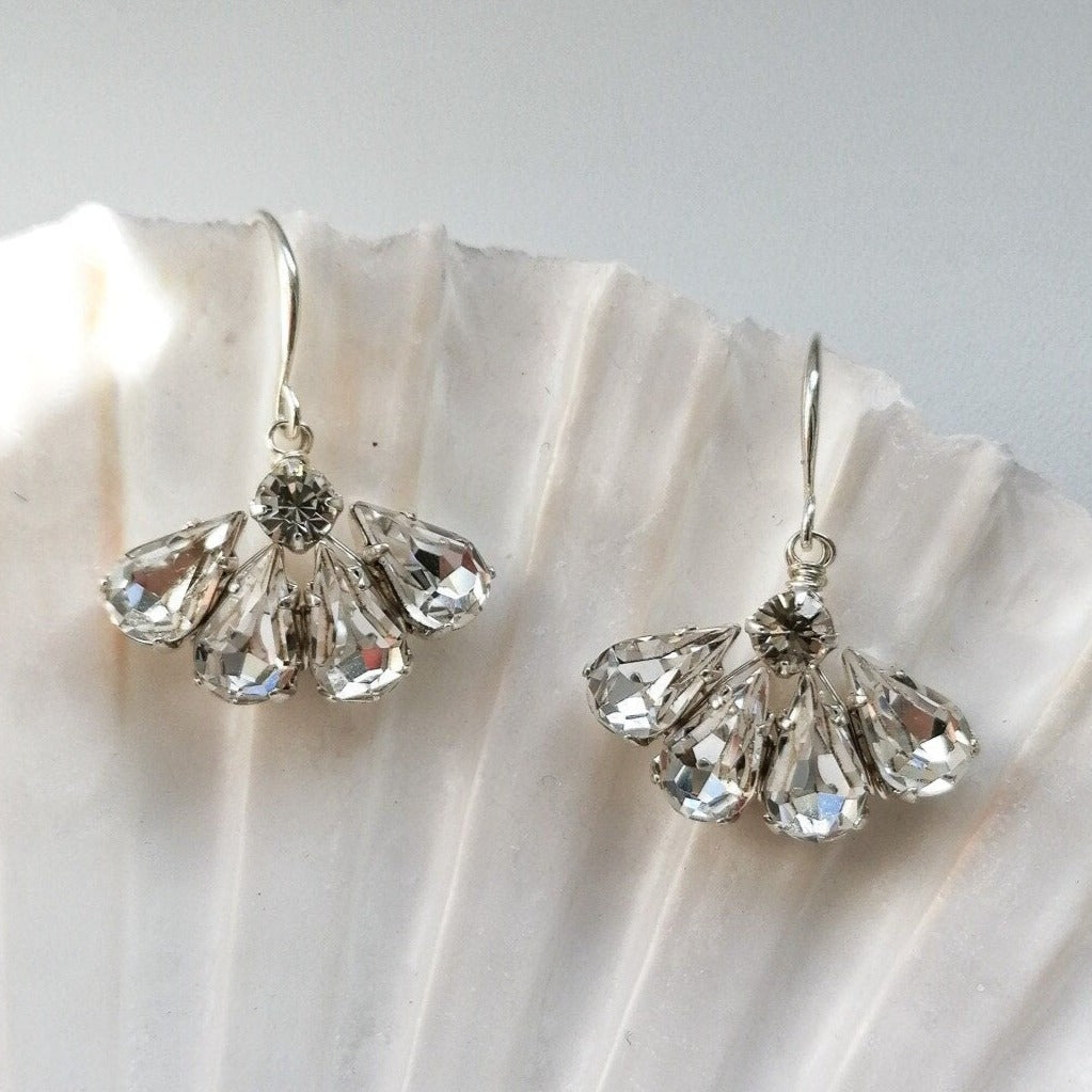 Earrings made of Preciosa stones in the shape of a fan, inspired by the Art Deco era