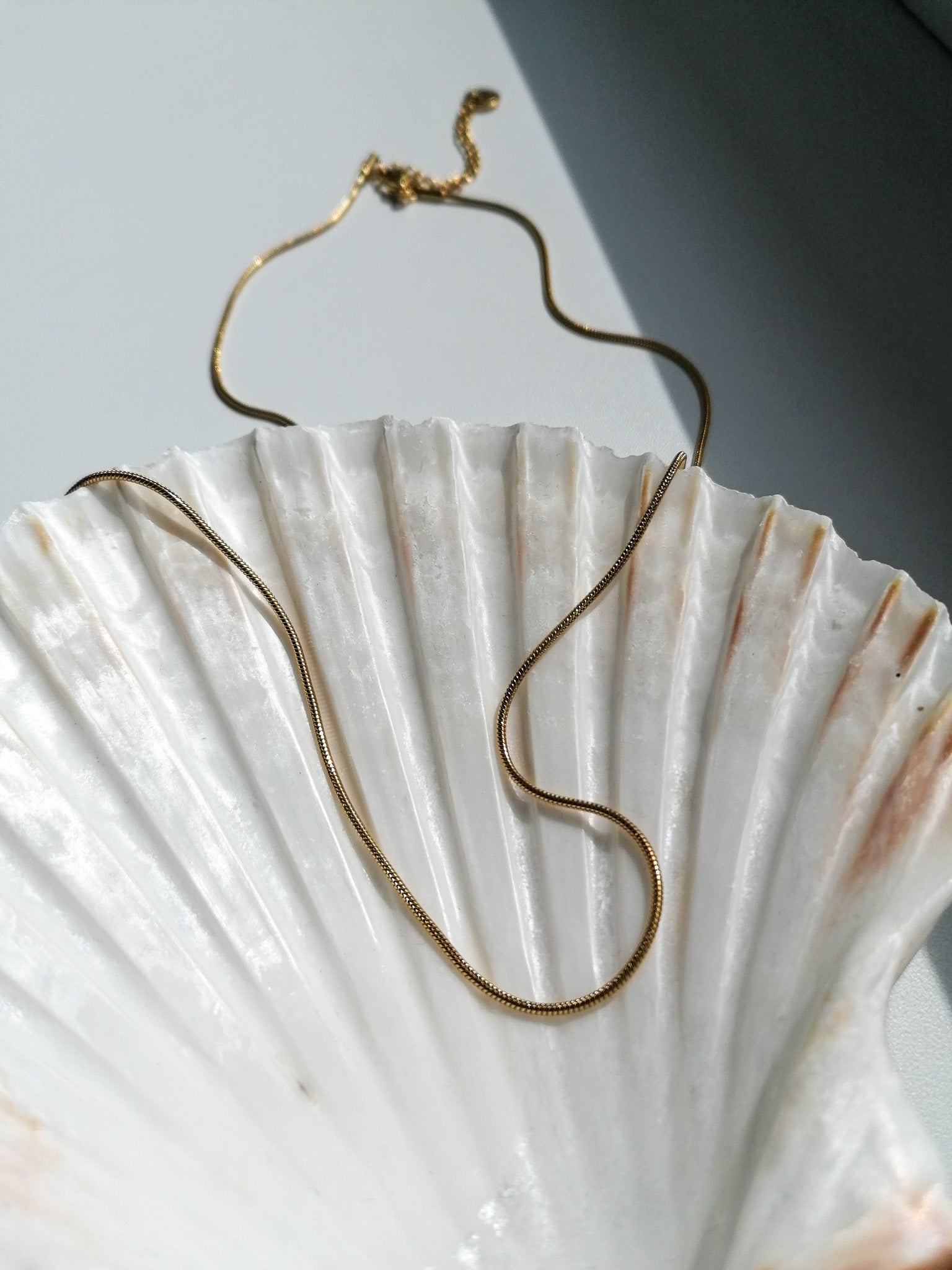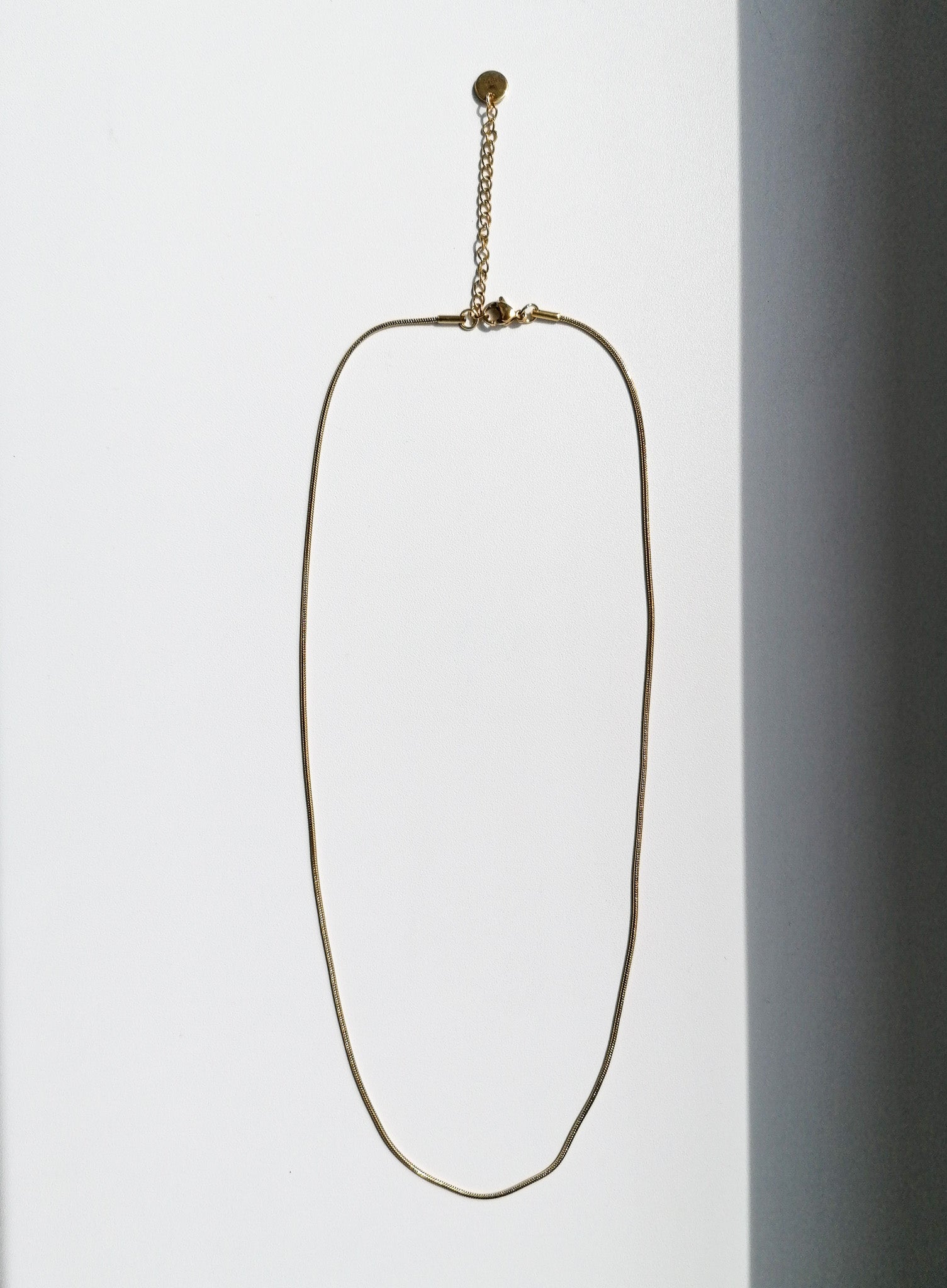 Long glittering snake chain with adjustable length, also suitable for layering with other necklaces