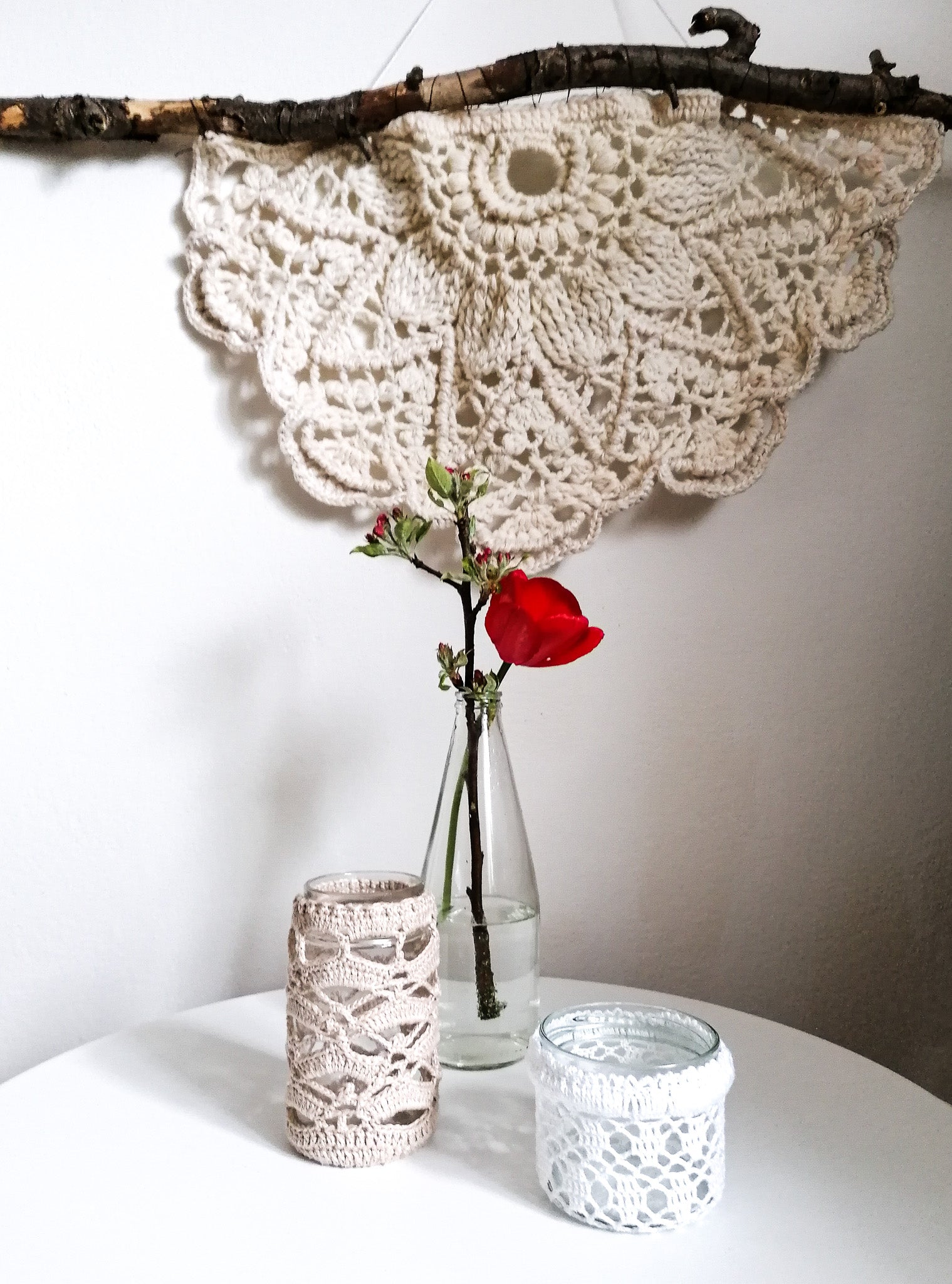 The lace is crocheted from cotton yarn