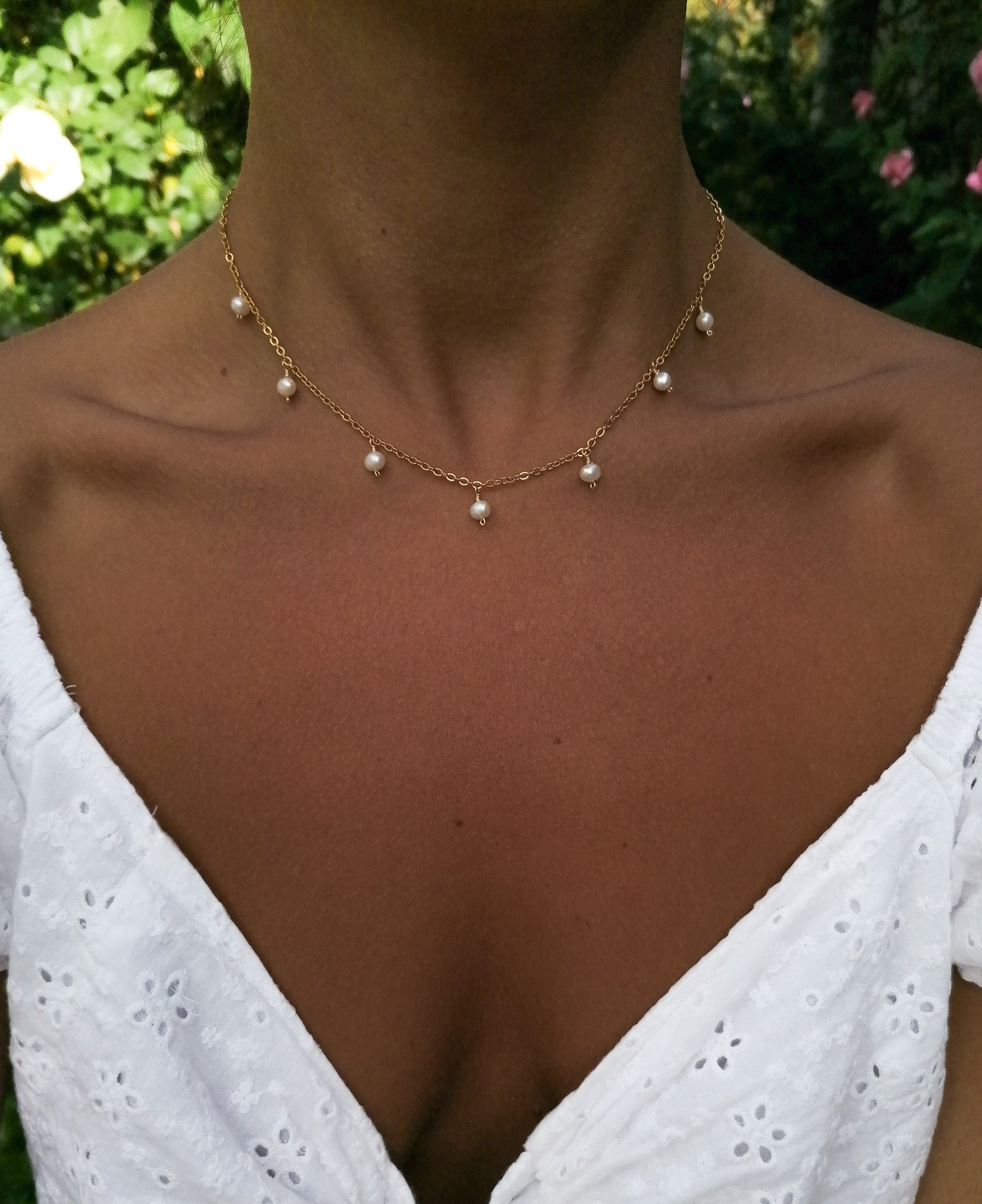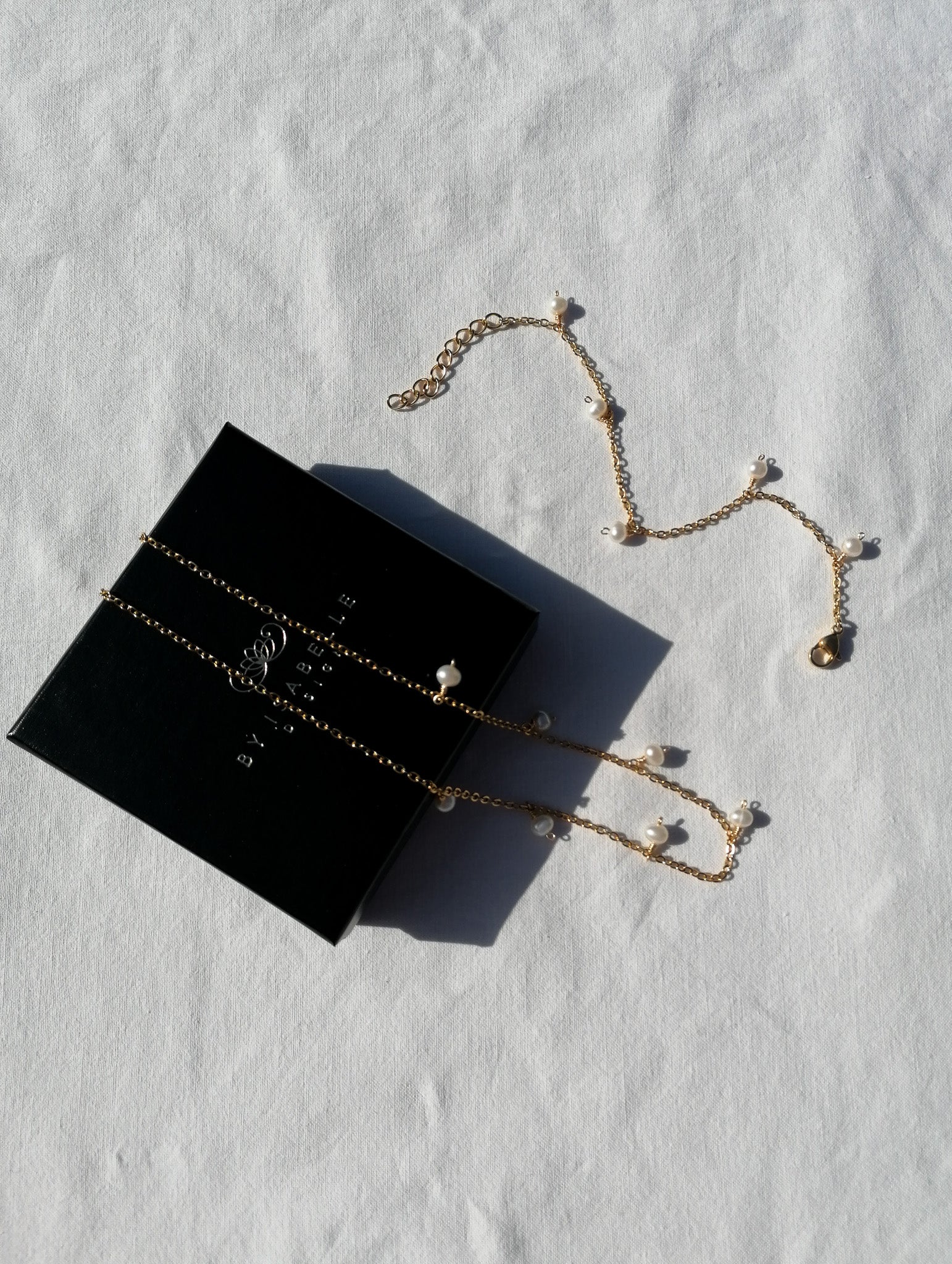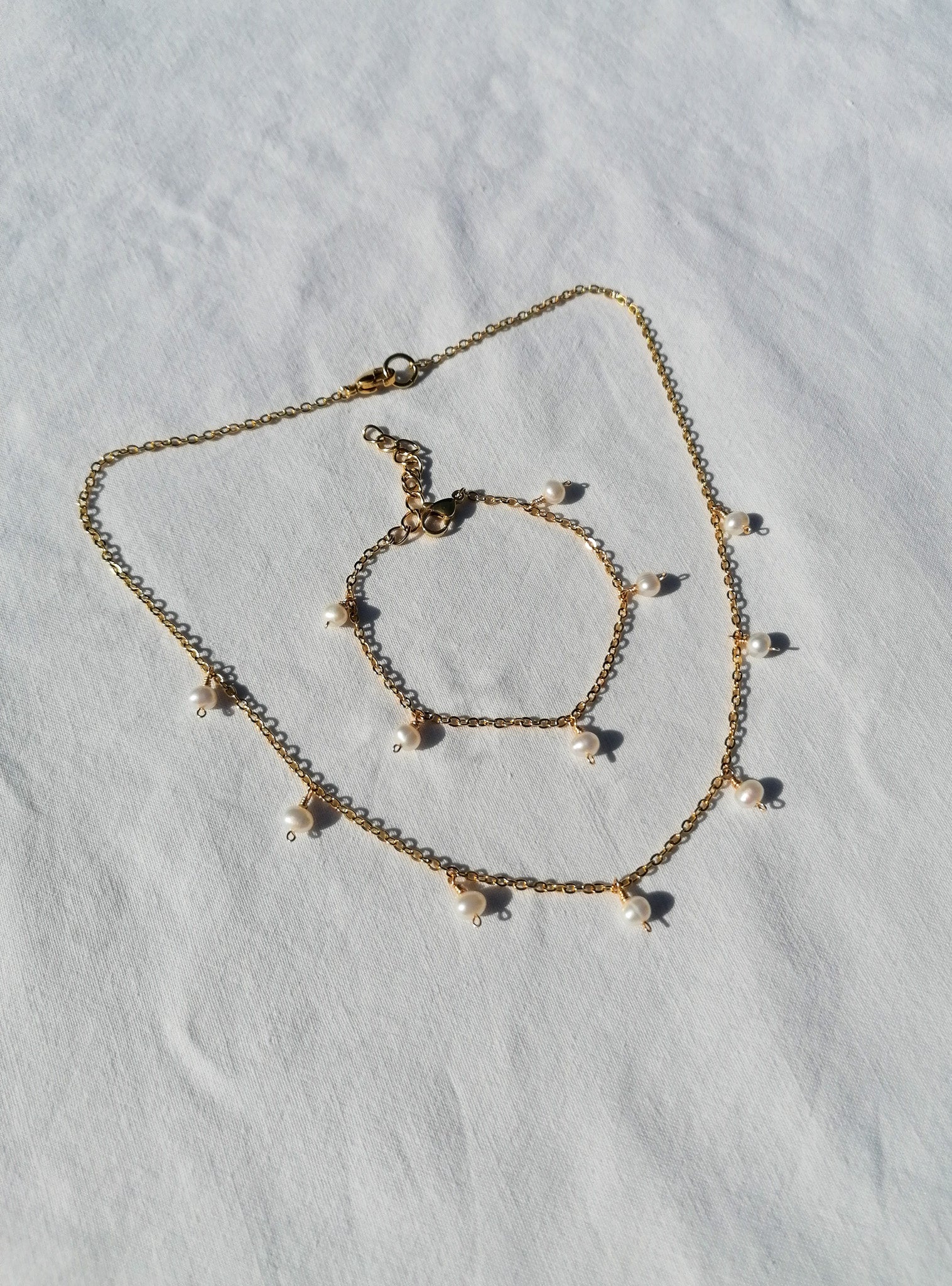 A delicate set perfect for everyday wear - thanks to the smart PVD gold plating, this necklace is waterproof, the gold color lasts