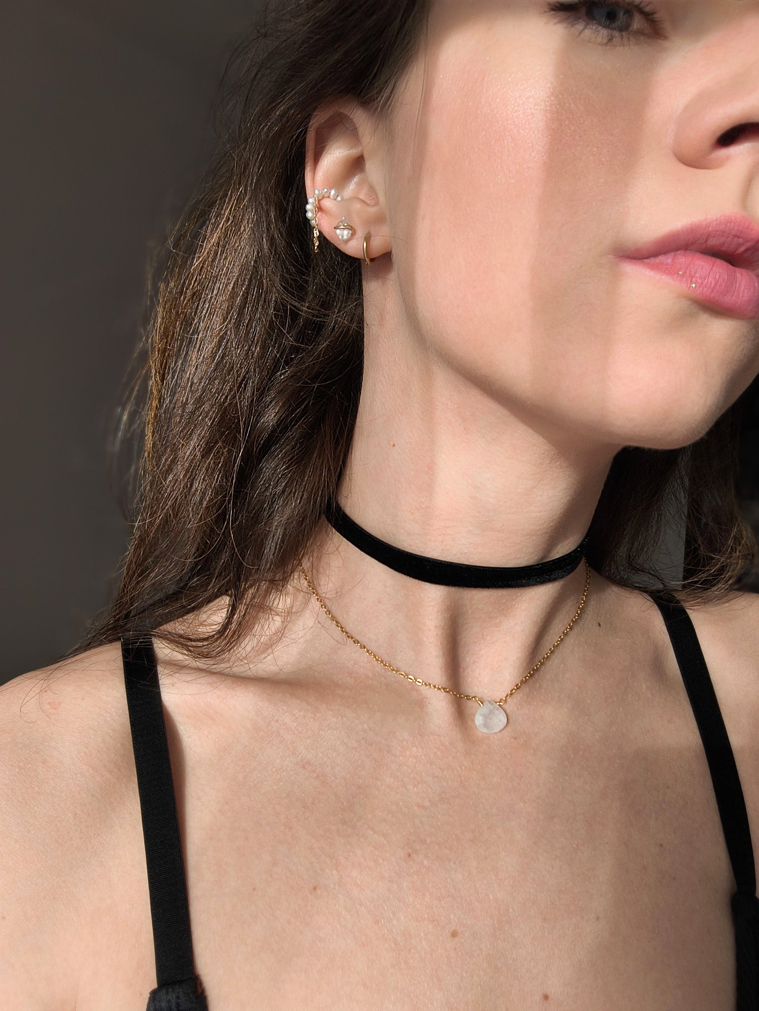 There is a small freshwater pearl on the extension chain - a cute detail that you will appreciate, for example, with an open-back garment or a shorter hairstyle.