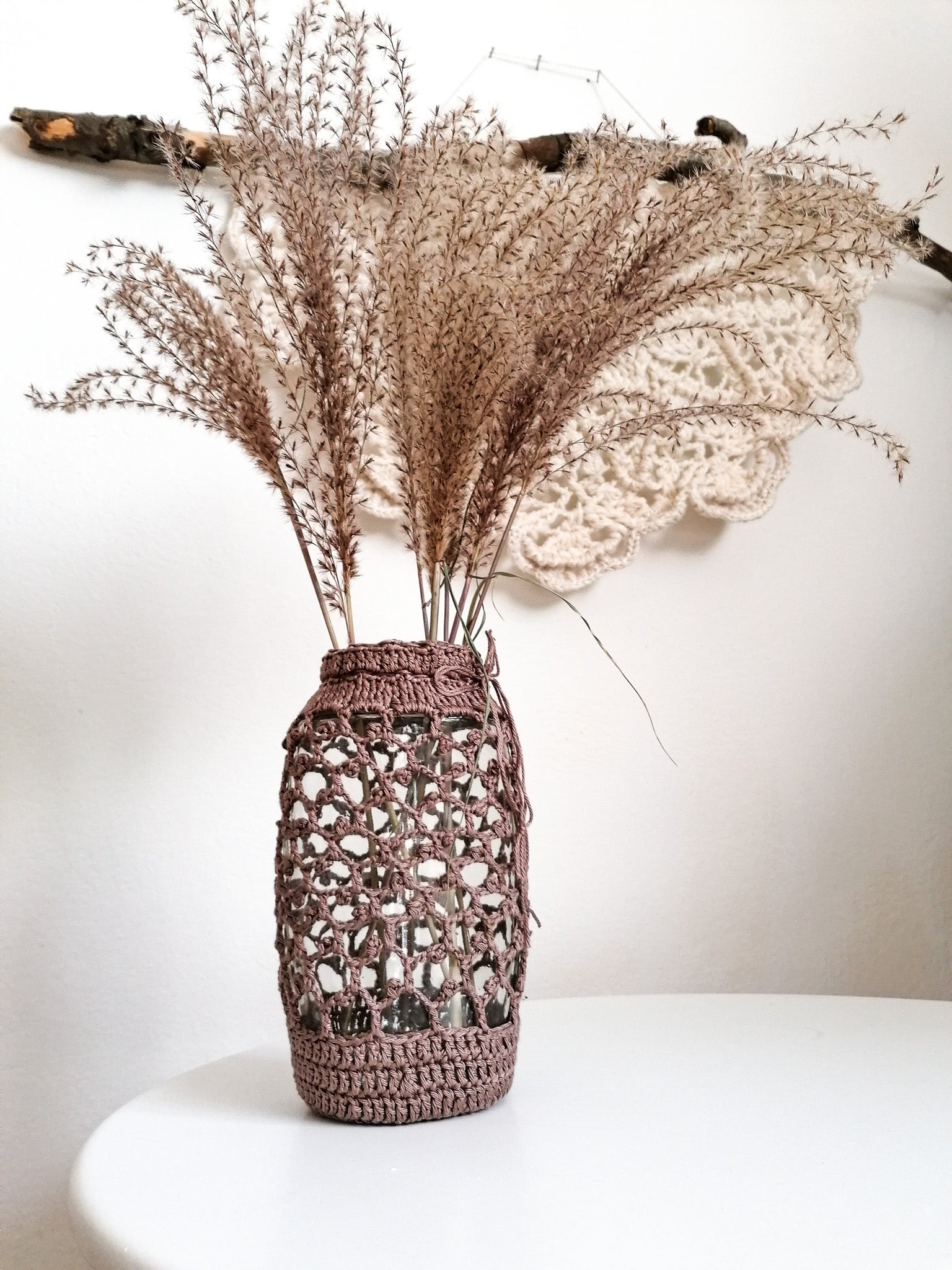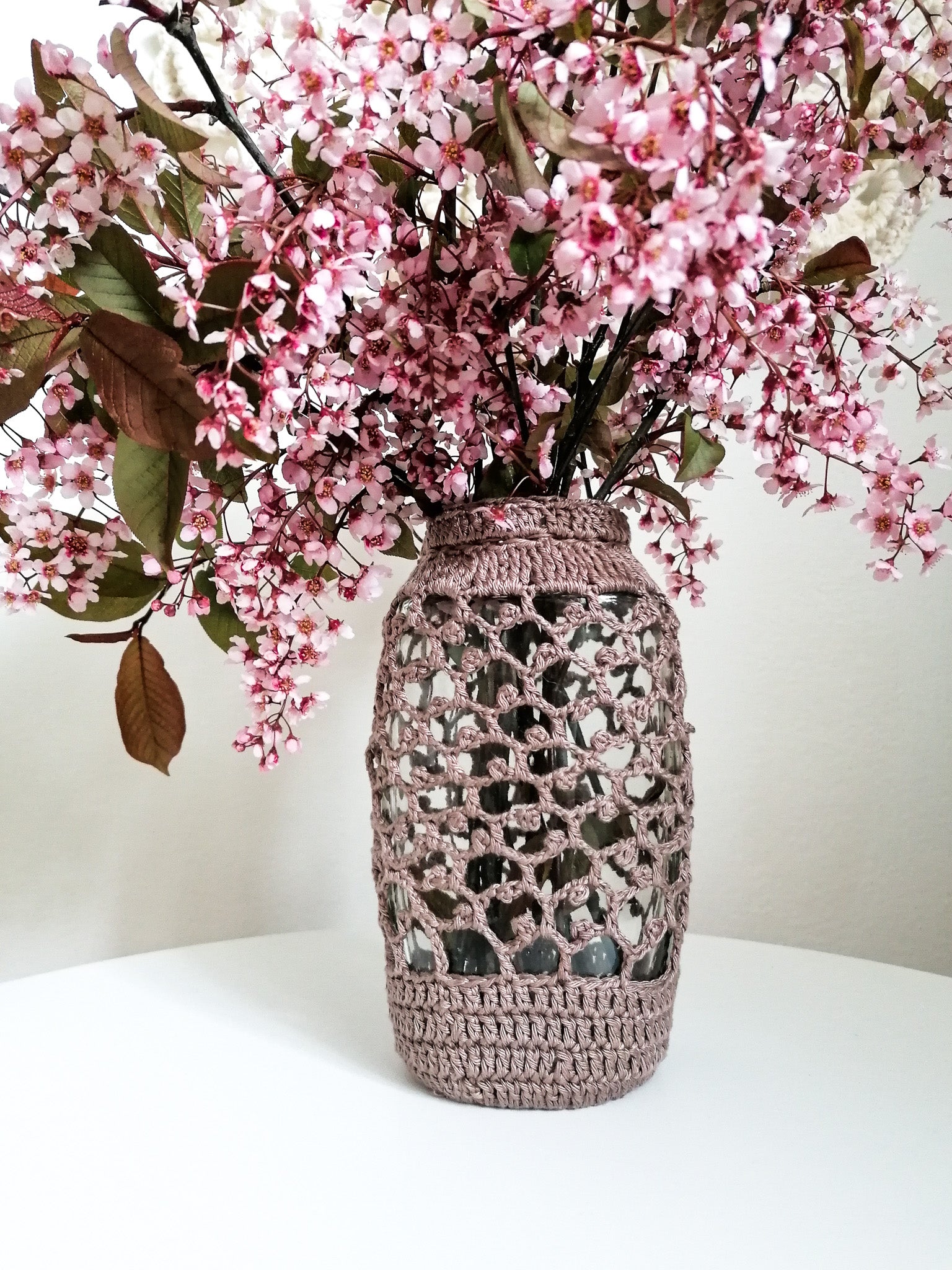 The crocheted cover can be easily removed and washed, the vase can be washed