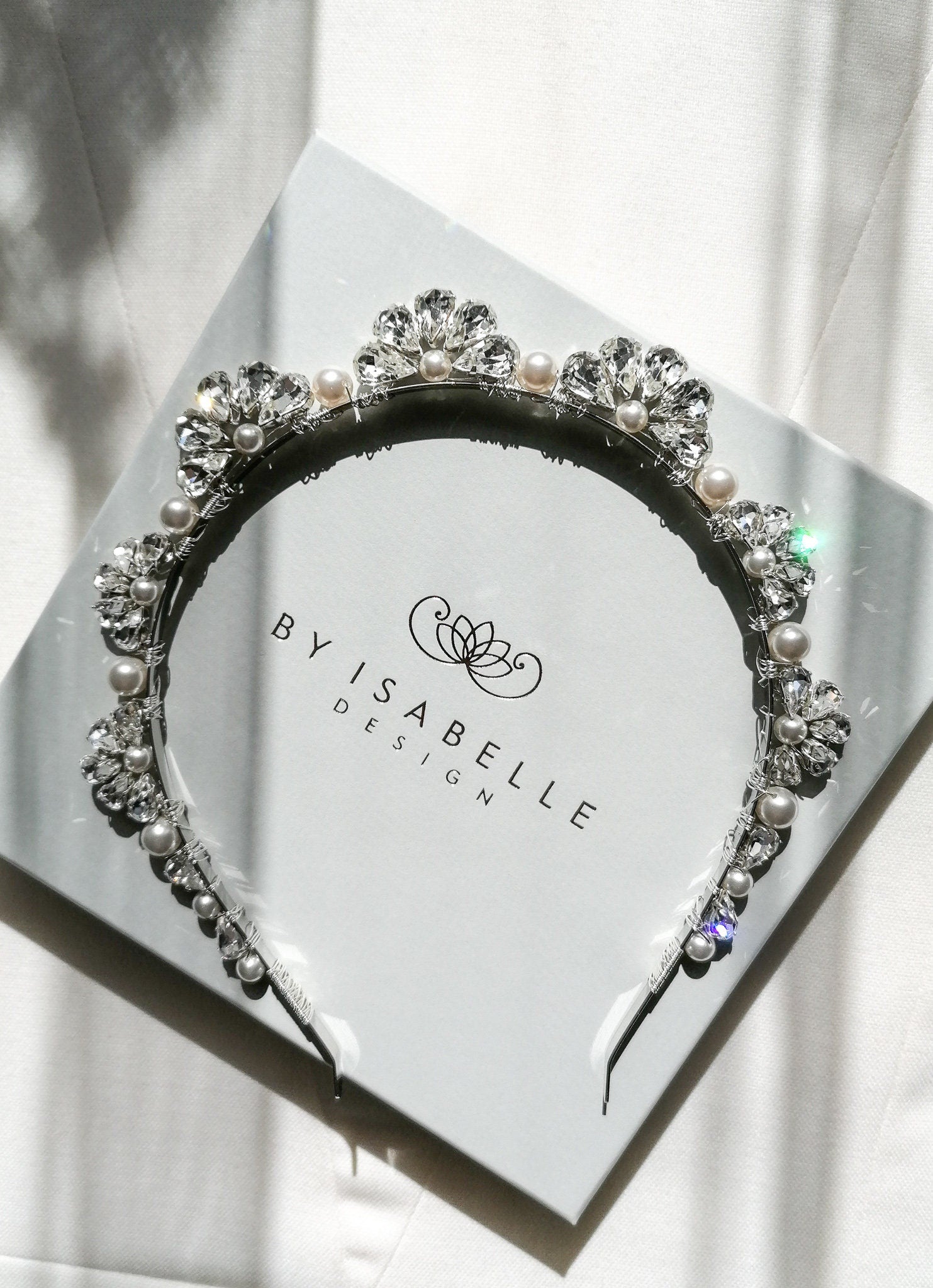 Sparkling Preciosa crystals and pearls from the Austrian brand tied to a comfortable headband.