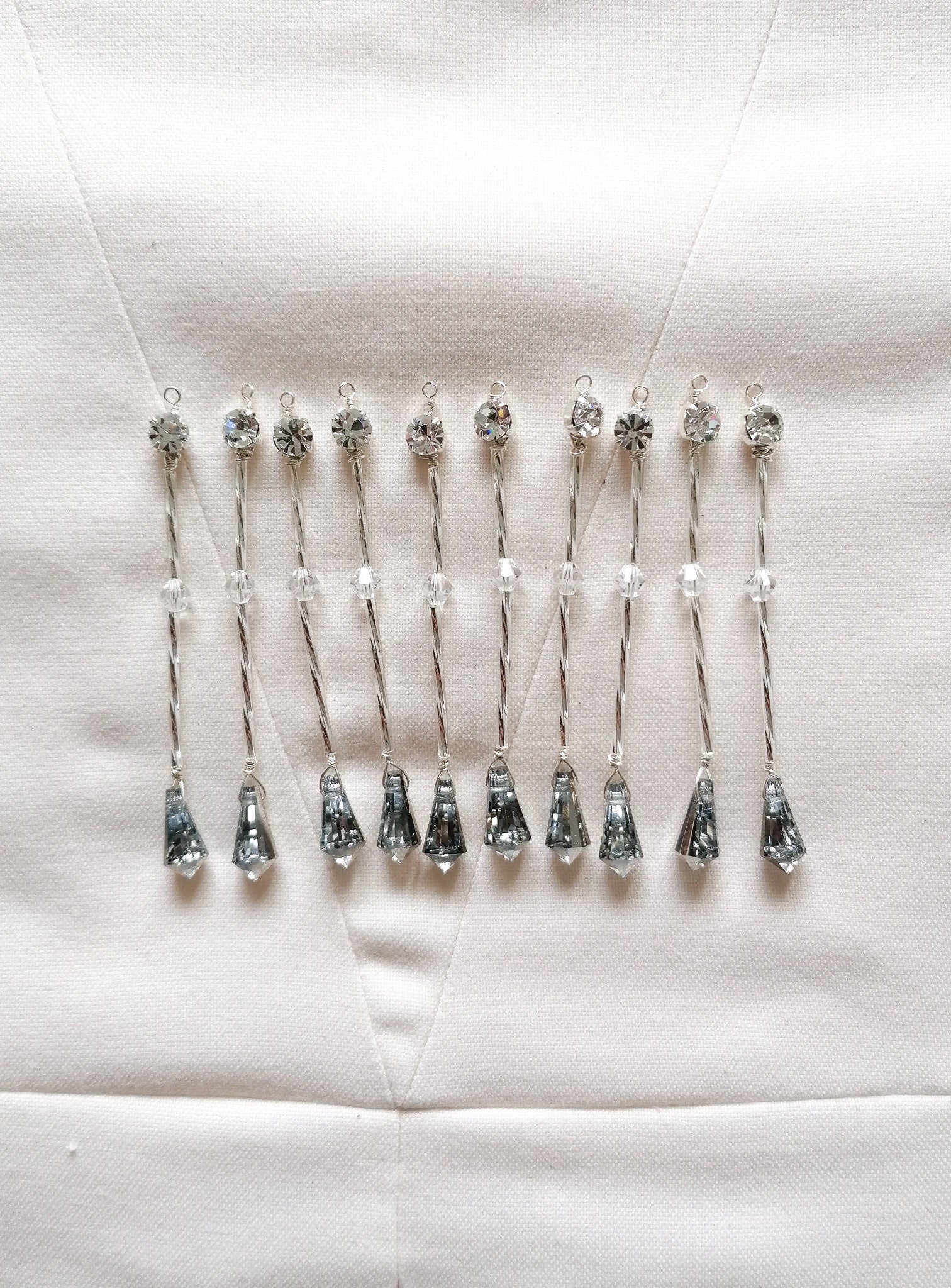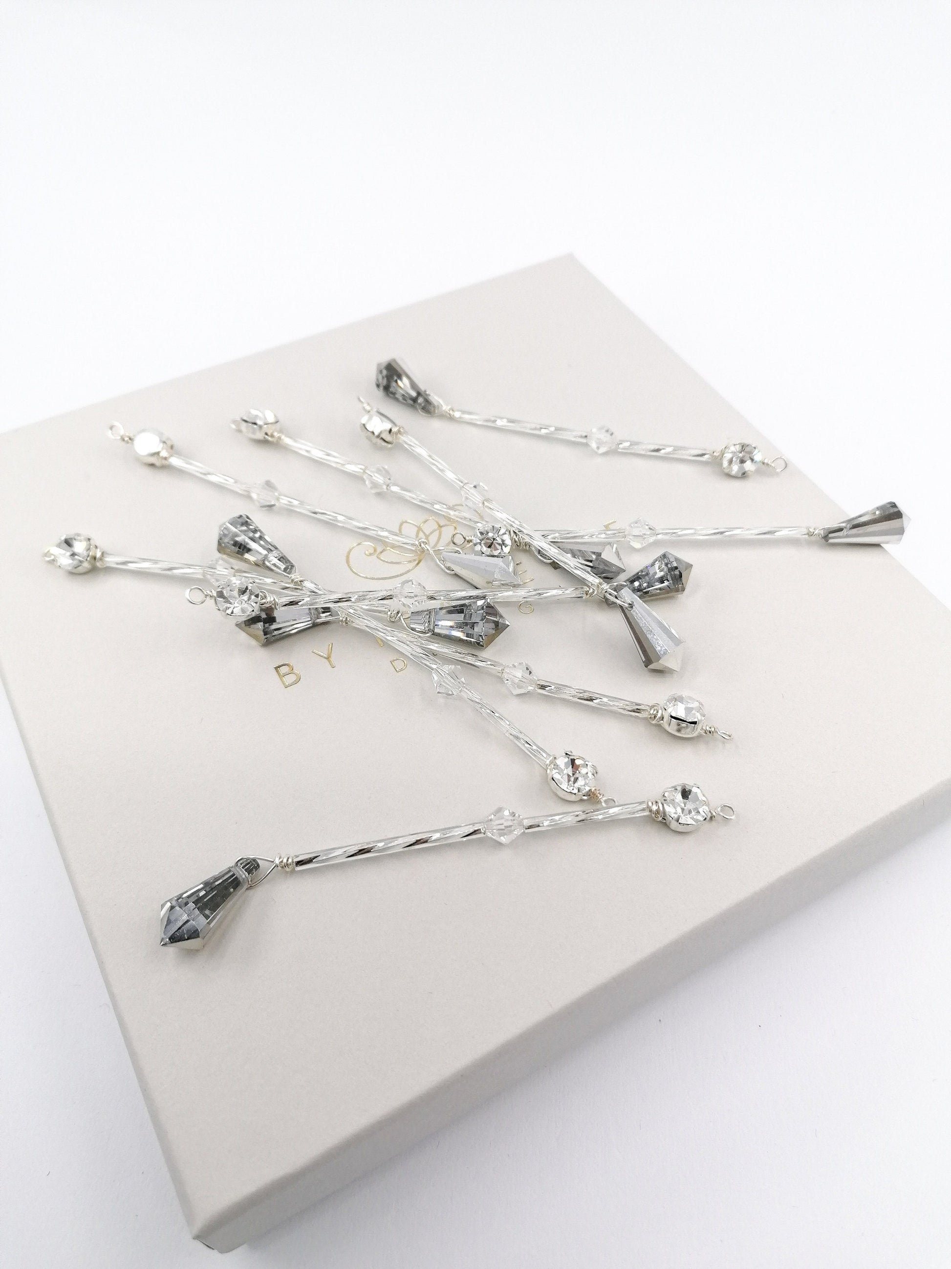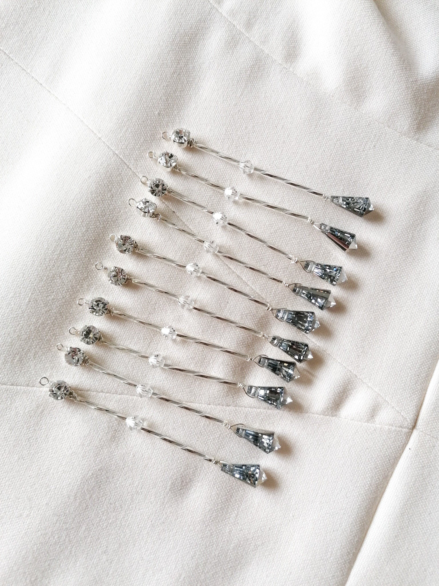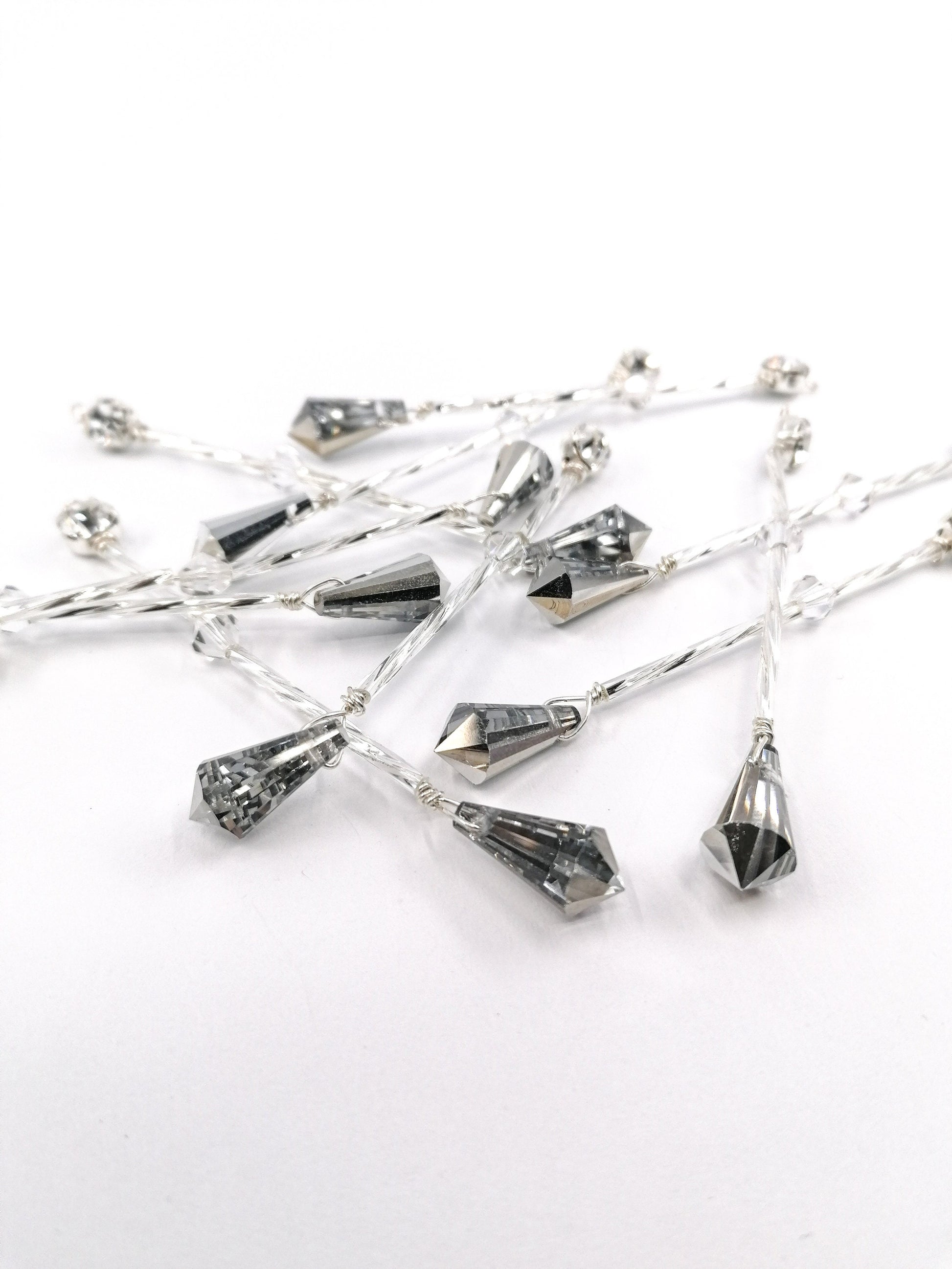 A set of ten hanging Christmas ornaments that will create the impression of beautiful shiny icicles on your tree.