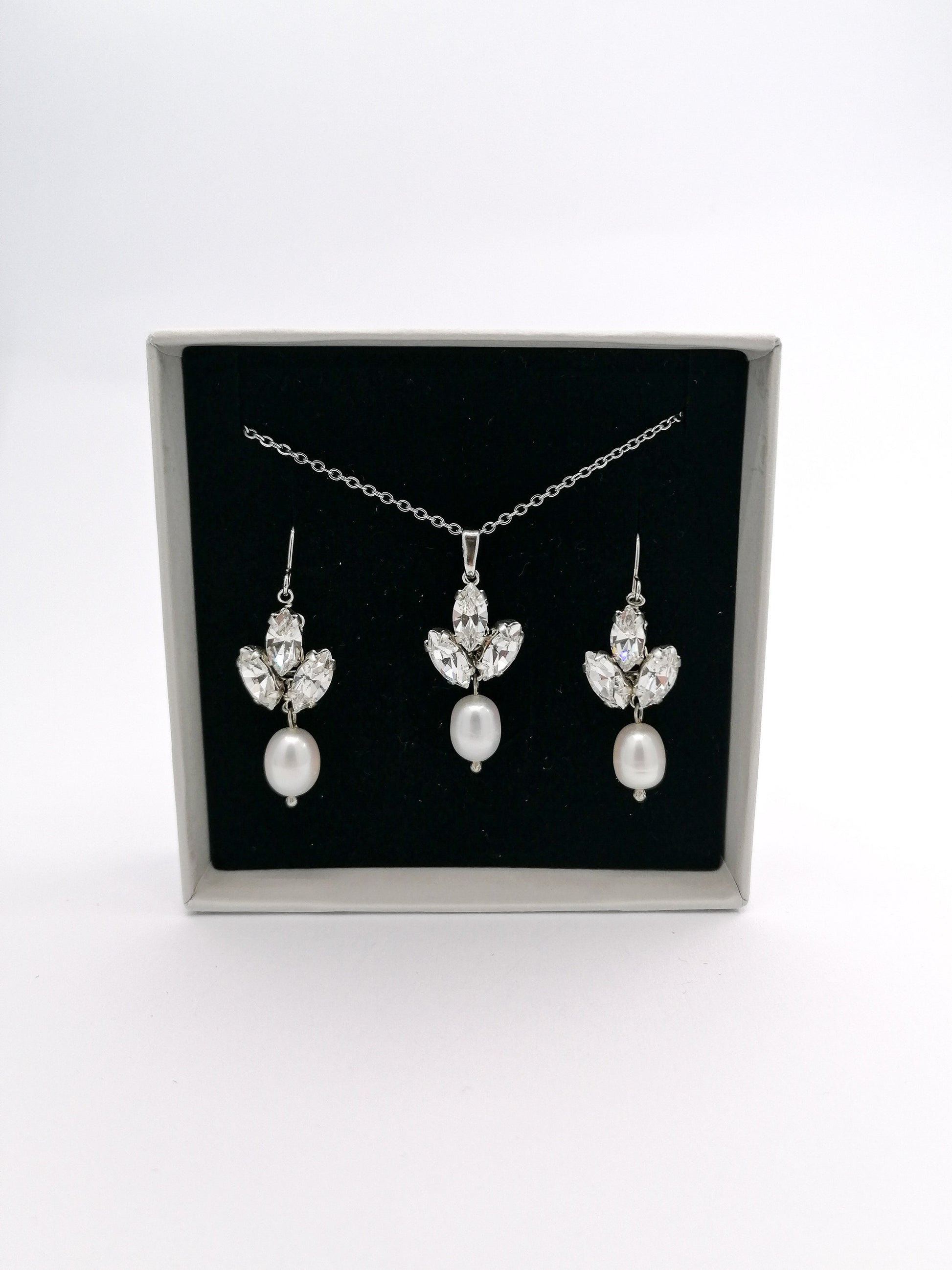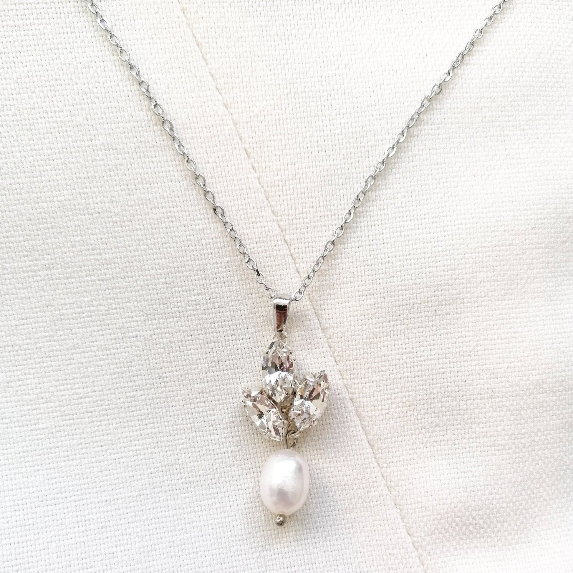 Necklace made of sparkling Preciosa crystals and an oval freshwater pearl