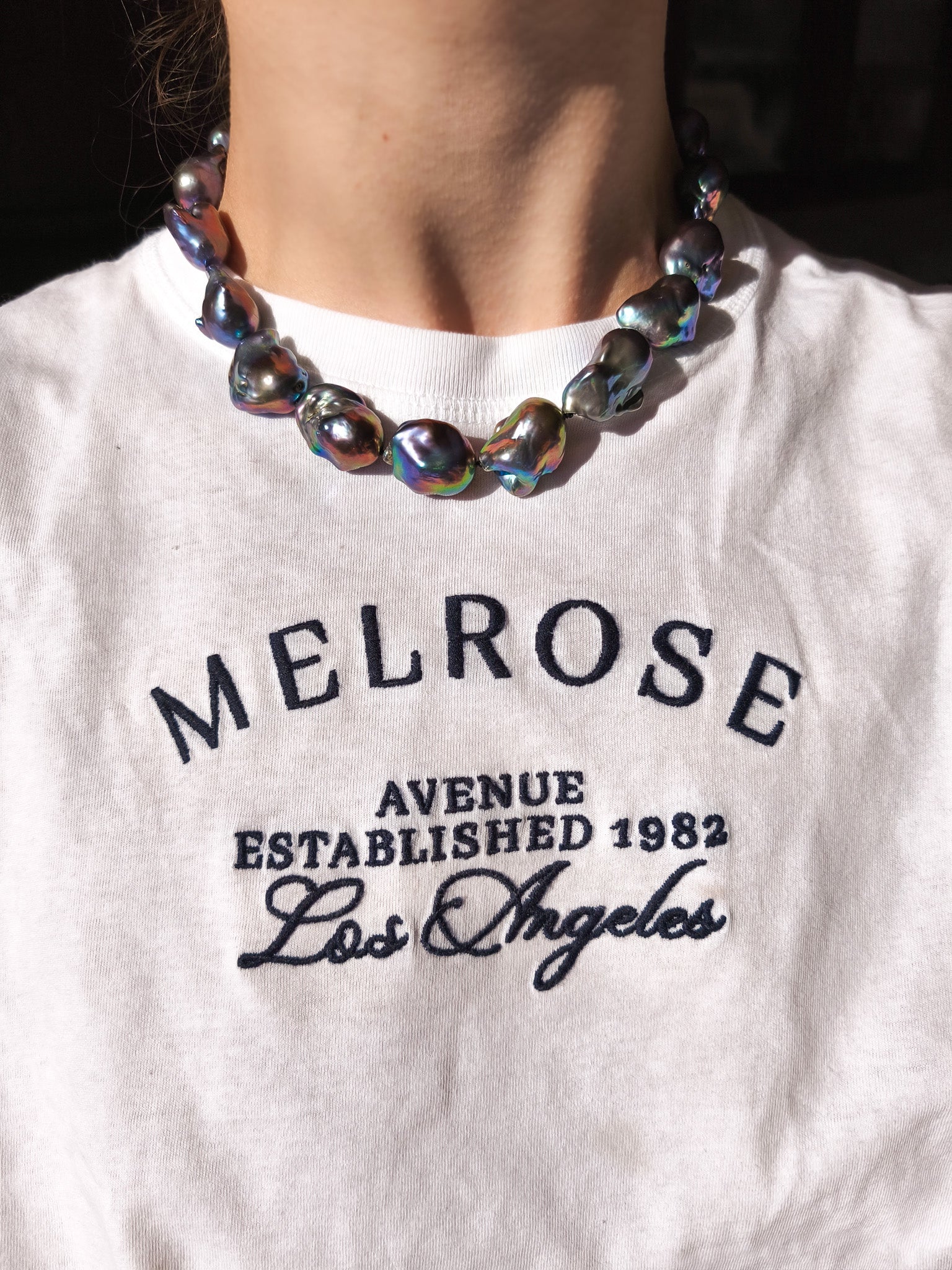 It looks great even with a T-shirt, you don't have to wear these pearls only with elegant clothes, they look good with everything