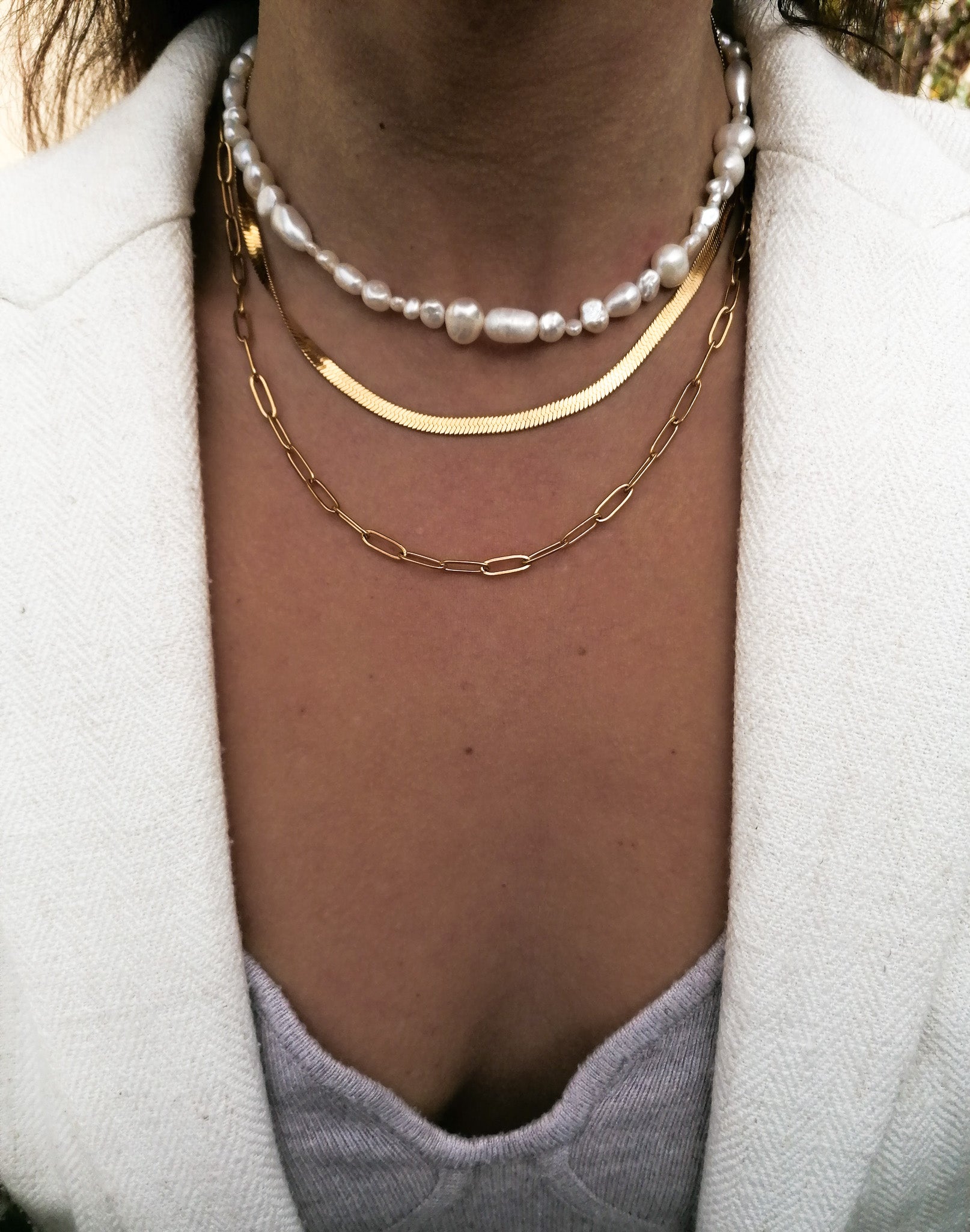 Pearls, minerals and gemstones should not come into contact with water, cosmetics or sweat - over time they will wear out more. I recommend removing all jewellery when doing sports, sleeping or other strenuous activities to extend their lifespan. The exception is all-metal jewellery made of steel without stones or pearls.