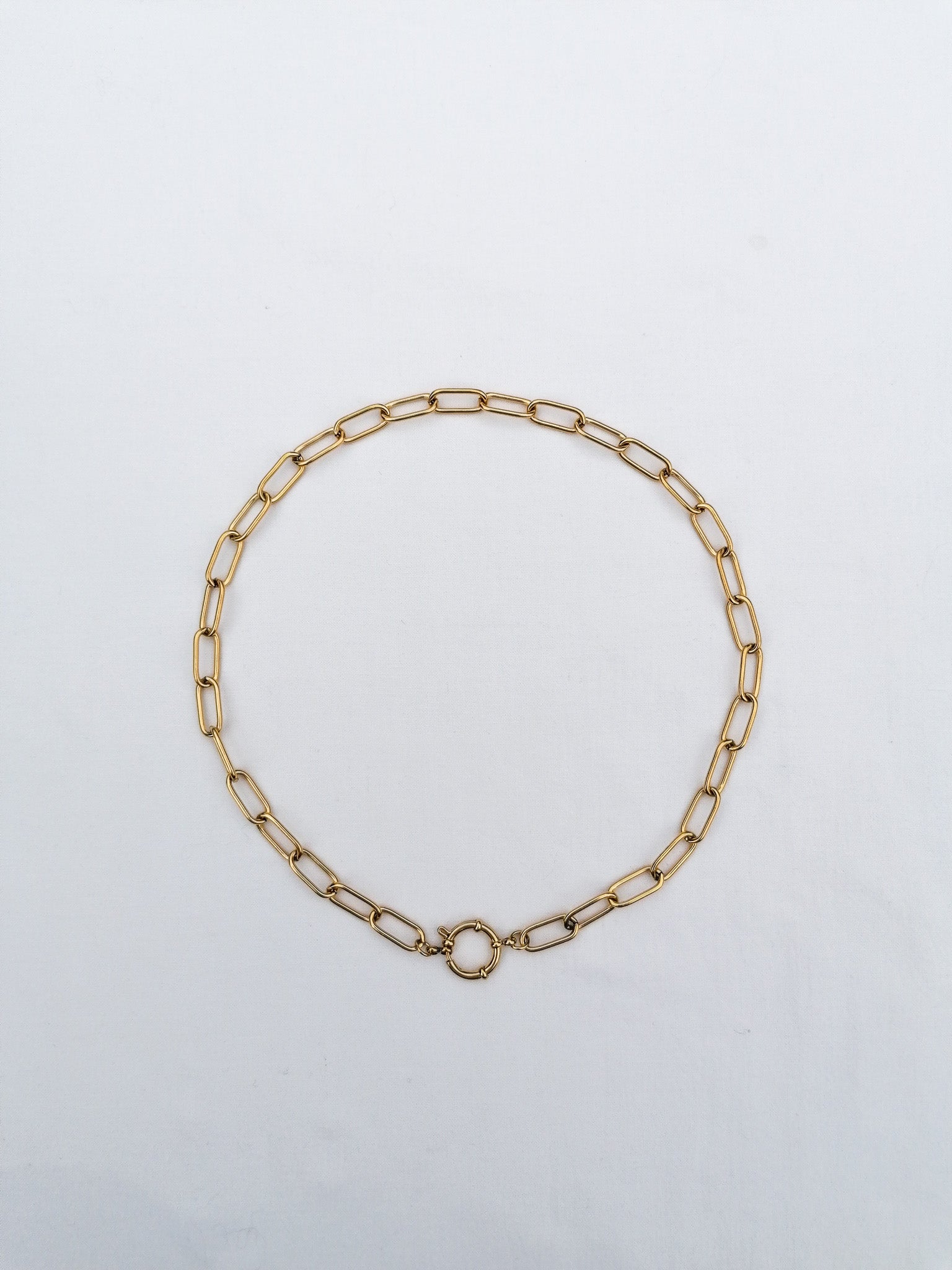 The base metal of our jewelry is stainless steel, which is why the resulting color is a little darker, not completely bright, as with gold-plated brass (a gold filled) or silver.