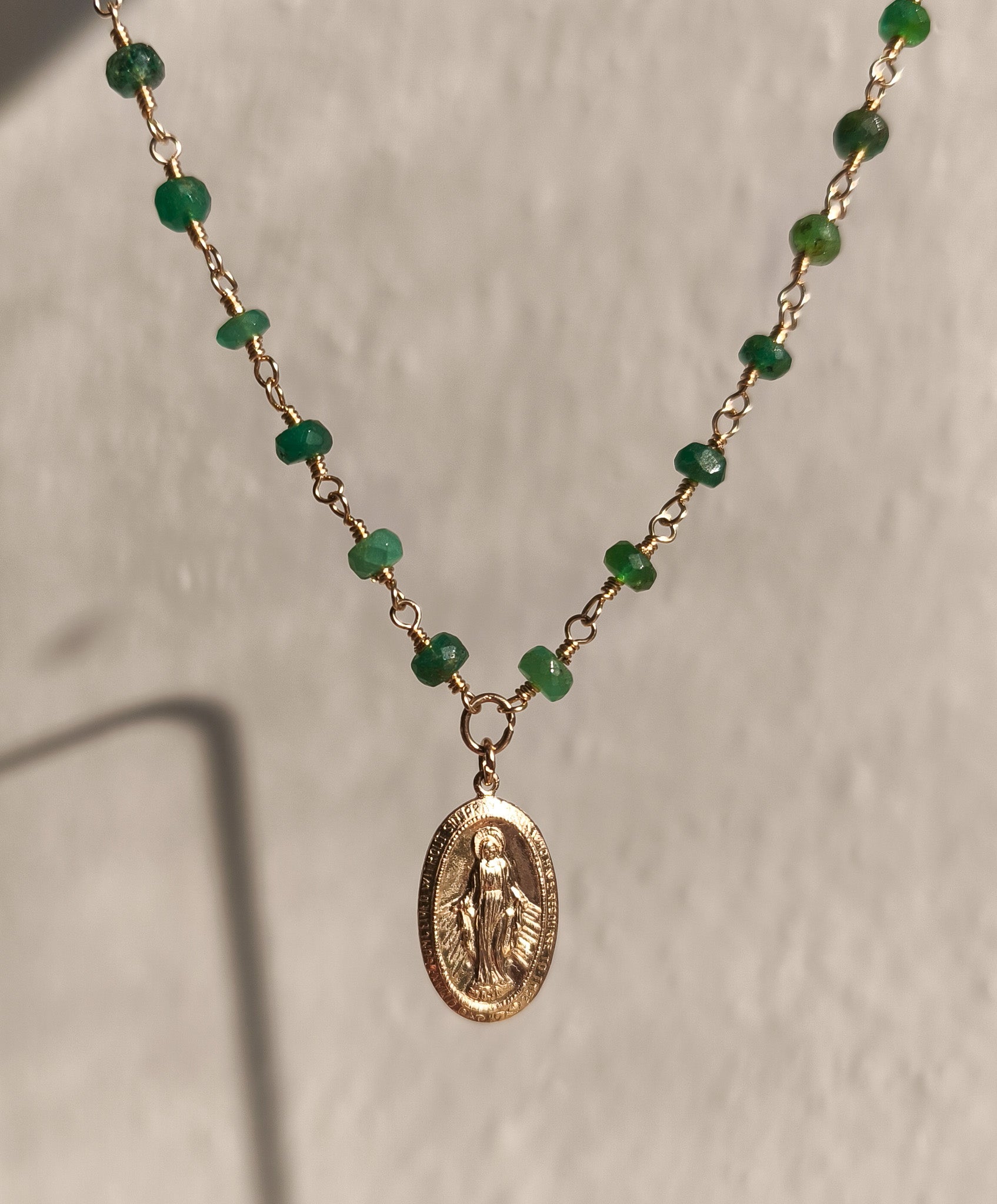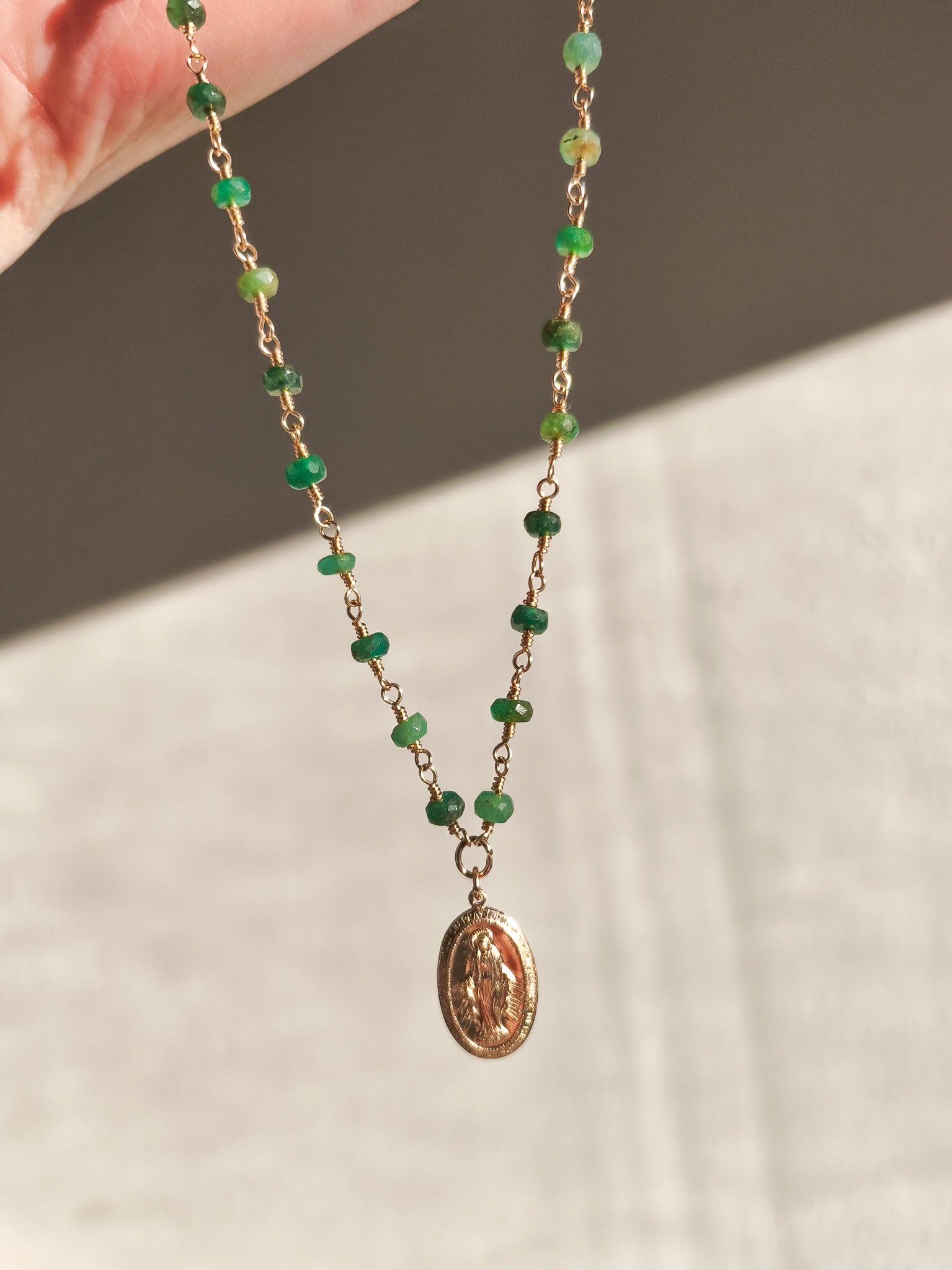 Rosary-style necklace made of emerald and 14-karat gold gold-filled* ,