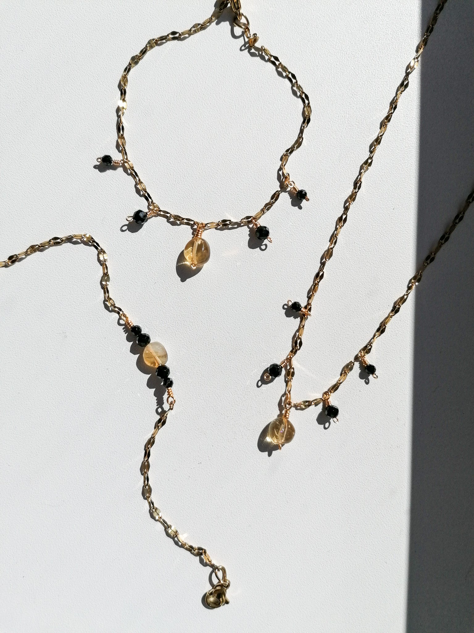 A sparkling chain decorated with five pendants - made of black cut spinel and citrine