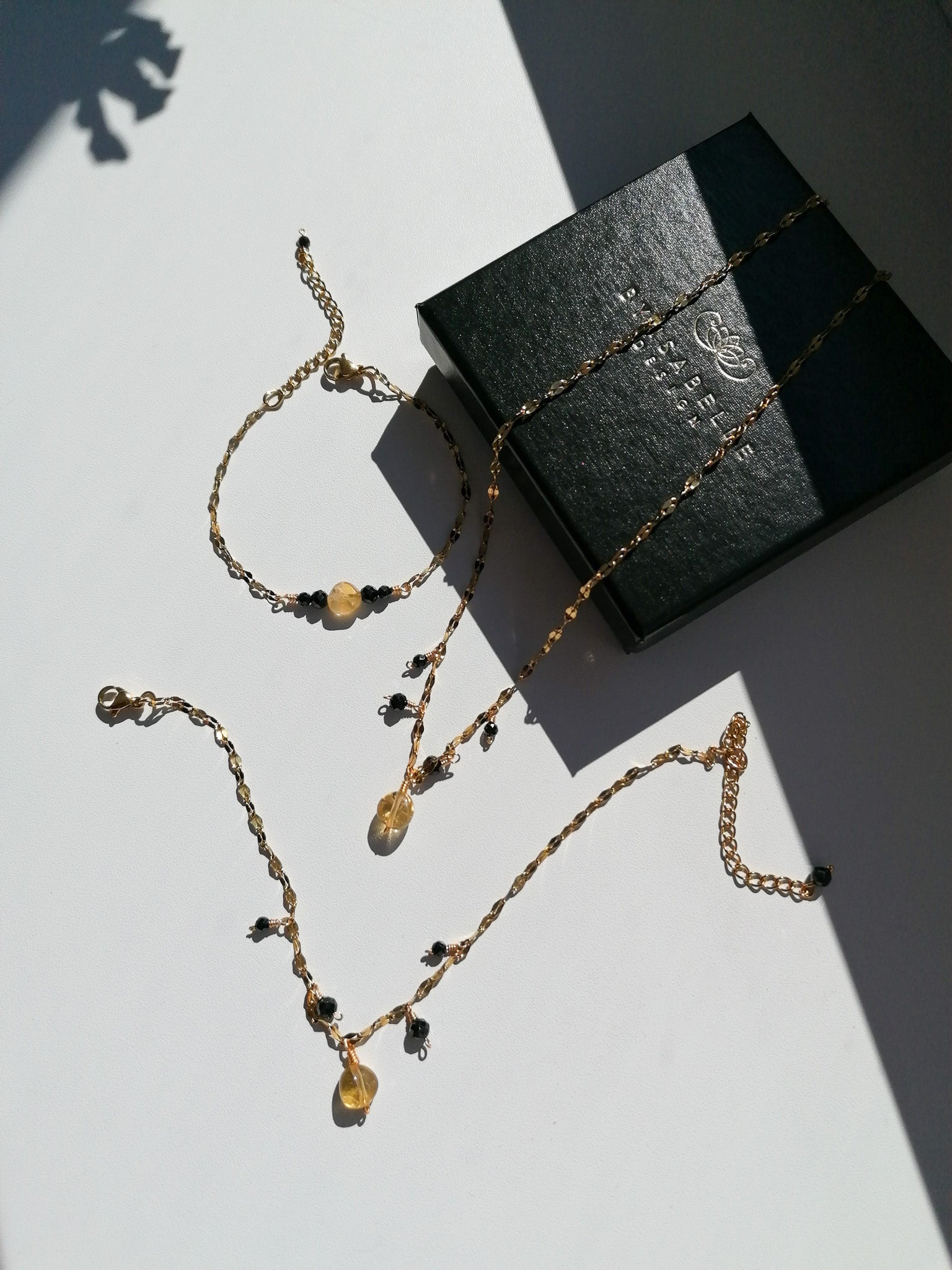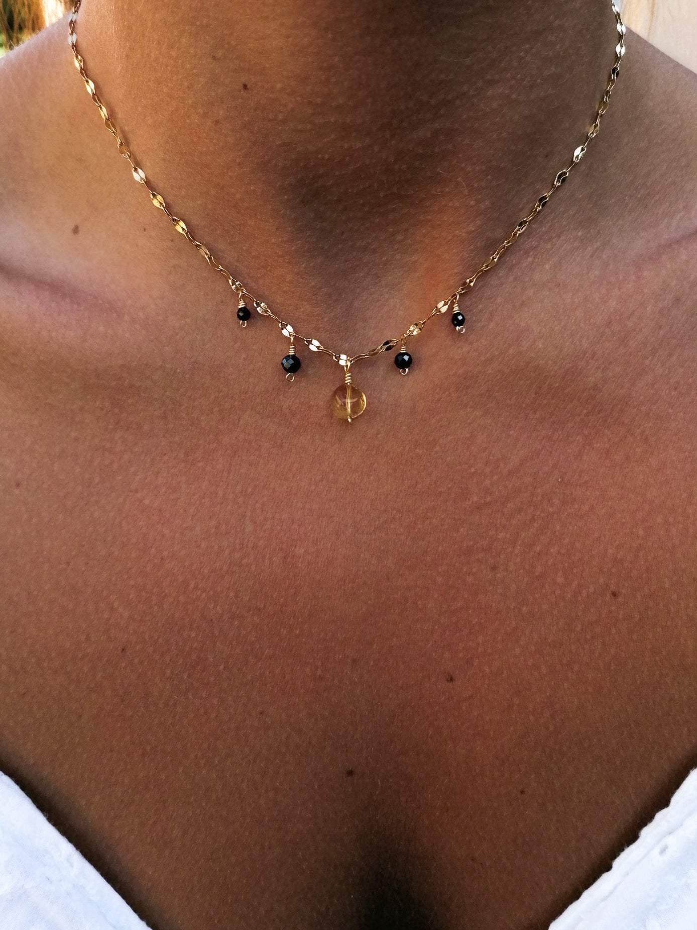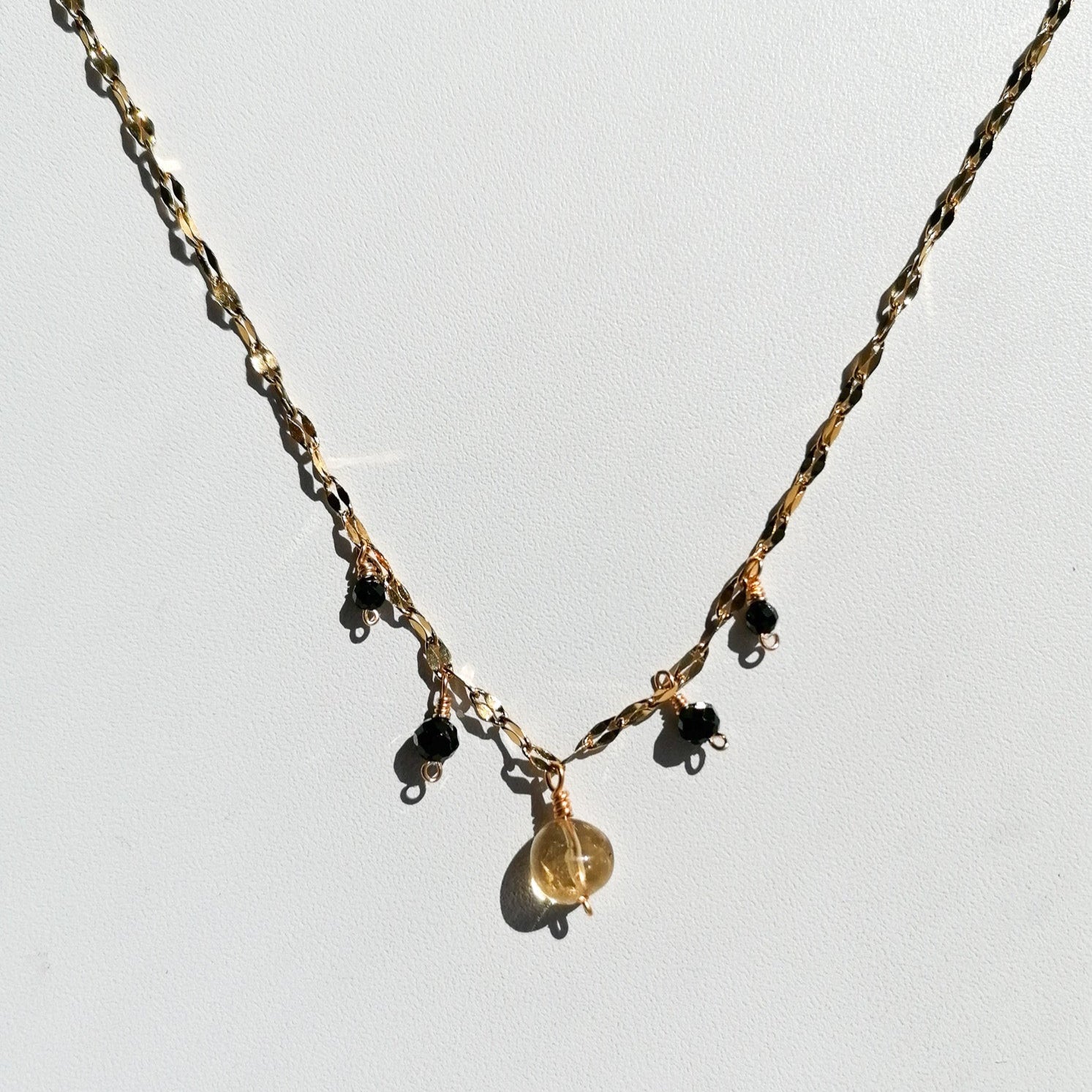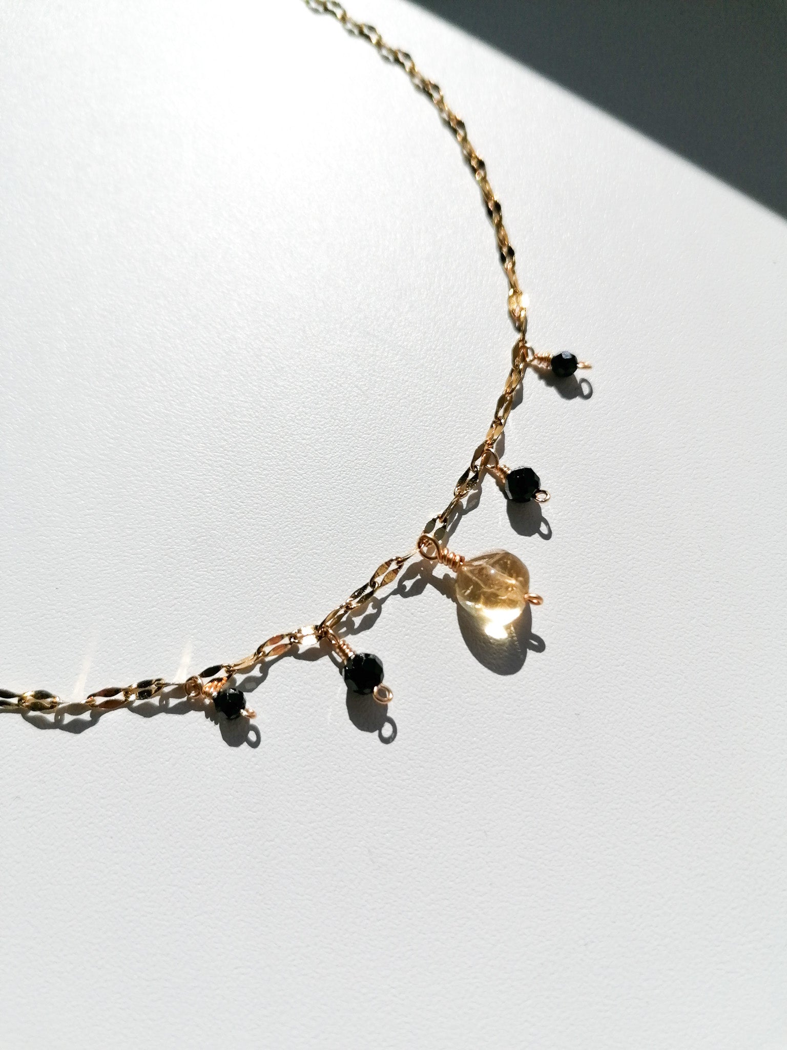 A sparkling chain decorated with five pendants - made of black cut spinel and citrine