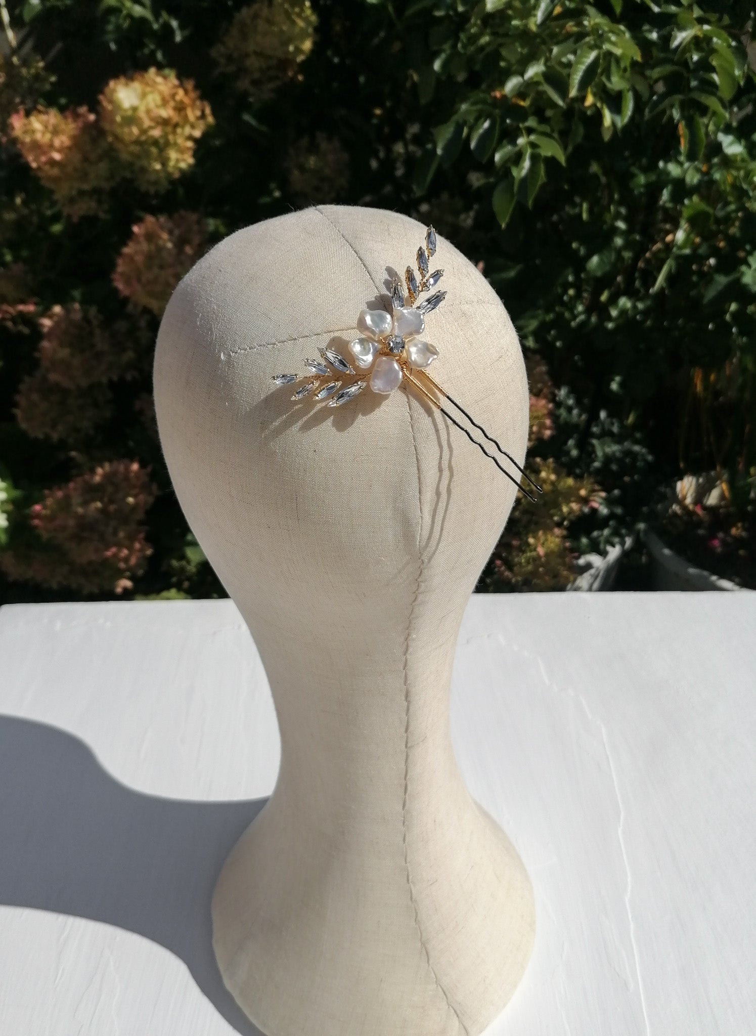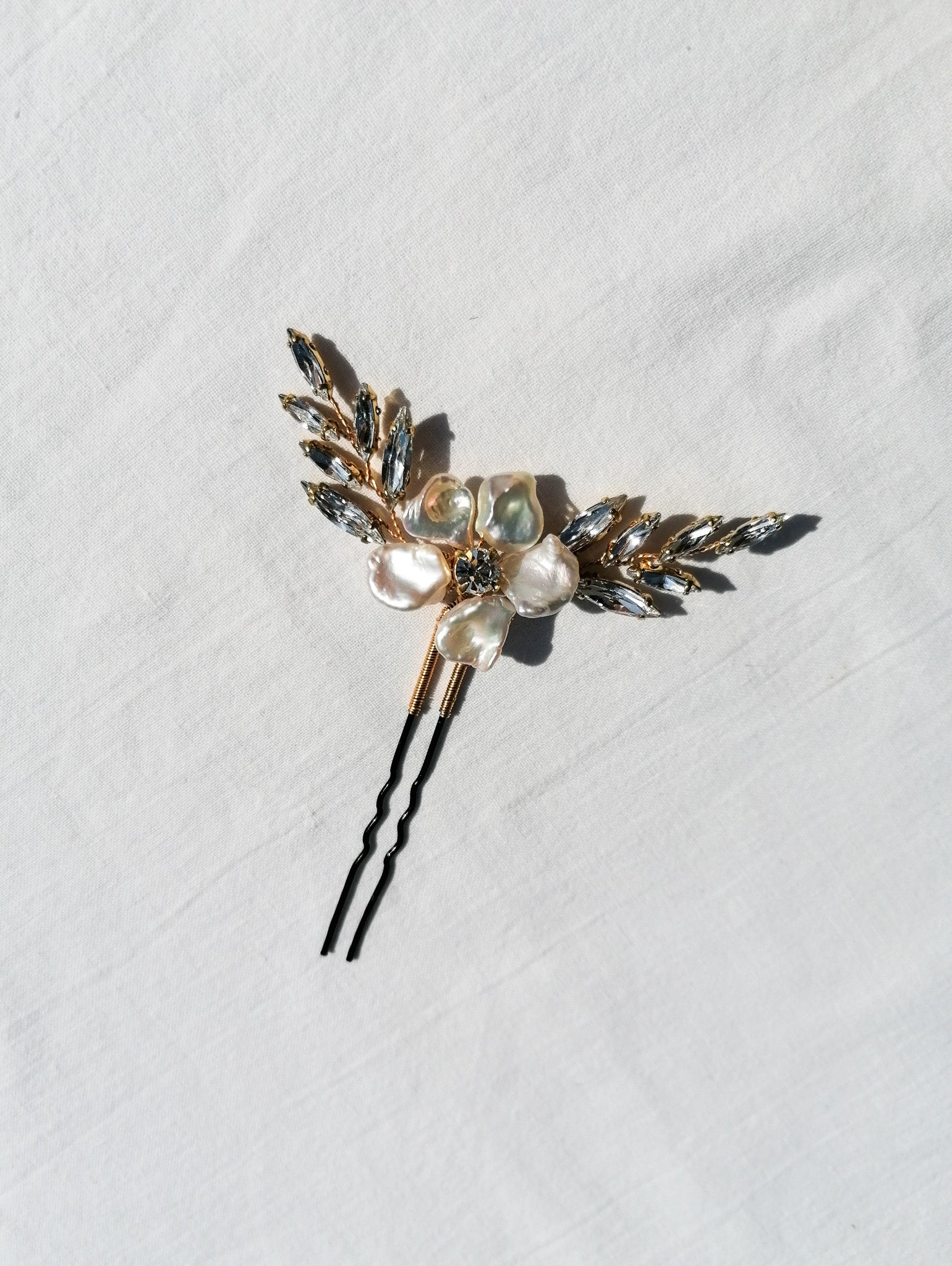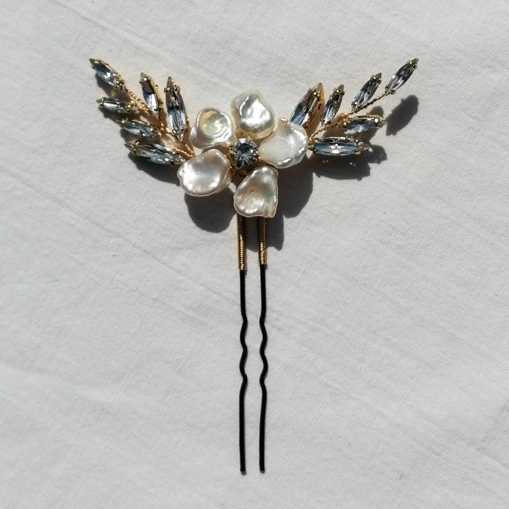 Hairpin made of keshi pearls and Austrian crystals