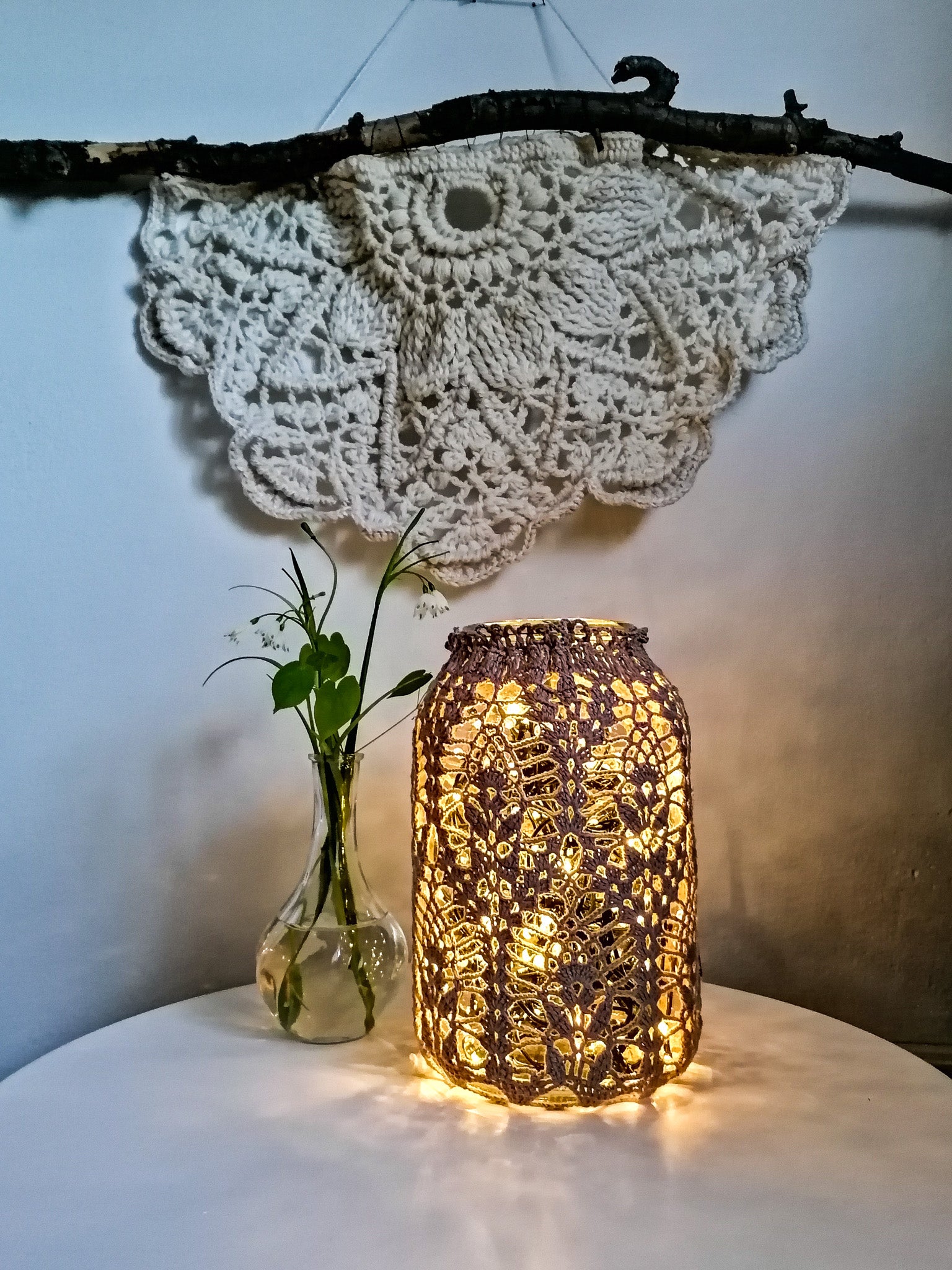 Suitable for a large bouquet, grasses or as a lantern - put an LED chain or candle inside and the lace will conjure up an amazing shadow effect!