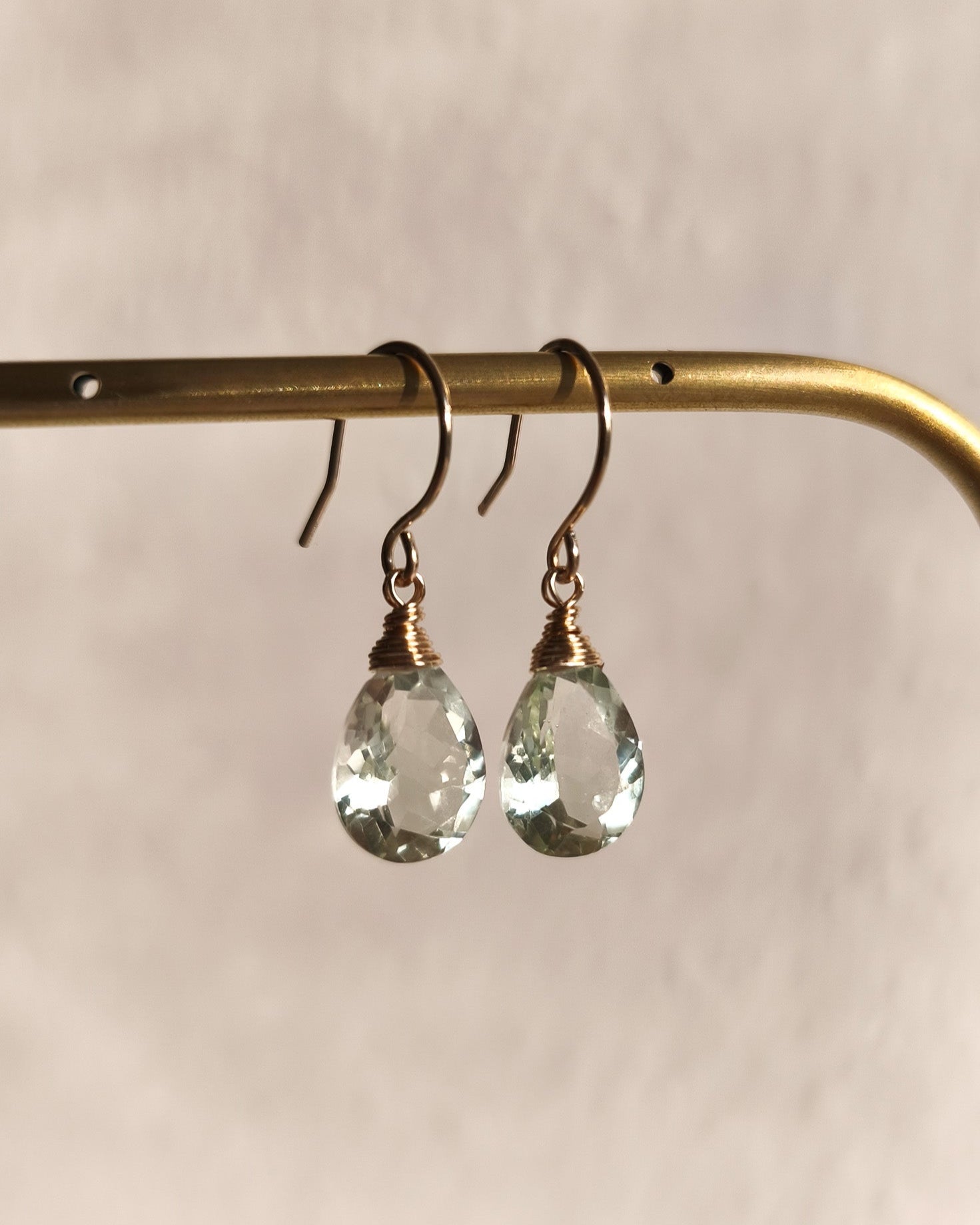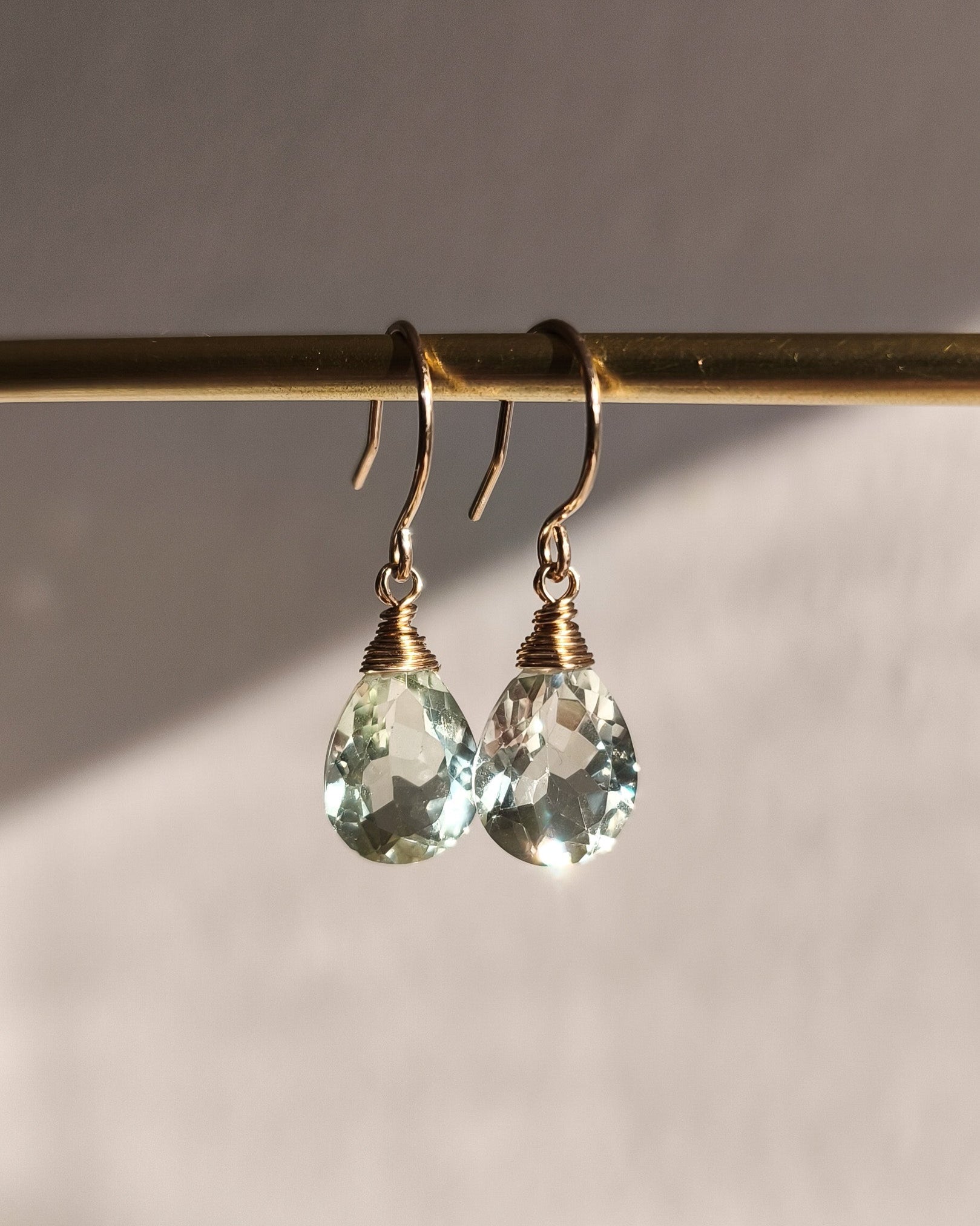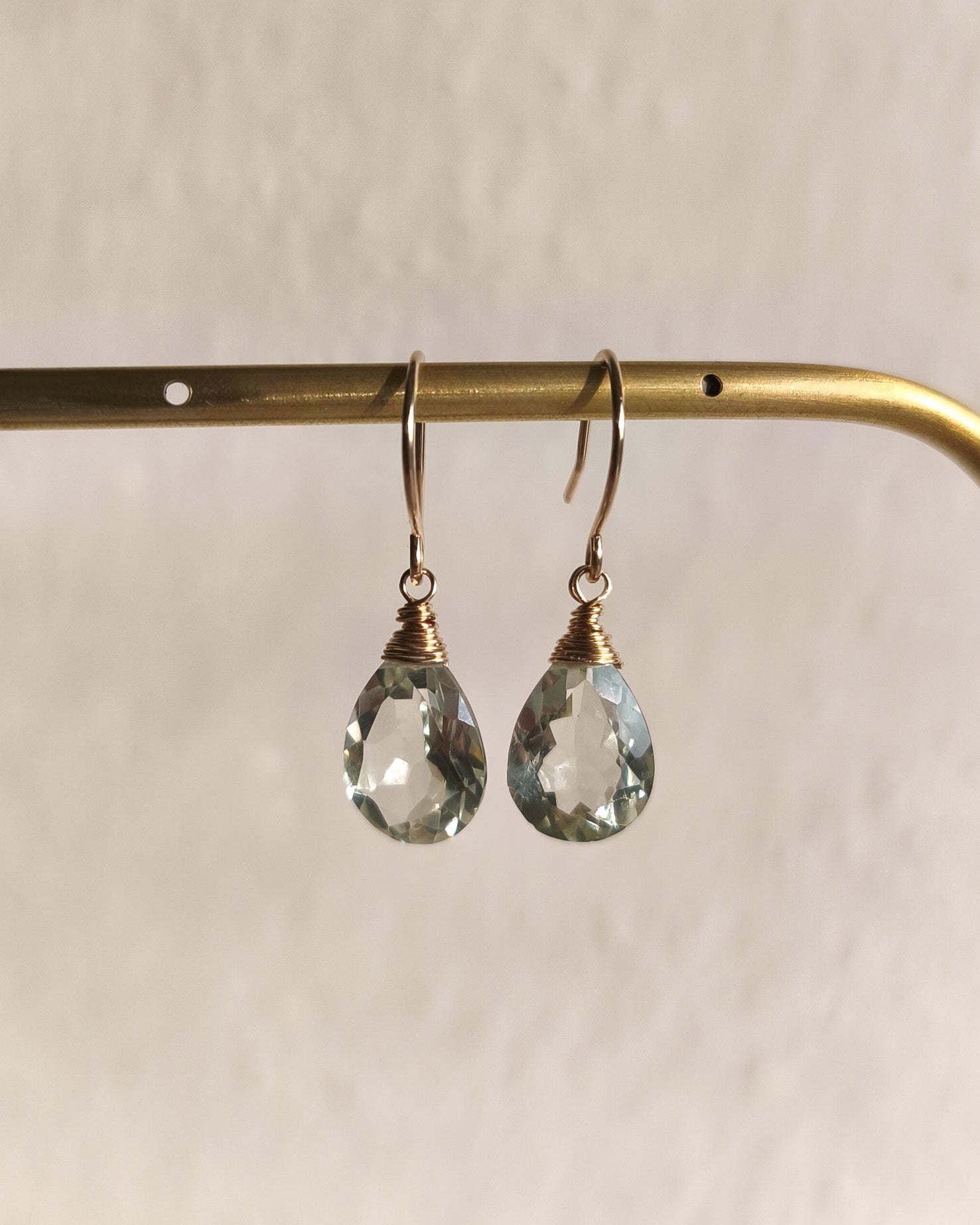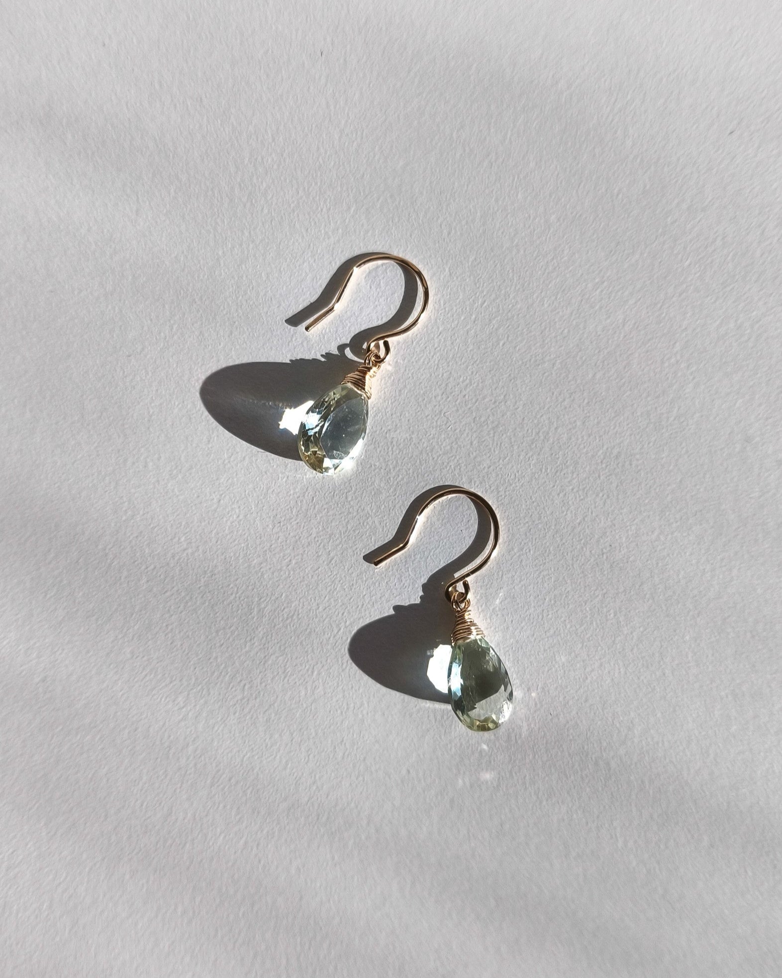 Earrings with cut green amethyst in the shape of drops