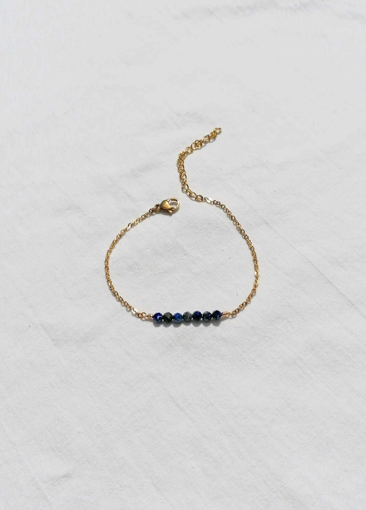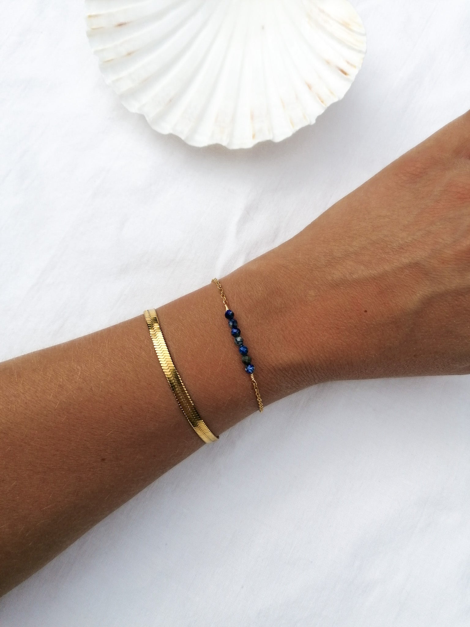 The bracelet is made of PVD gold-plated steel and jewelry wire - it is therefore suitable for everyday wear and stress, the metal remains golden even after contact with water/sweat