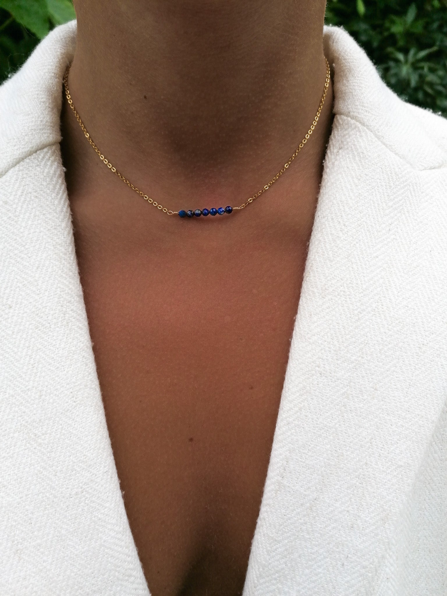 The necklace is made of PVD gold-plated steel and jewelry wire - it is therefore suitable for everyday wear and stress, the metal remains golden even after contact with water/sweat
