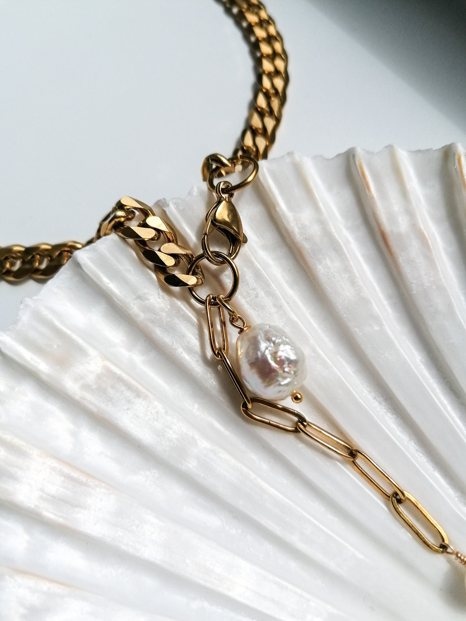Pearls, minerals and gemstones should not come into contact with water, cosmetics or sweat - over time they will wear out more. I recommend removing all jewellery when doing sports, sleeping or other strenuous activities to extend their lifespan. The exception is all-metal jewellery made of steel without stones or pearls.