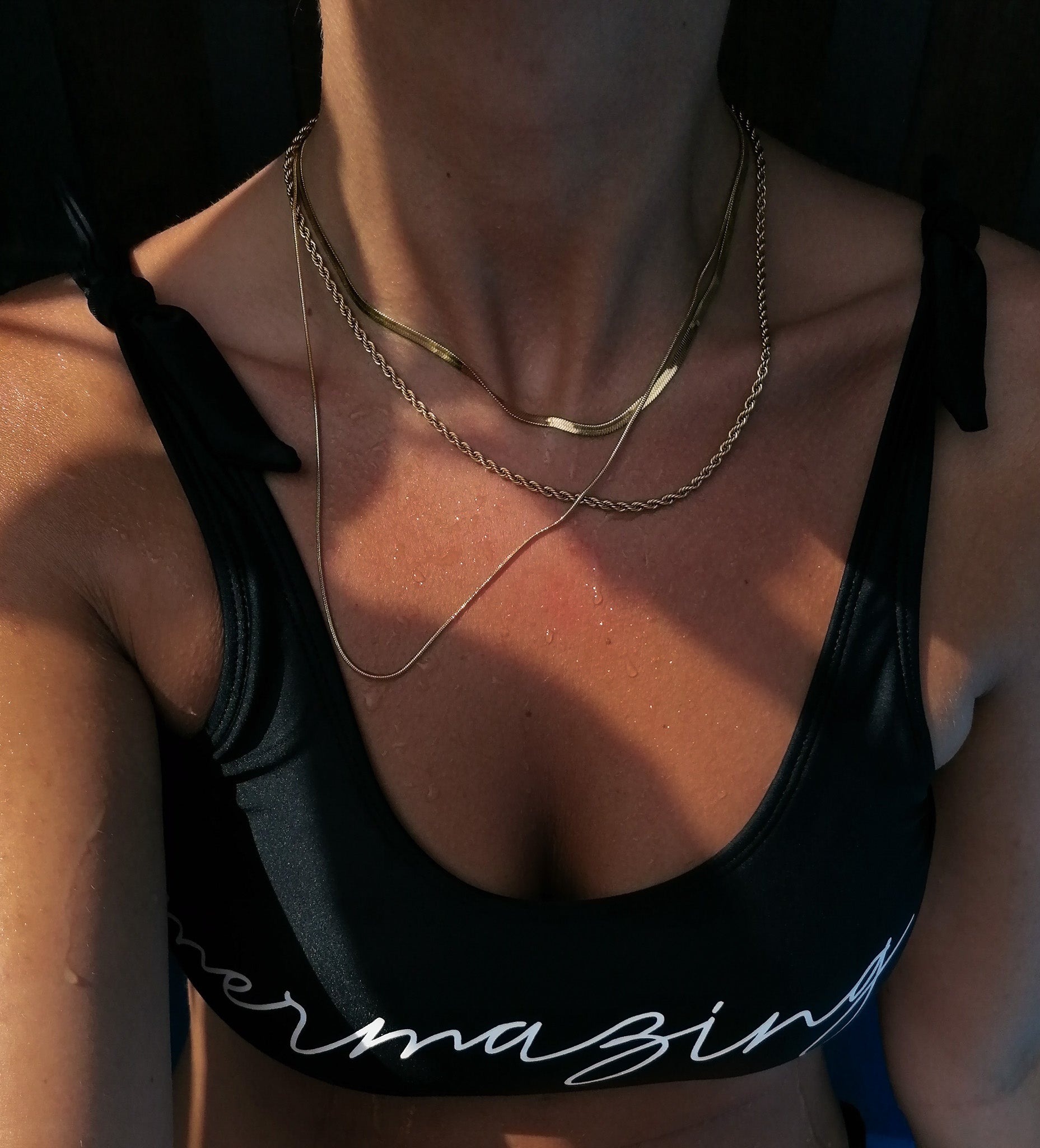 Made of PVD gold-plated steel, suitable for everyday wear and stress - you don't have to worry about the gold color even after contact with water