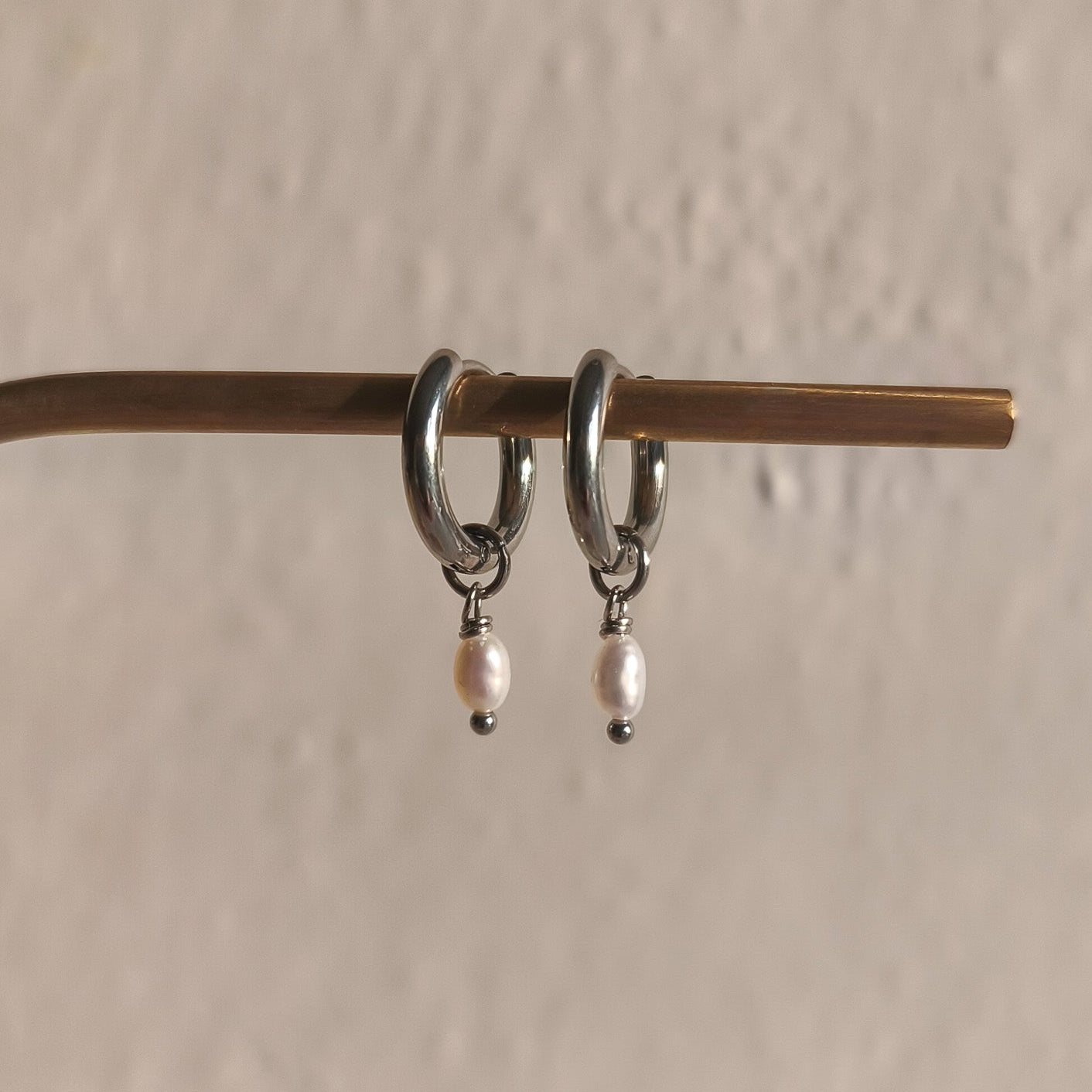 Kruhové náušnice s odnimatelnými přívěsky z drobných barokních perel