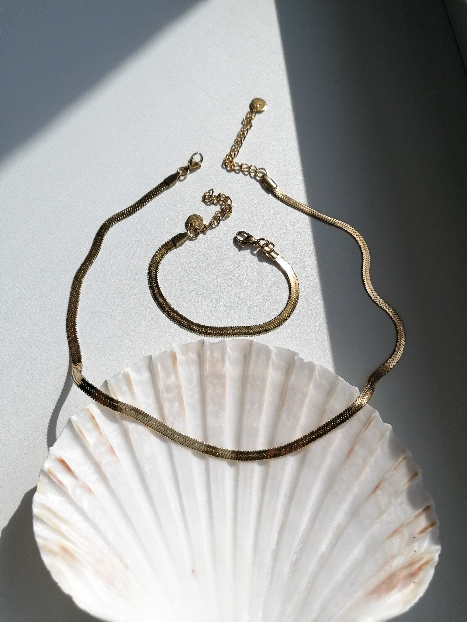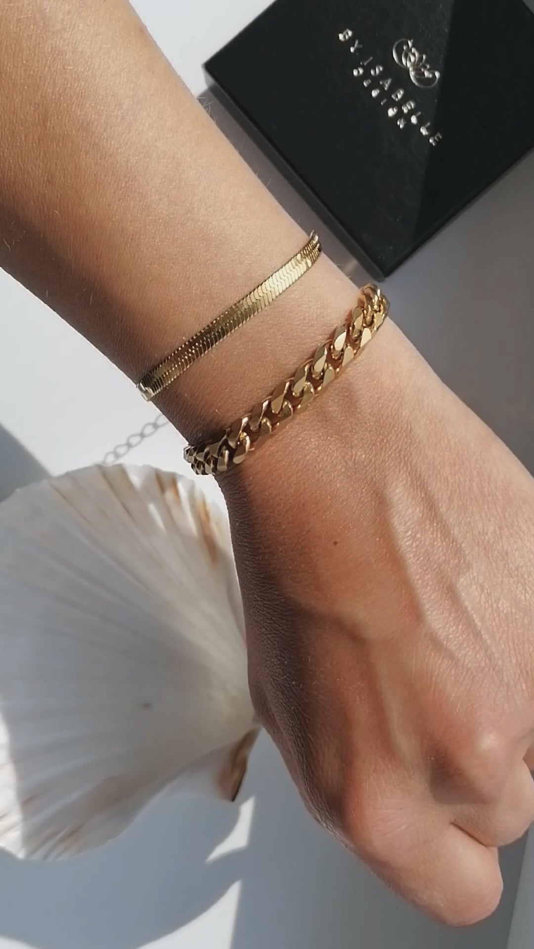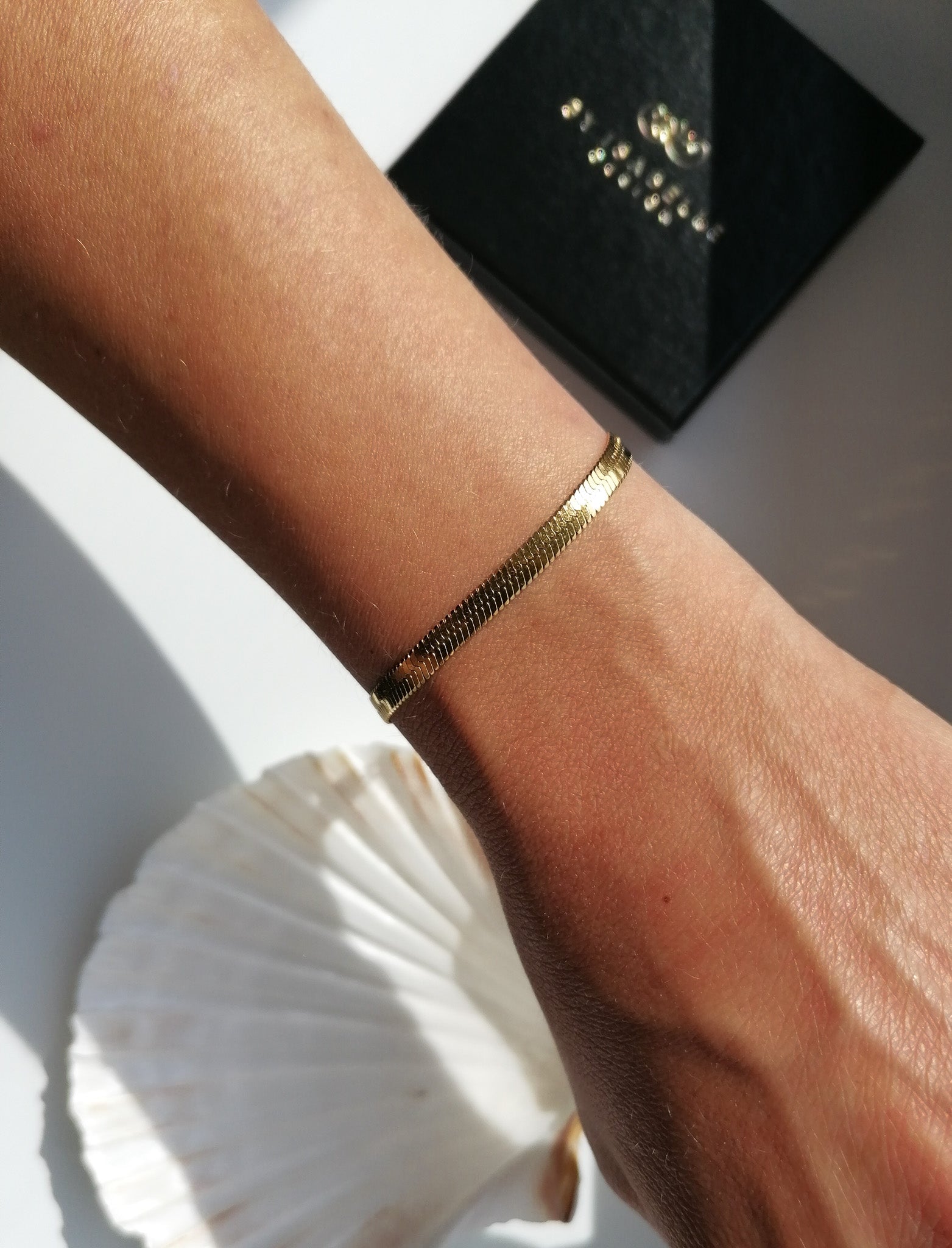 The bracelet is made of stainless steel, gold-plated using the PVD method, so it is suitable for everyday wear and tear - you don't have to worry about the gold color even after contact with water.