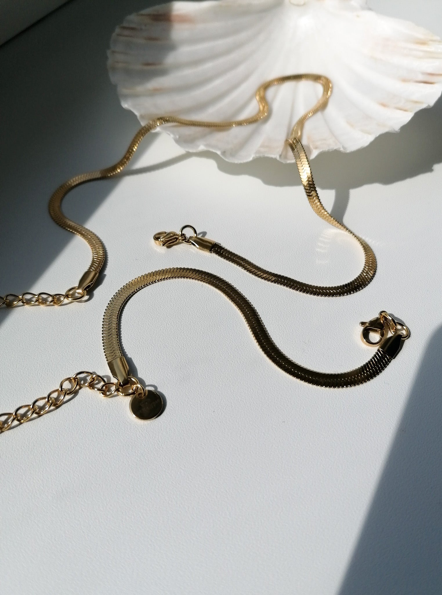 The jewelry is made of stainless steel, gold-plated using the PVD method, so it is suitable for everyday wear and tear - you don't have to worry about the gold color even after contact with water.