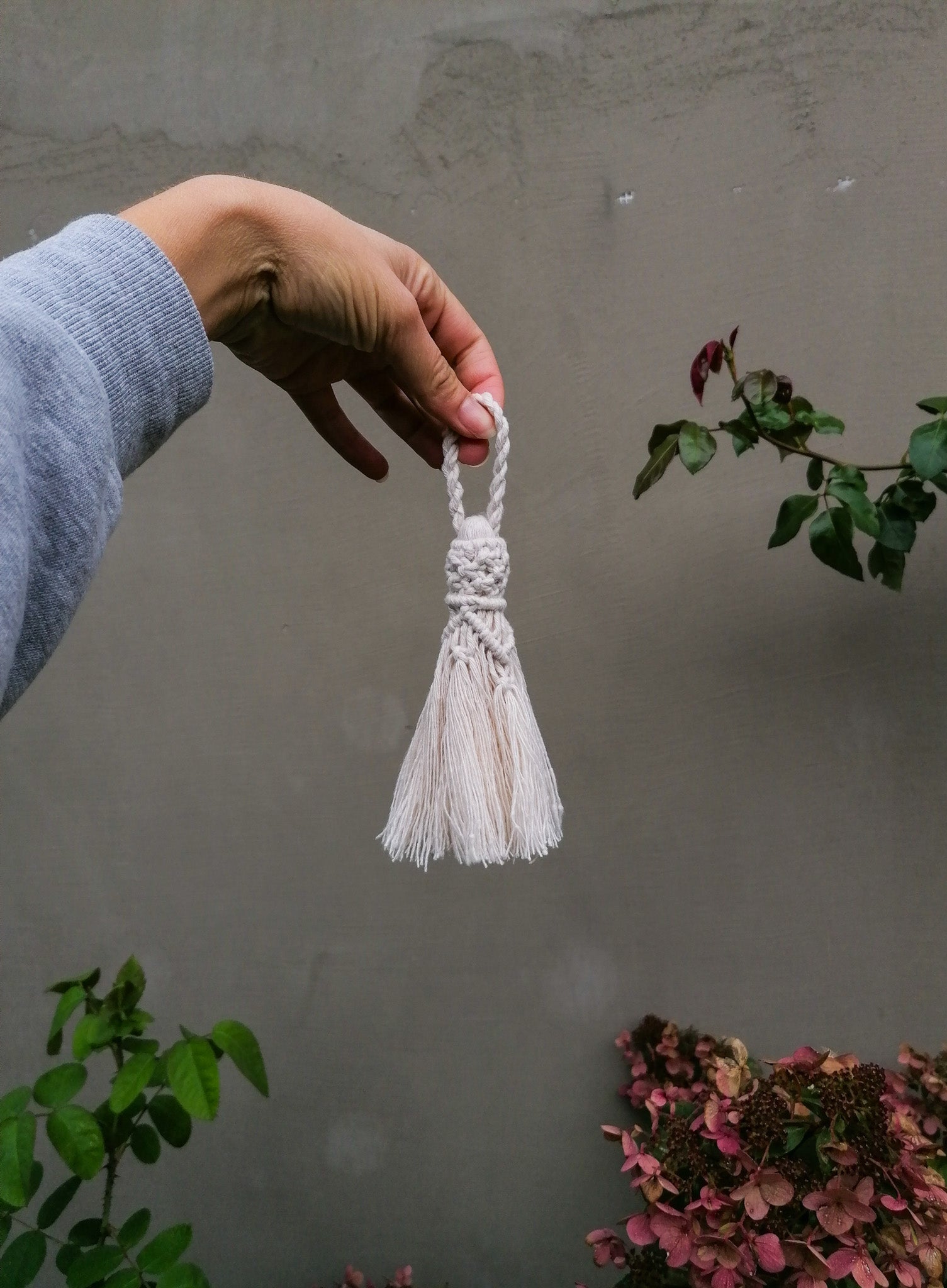 Made using the macramé technique from 100% cotton cord - undyed natural white color (slightly ivory)