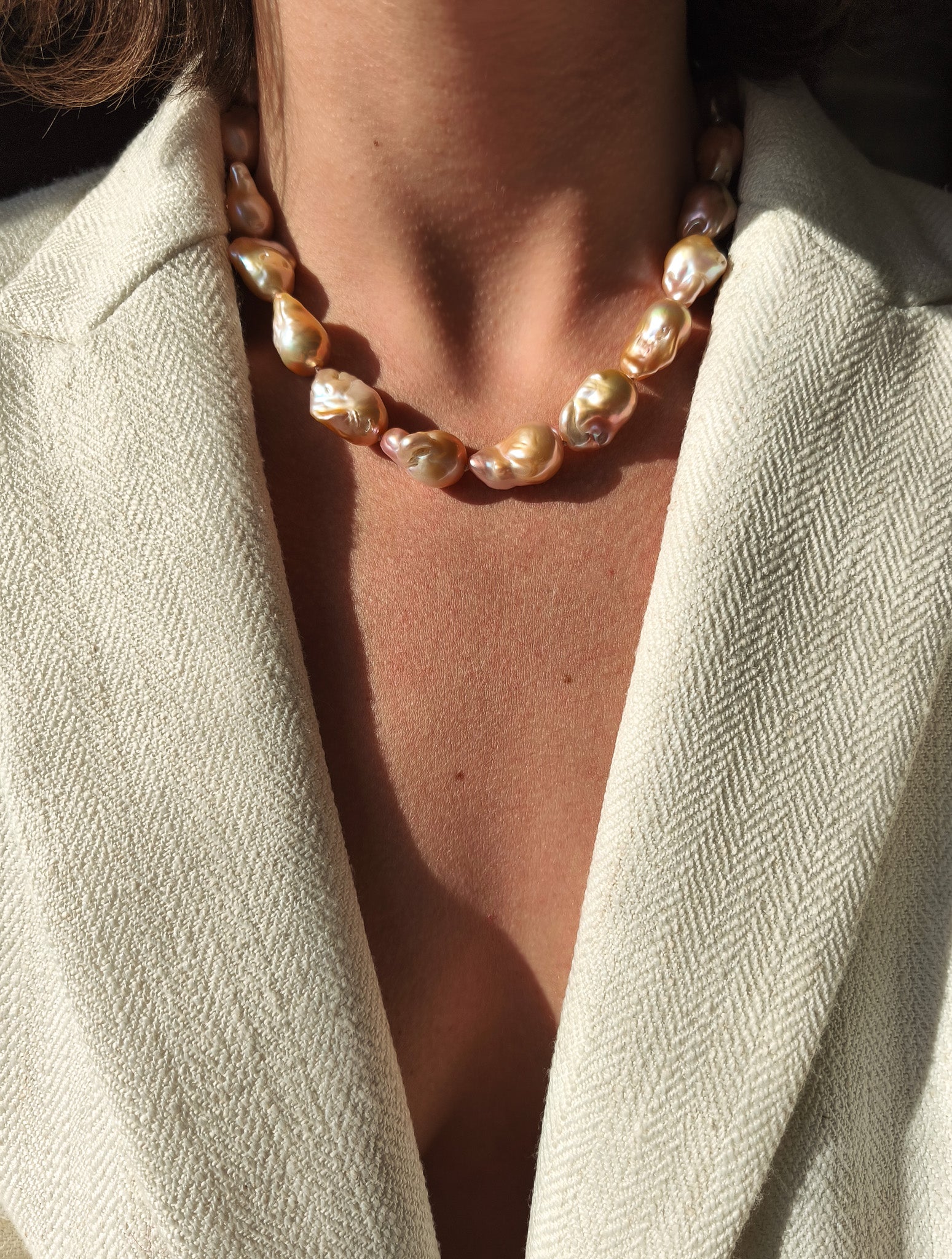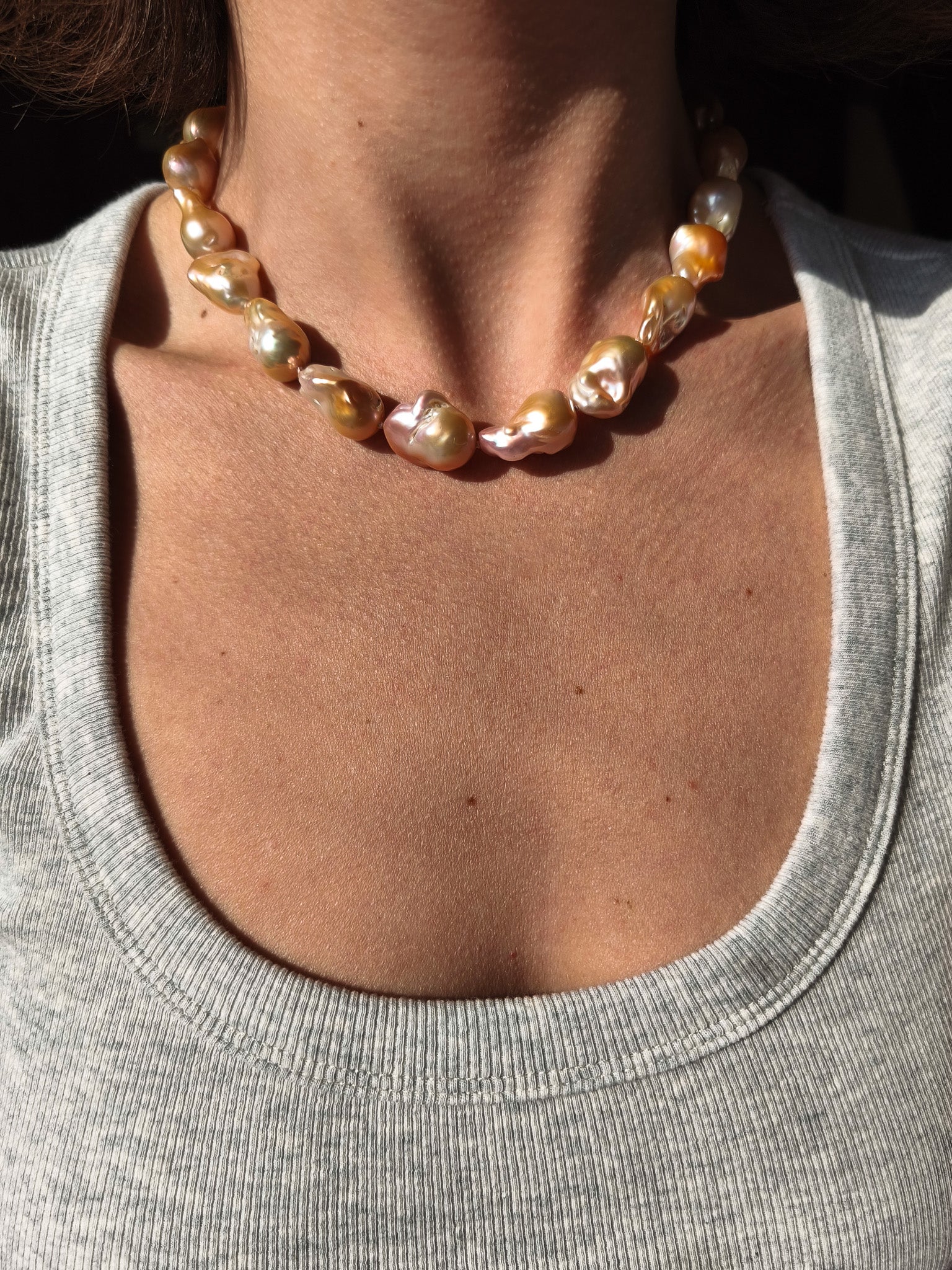 Orange baroque pearl necklace