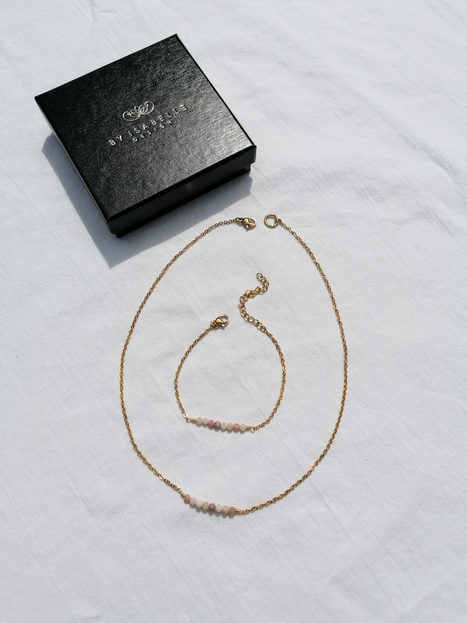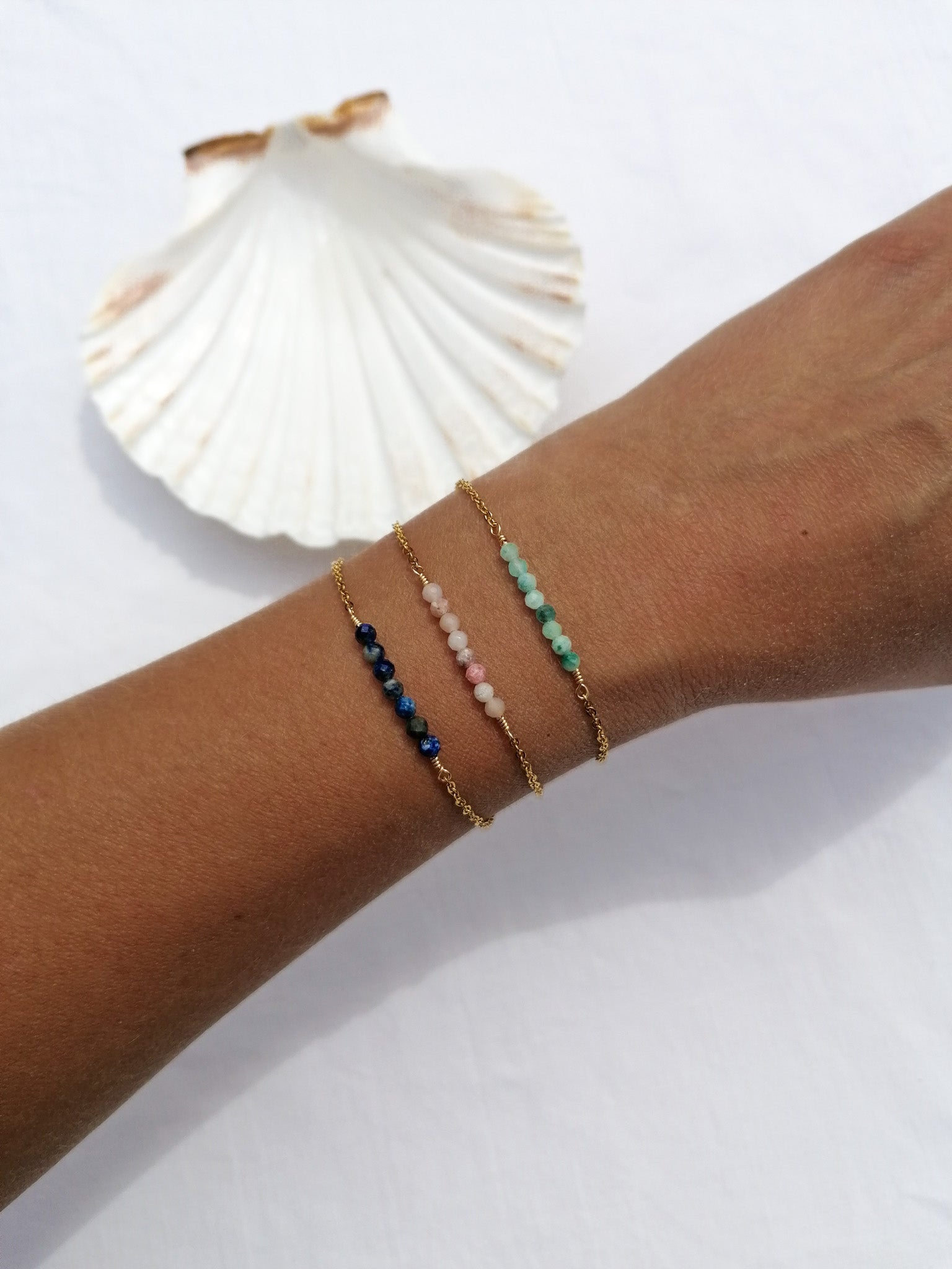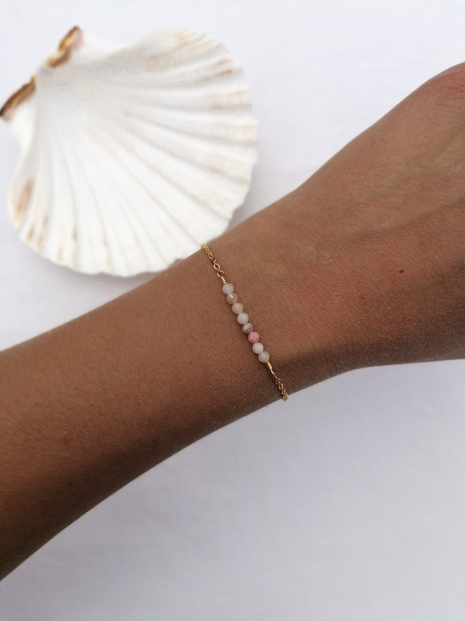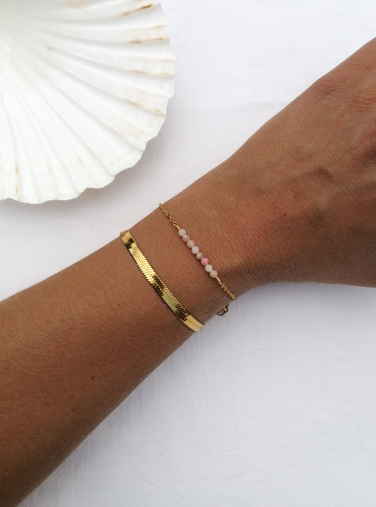The bracelet is made of PVD gold-plated steel and jewelry wire - it is therefore suitable for everyday wear and strain, the metal remains golden even after contact with water/sweat