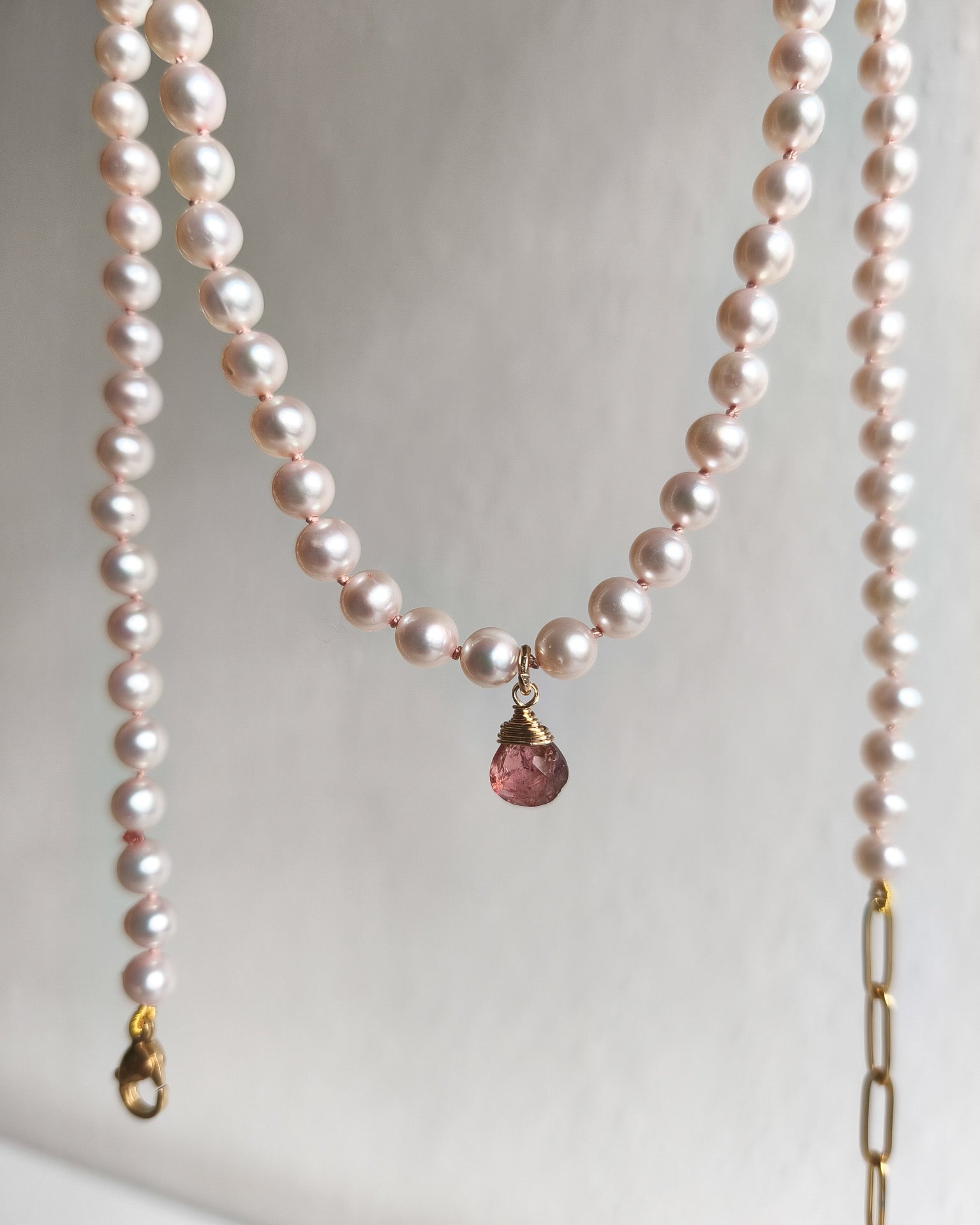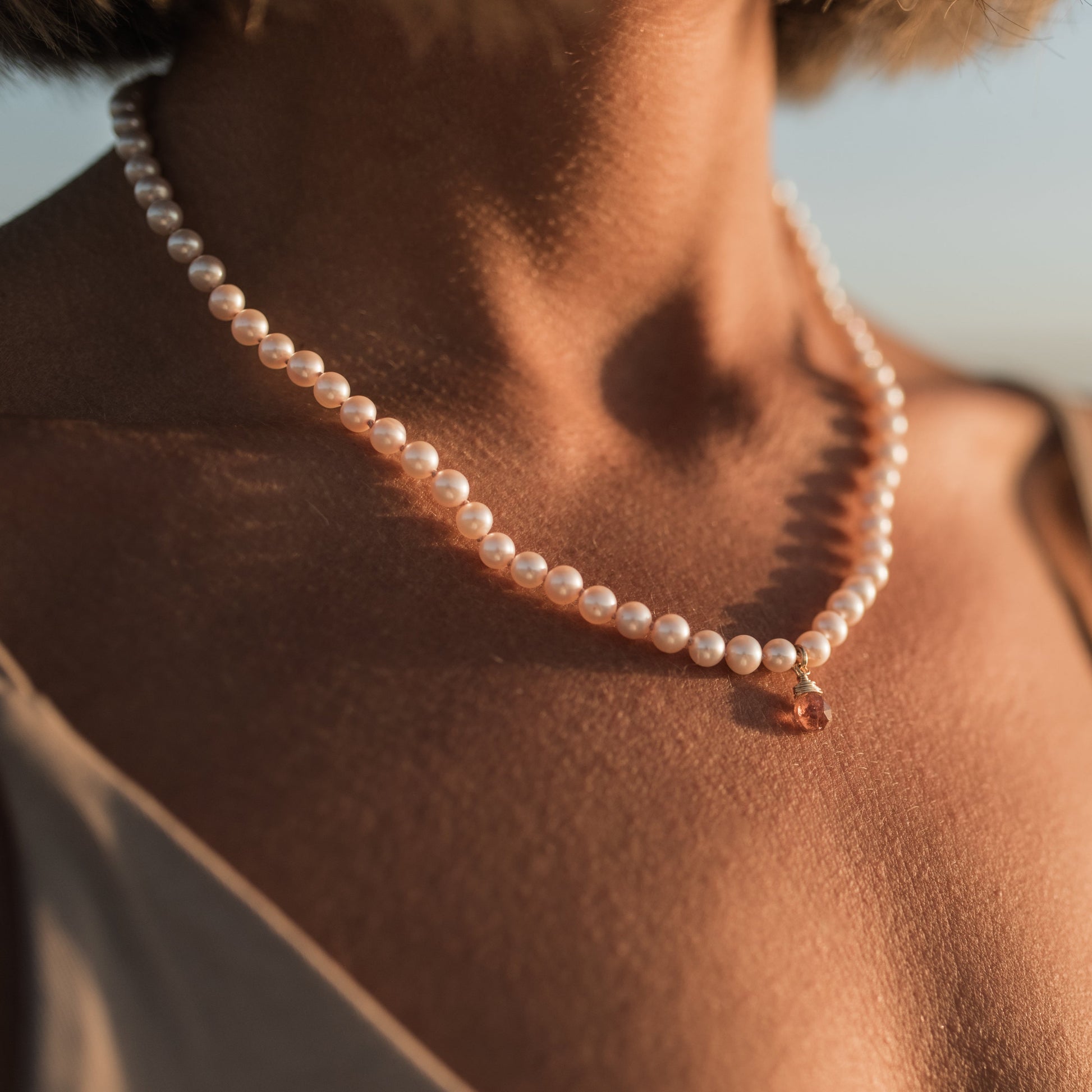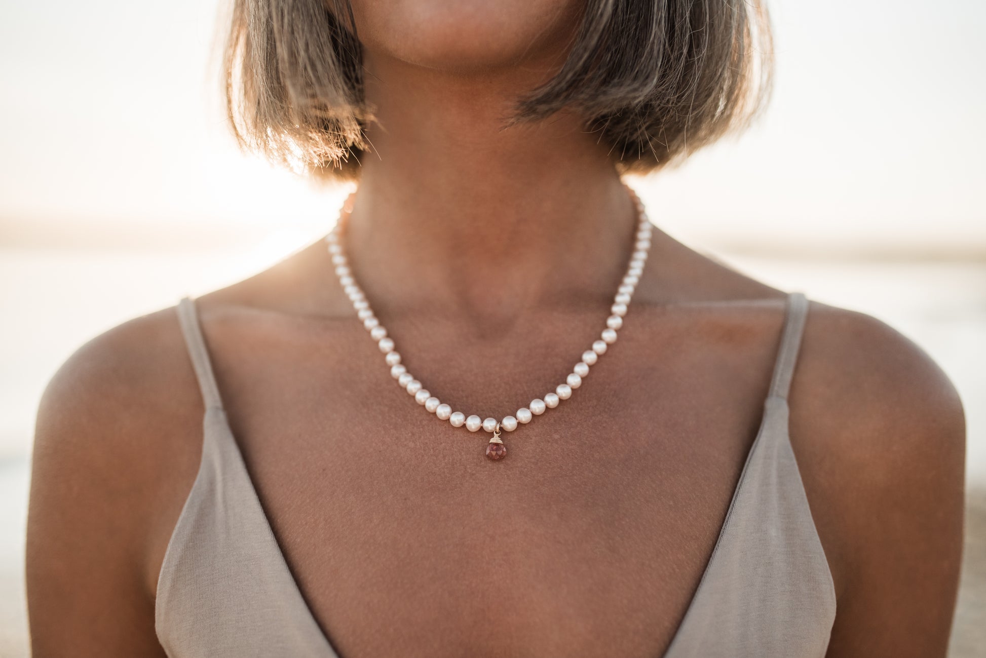Pearls, minerals and gemstones should not come into contact with water, cosmetics or sweat - over time they will wear out more. I recommend removing all jewellery when doing sports, sleeping or other strenuous activities to extend their lifespan. The exception is all-metal jewellery made of steel without stones or pearls.