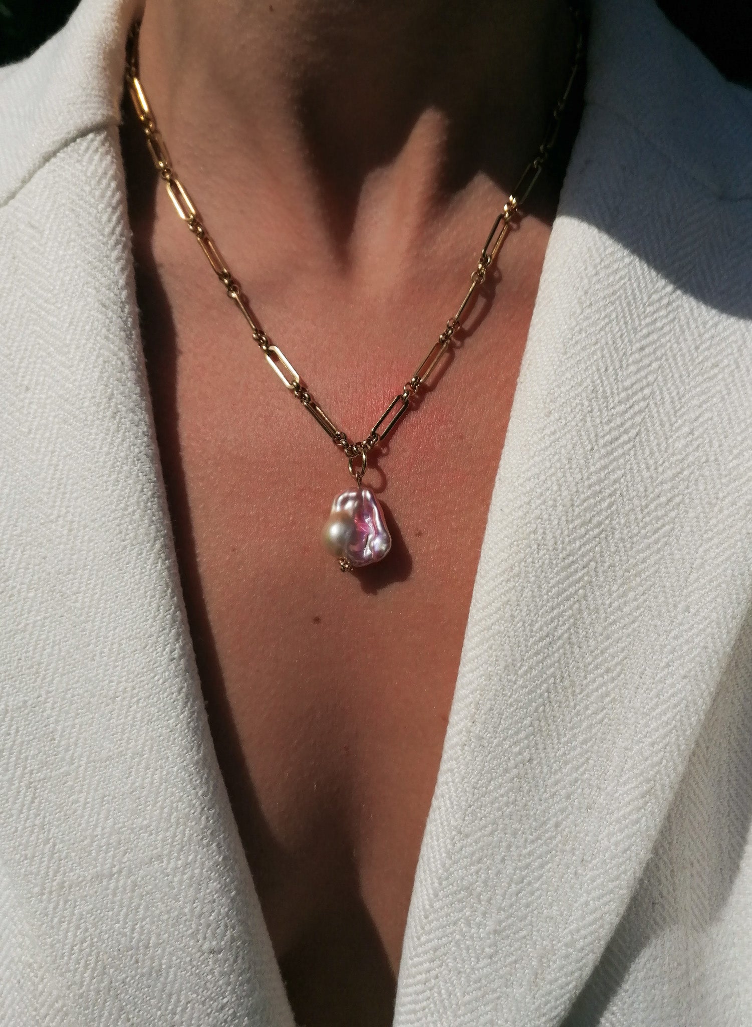 Purple, pink, orange - all these shades can be found on this large freshwater baroque pearl