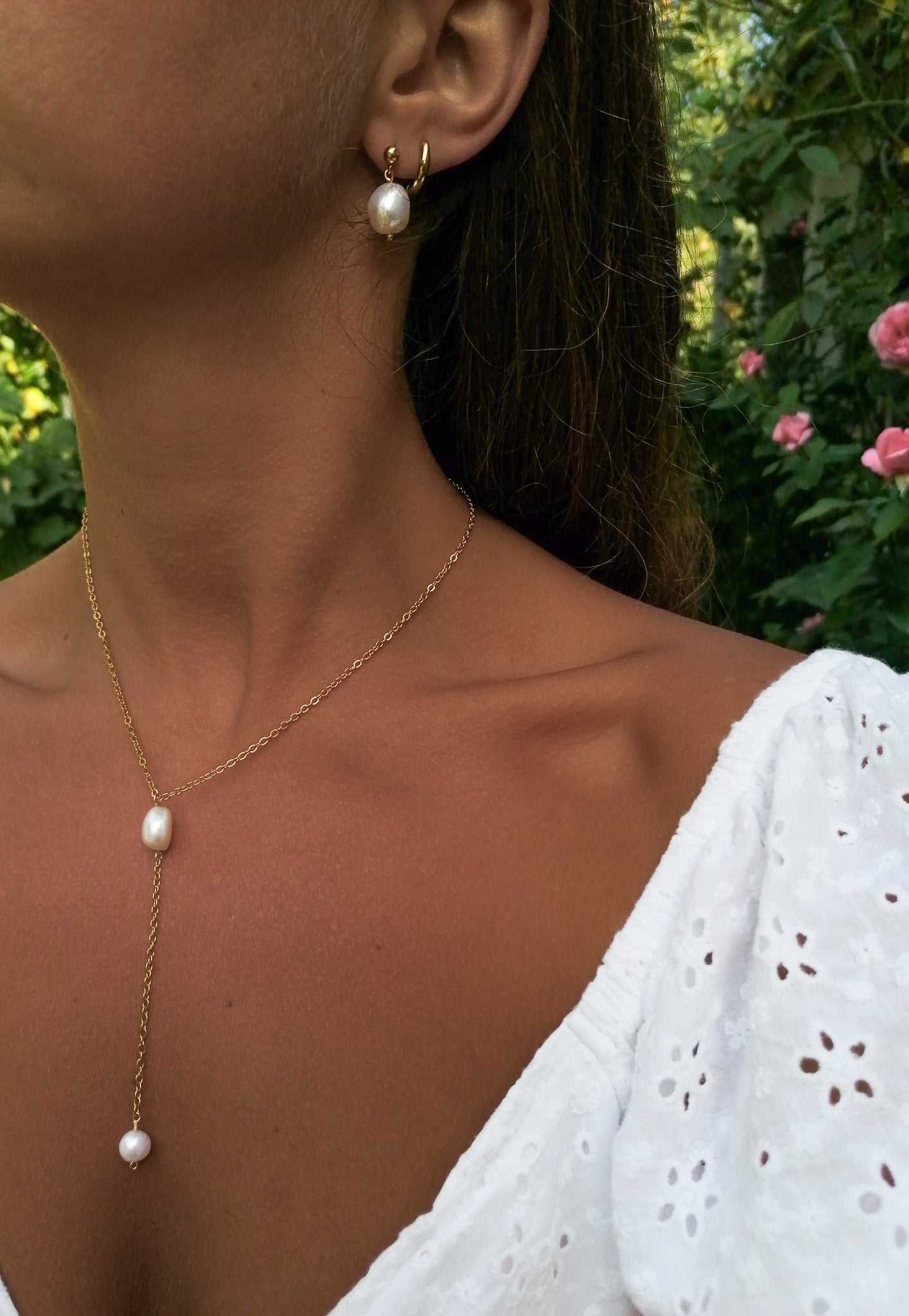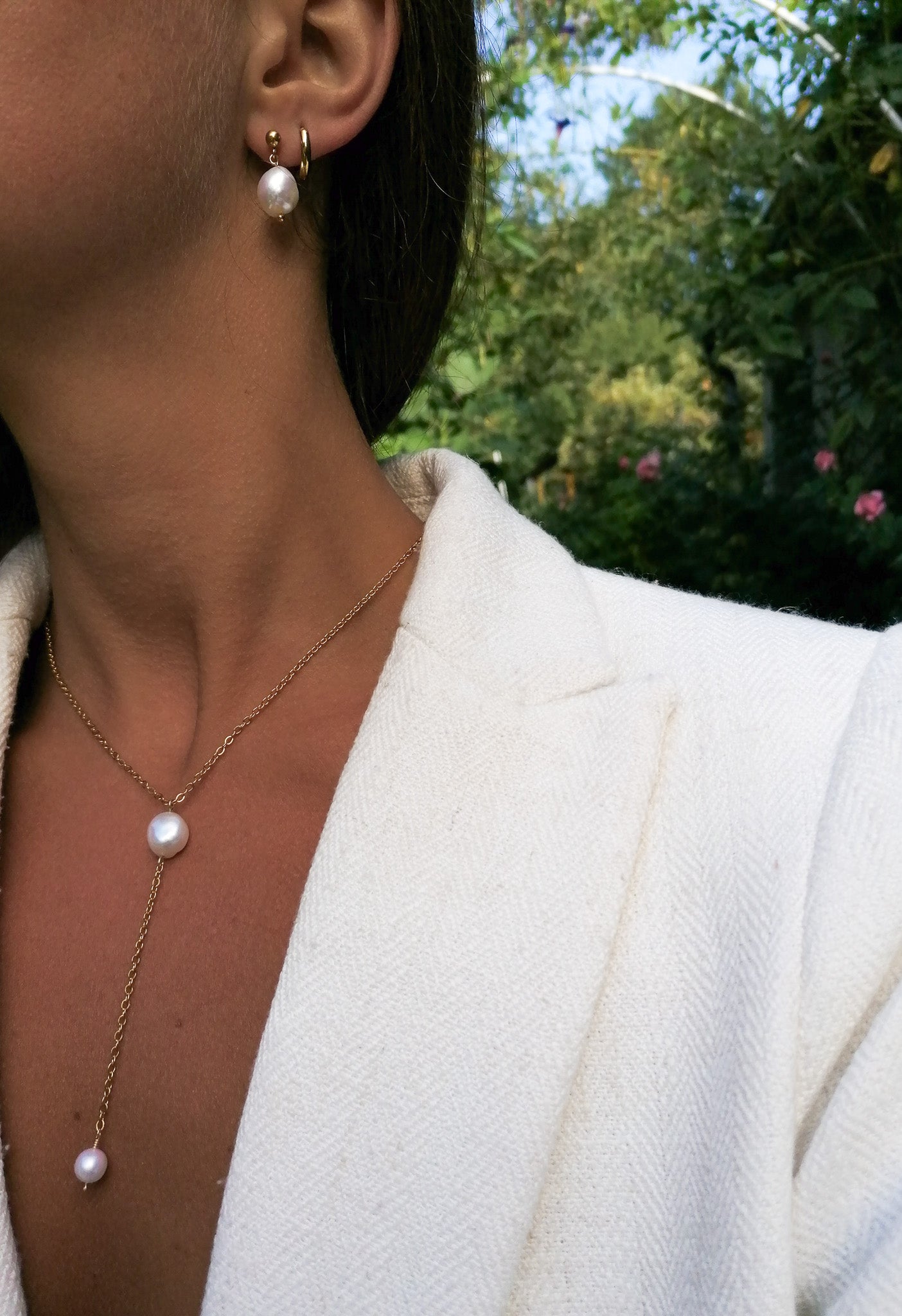 Necklace with two white freshwater pearls in the shape of a Y-shape