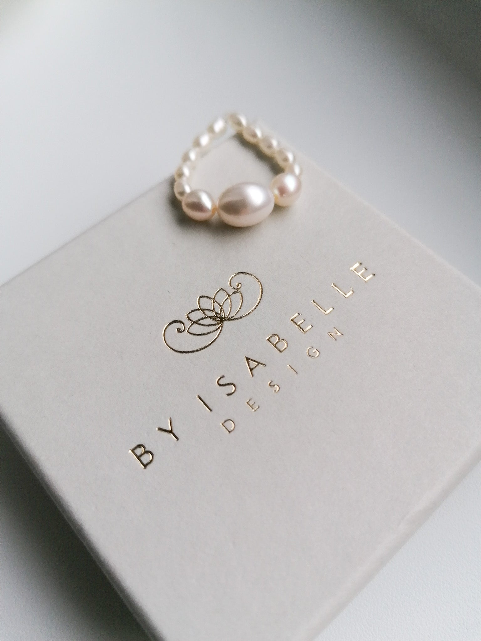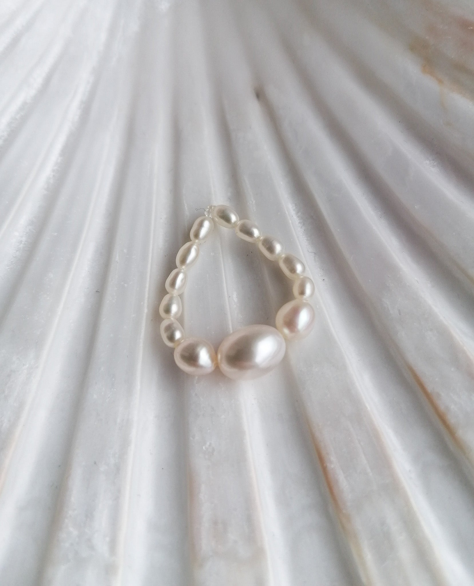 Ring made of oval freshwater pearls with a beautiful shine
