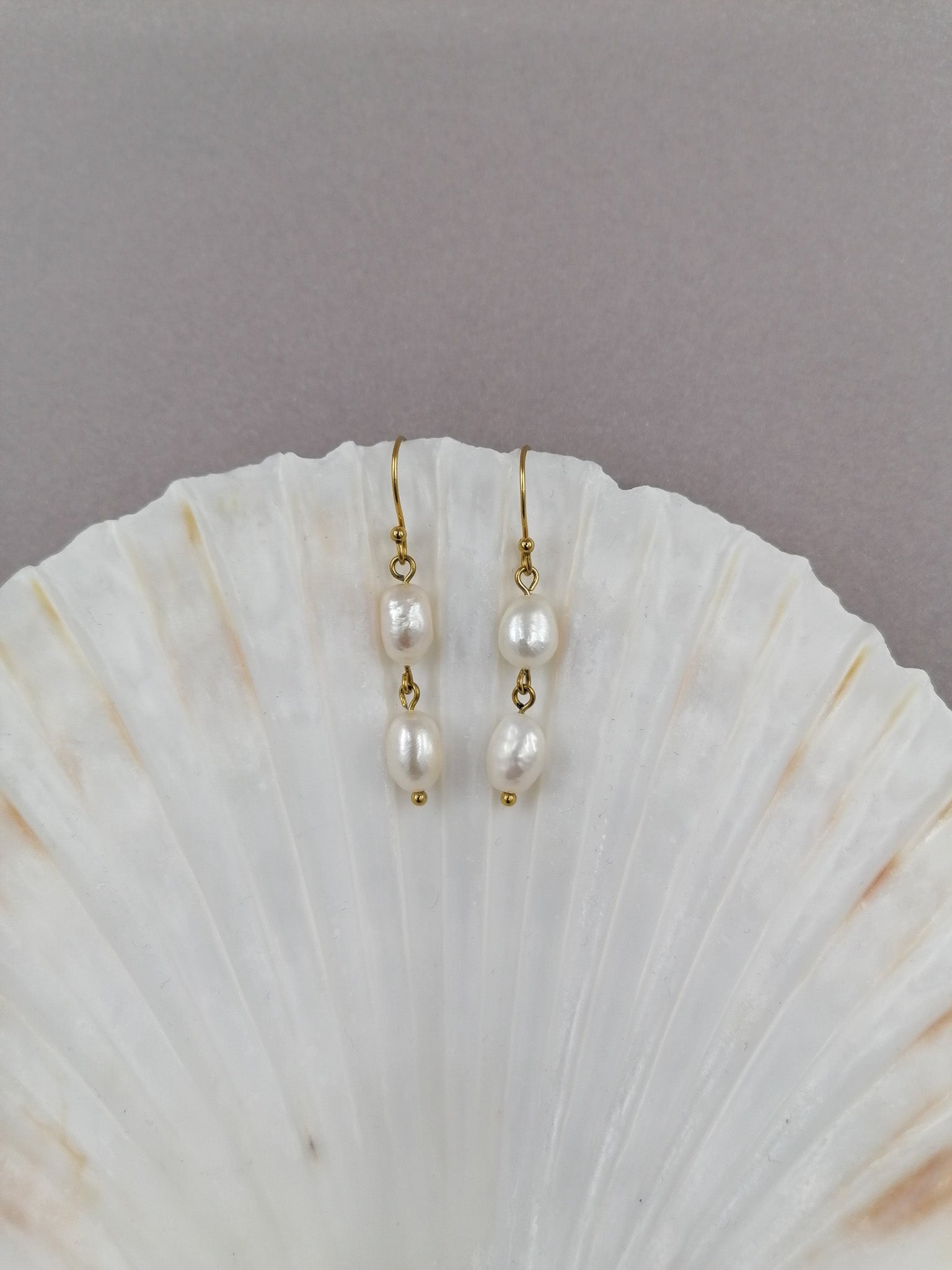 Made of PVD gold-plated steel - the jewelry is suitable for everyday wear, the gold color lasts even after contact with water/sweat (but please do not bathe with pearls or other gemstones, this gold-plating method will guarantee that the jewelry will remain beautiful for years, however, gemstones are destroyed by water/bathing