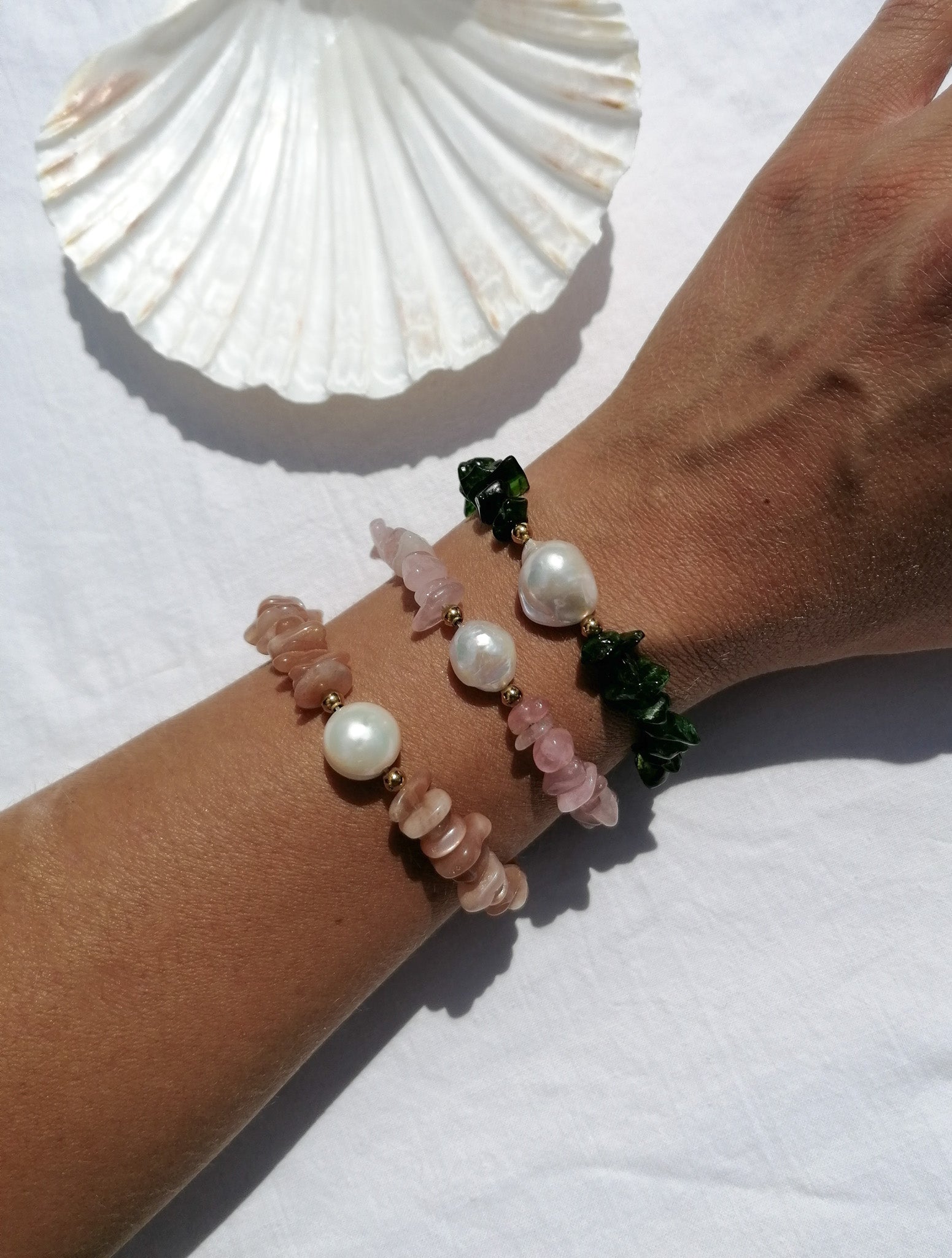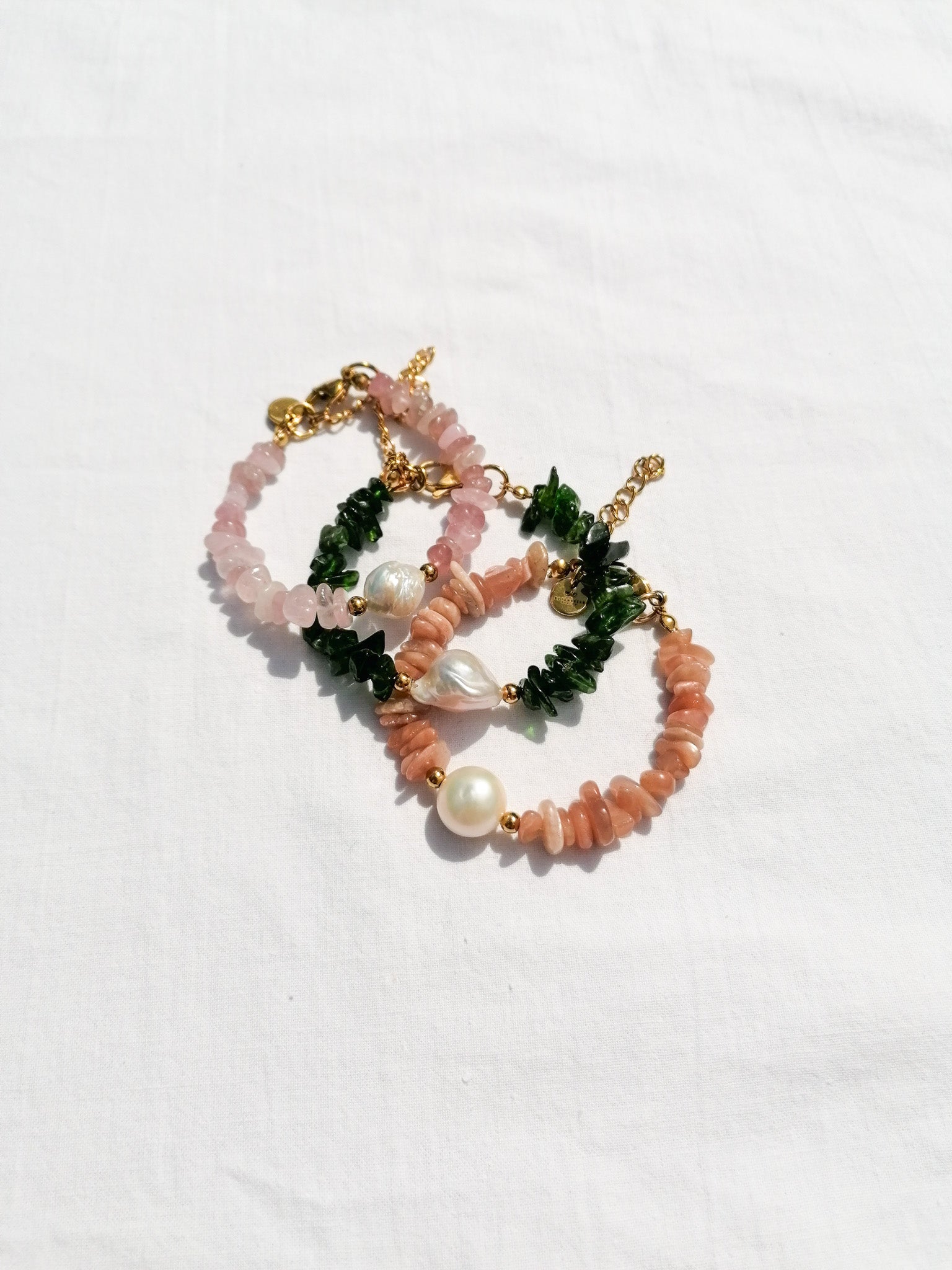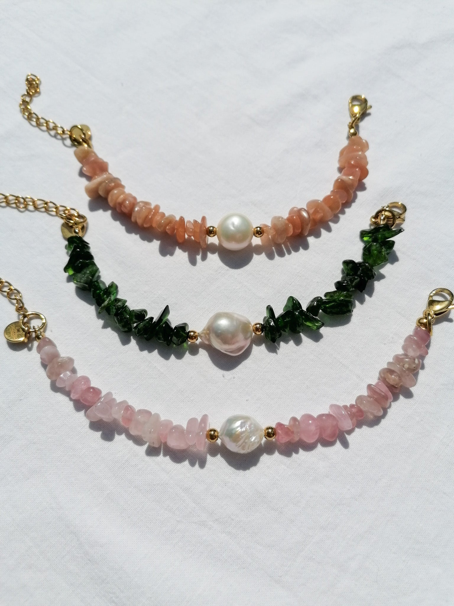 Pearls, minerals and gemstones should not come into contact with water, cosmetics or sweat - over time they will wear out more. I recommend removing all jewellery when doing sports, sleeping or other strenuous activities to extend their lifespan. The exception is all-metal jewellery made of steel without stones or pearls.