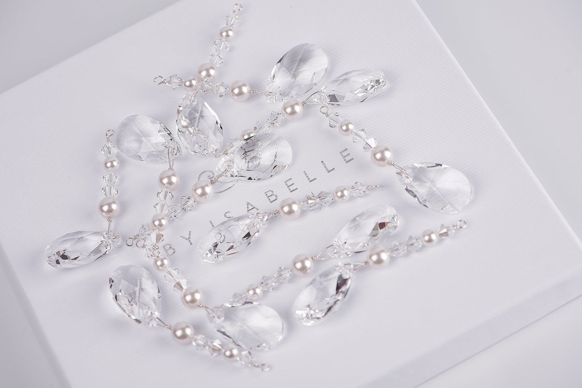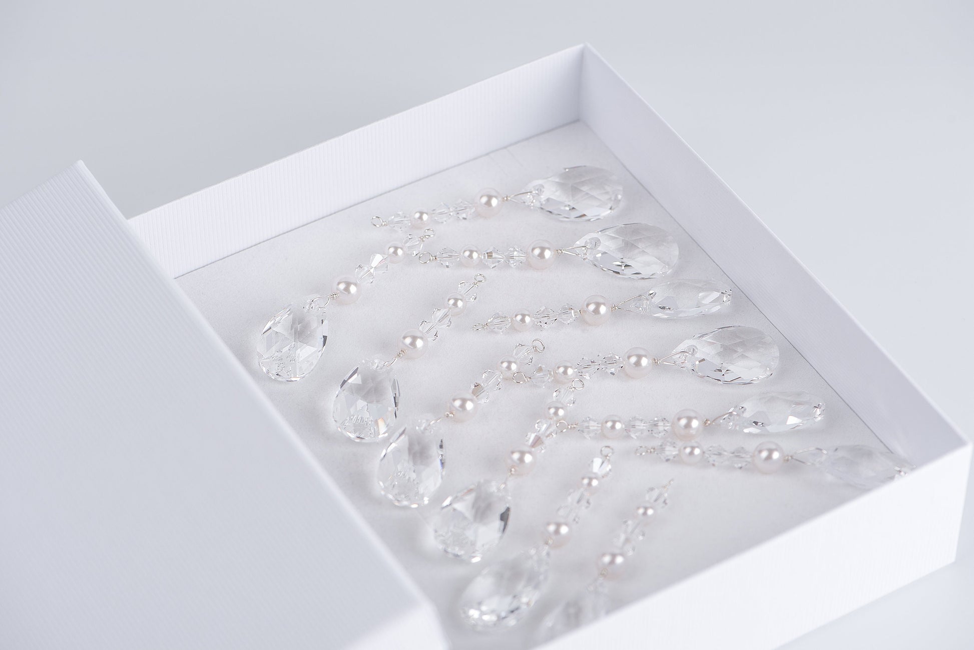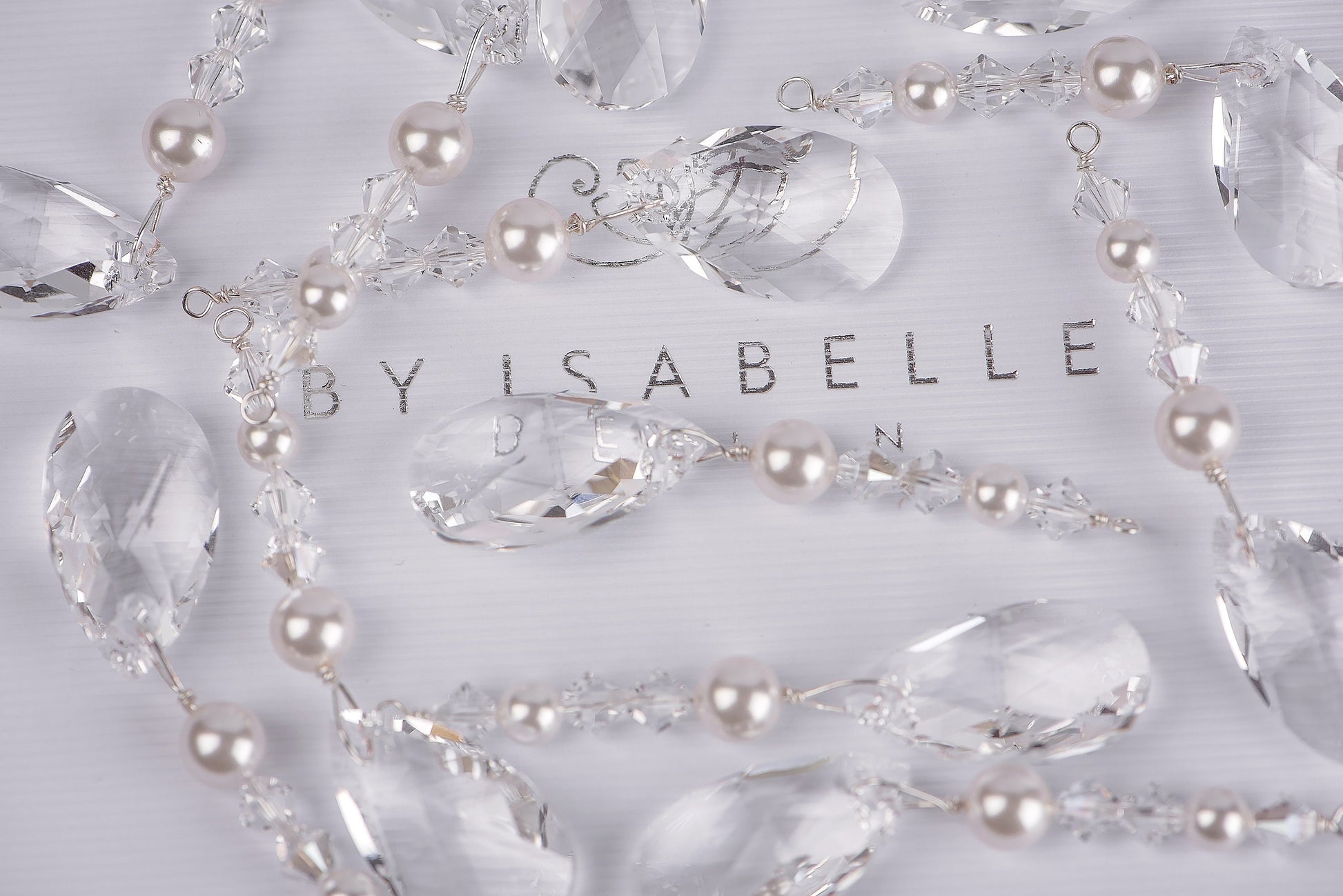 Sparkling icicle-like trimmings made of crystals and pearls from the Austrian brand