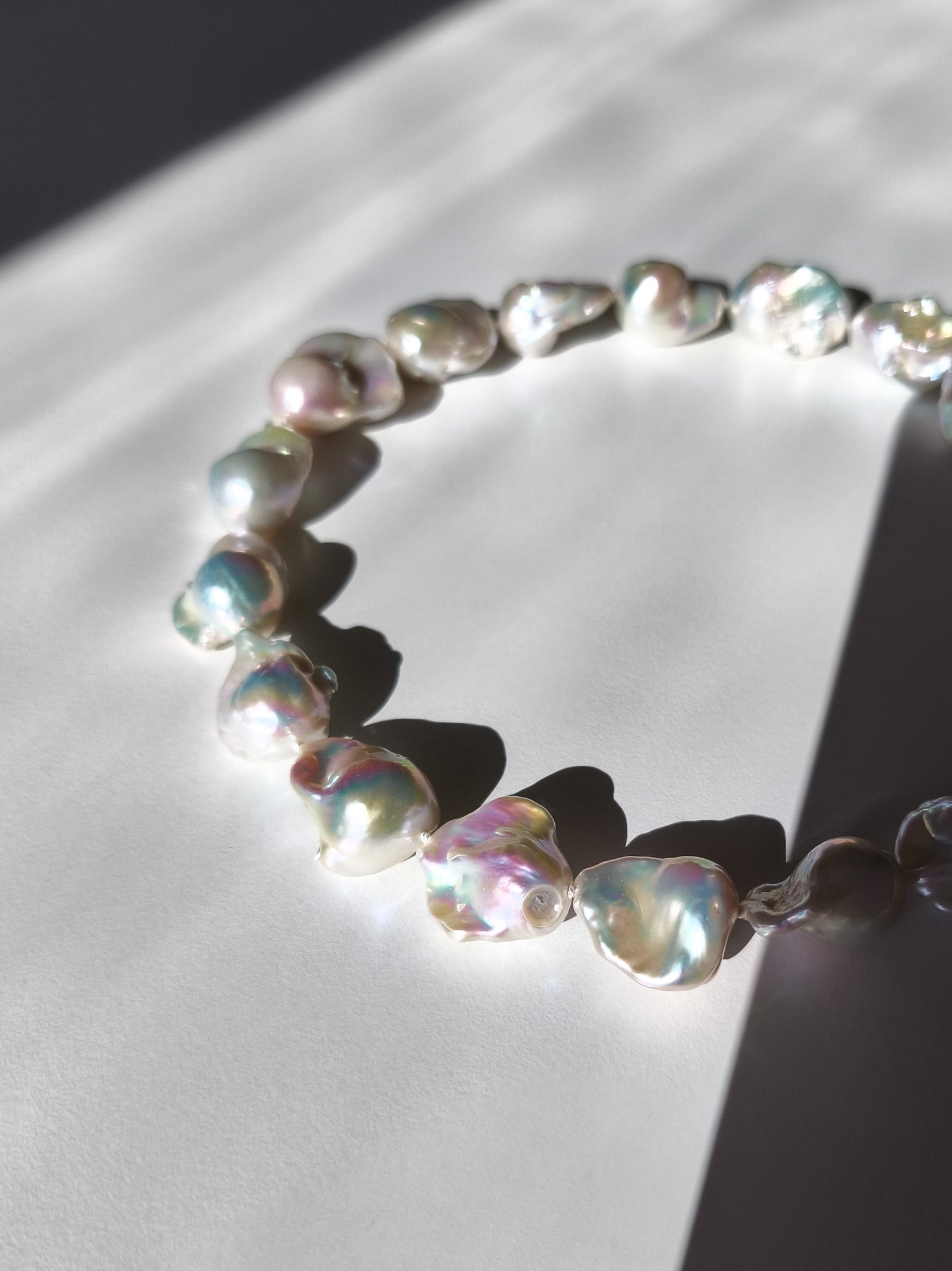 Pearls, minerals and gemstones should not come into contact with water, cosmetics or sweat - over time they will wear out more. I recommend removing all jewellery when doing sports, sleeping or other strenuous activities to extend their lifespan. The exception is all-metal jewellery made of steel without stones or pearls.