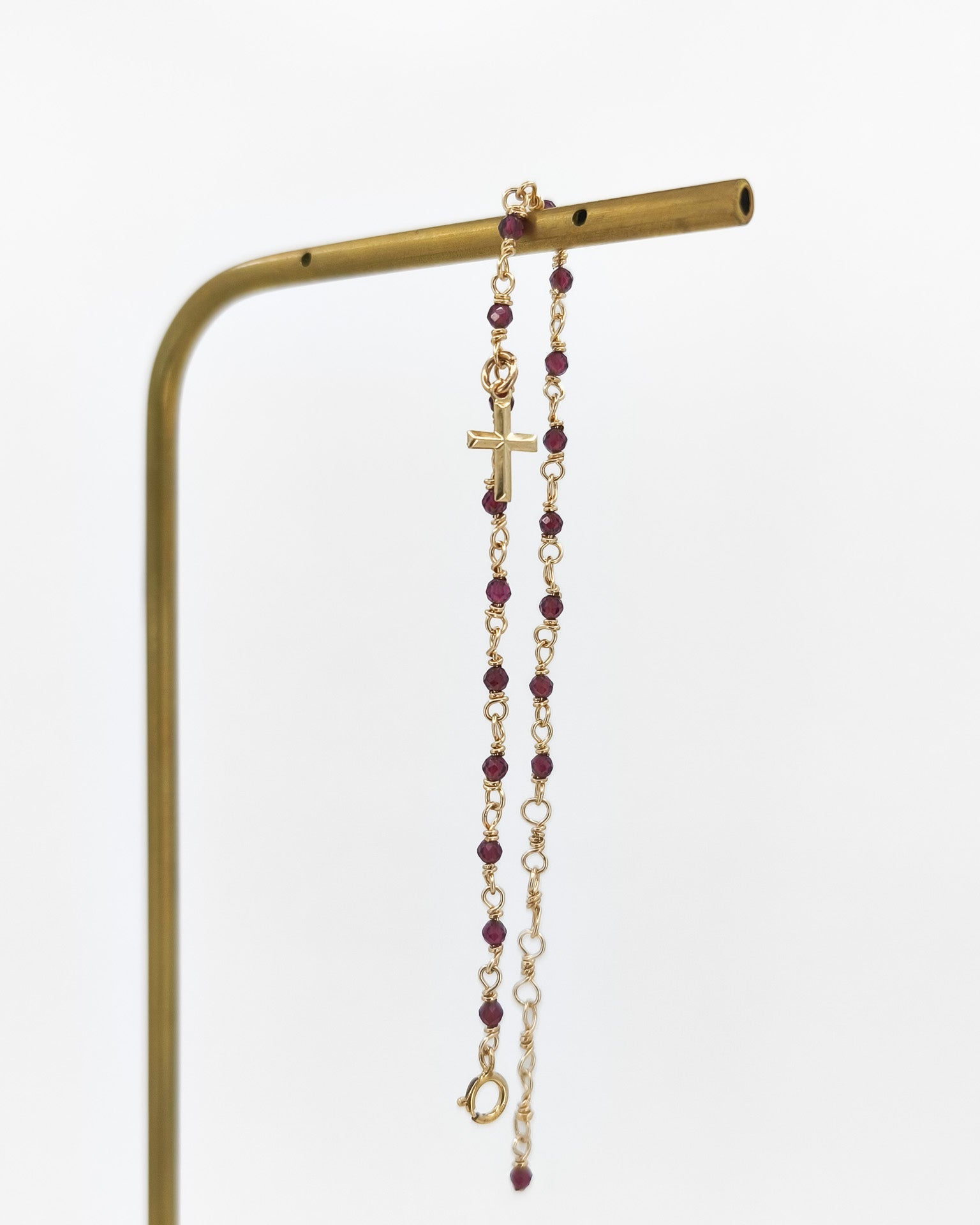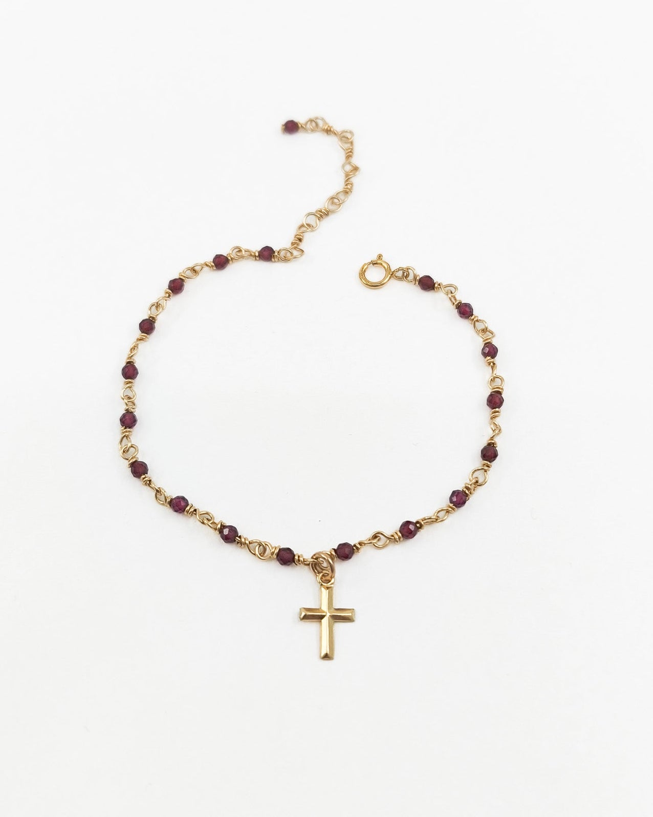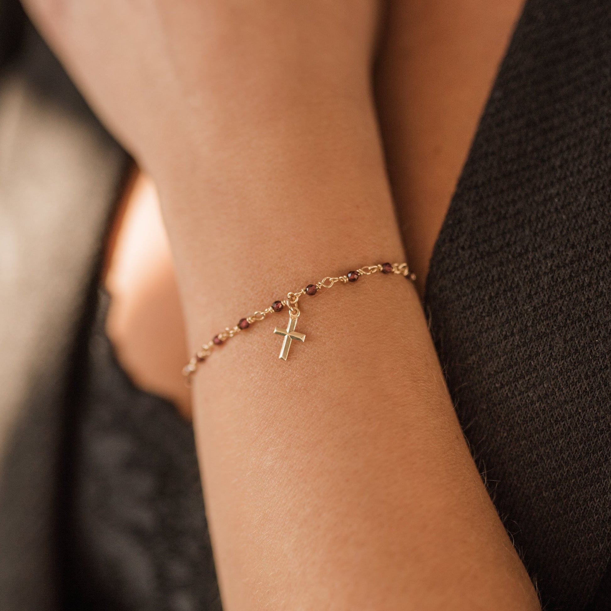 Granátový náramek s křížkem