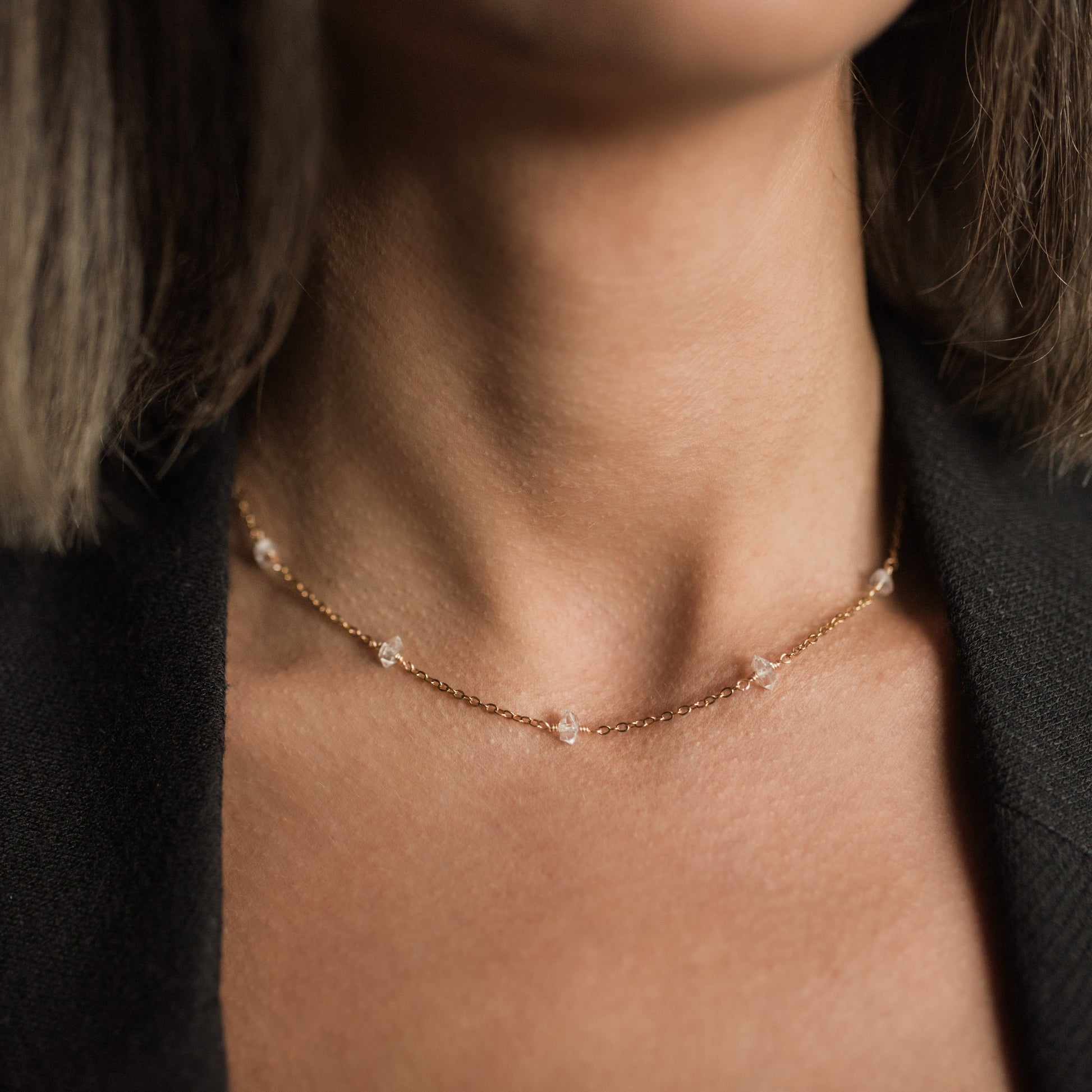 Řetízkový náhrdelník s herkimer diamanty