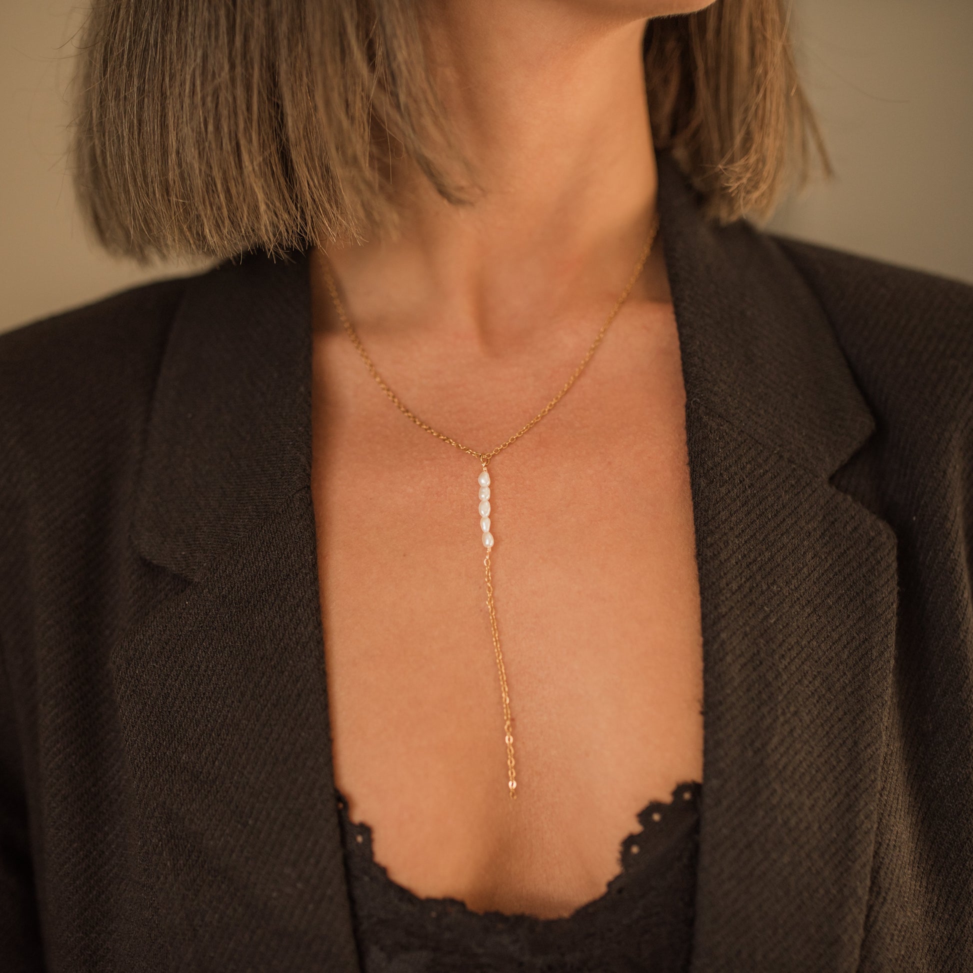 Řetízkový náhrdelník ve tvaru ypsilon s barokními perlami