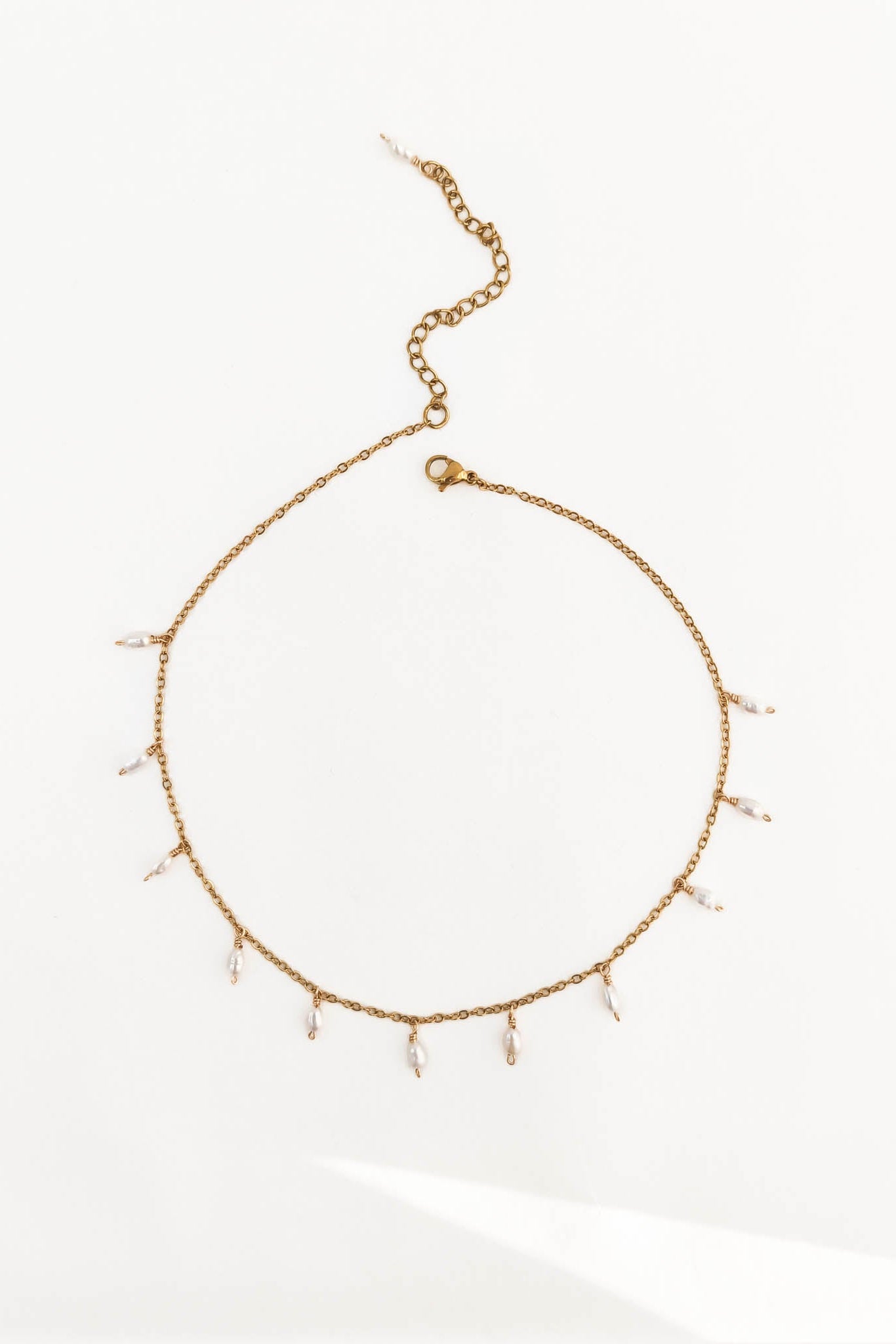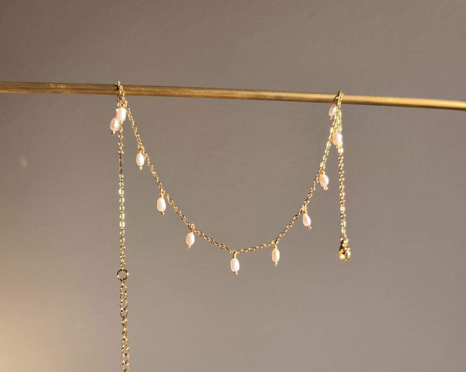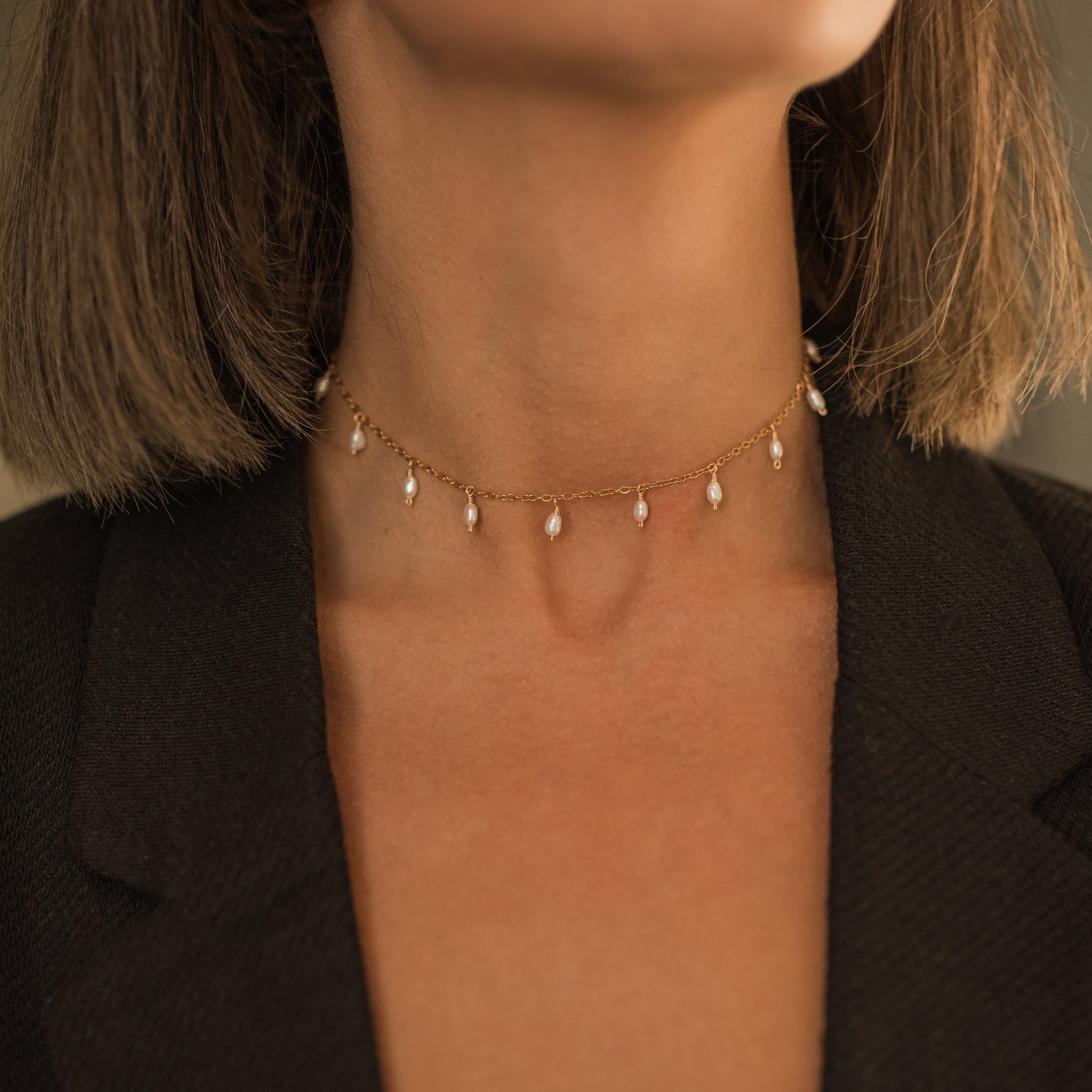 Řetízkový choker náhrdelník s perlovými přívěsky