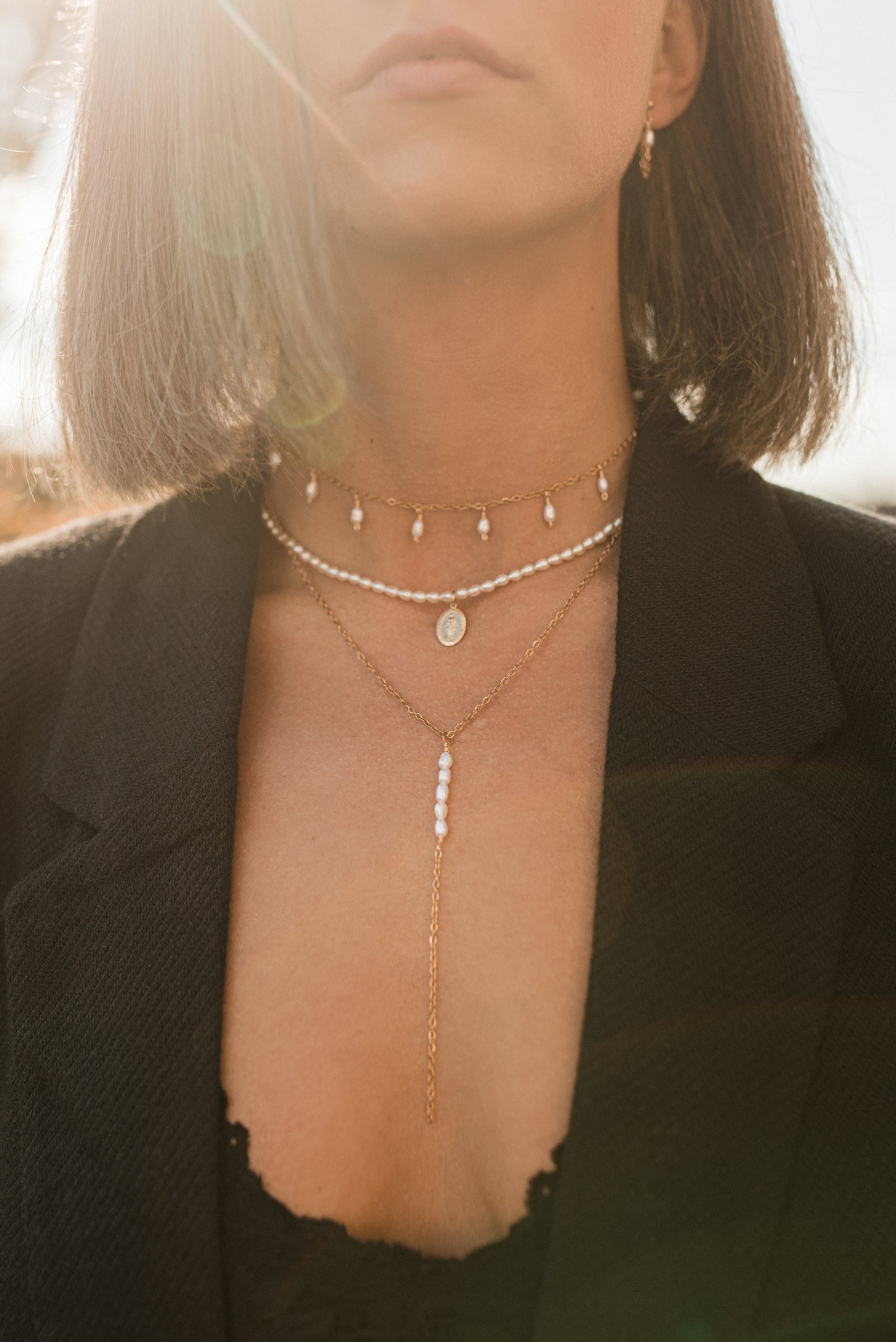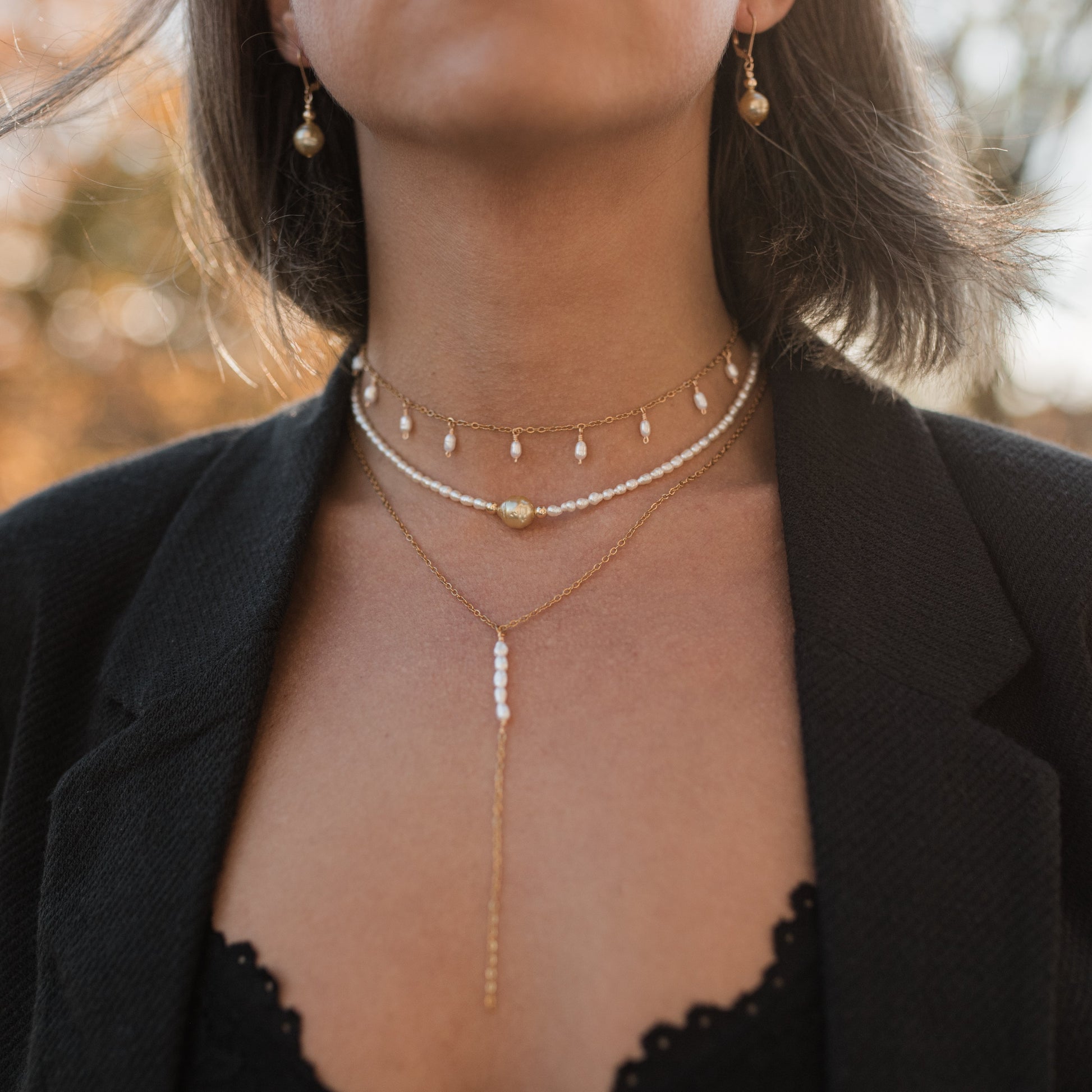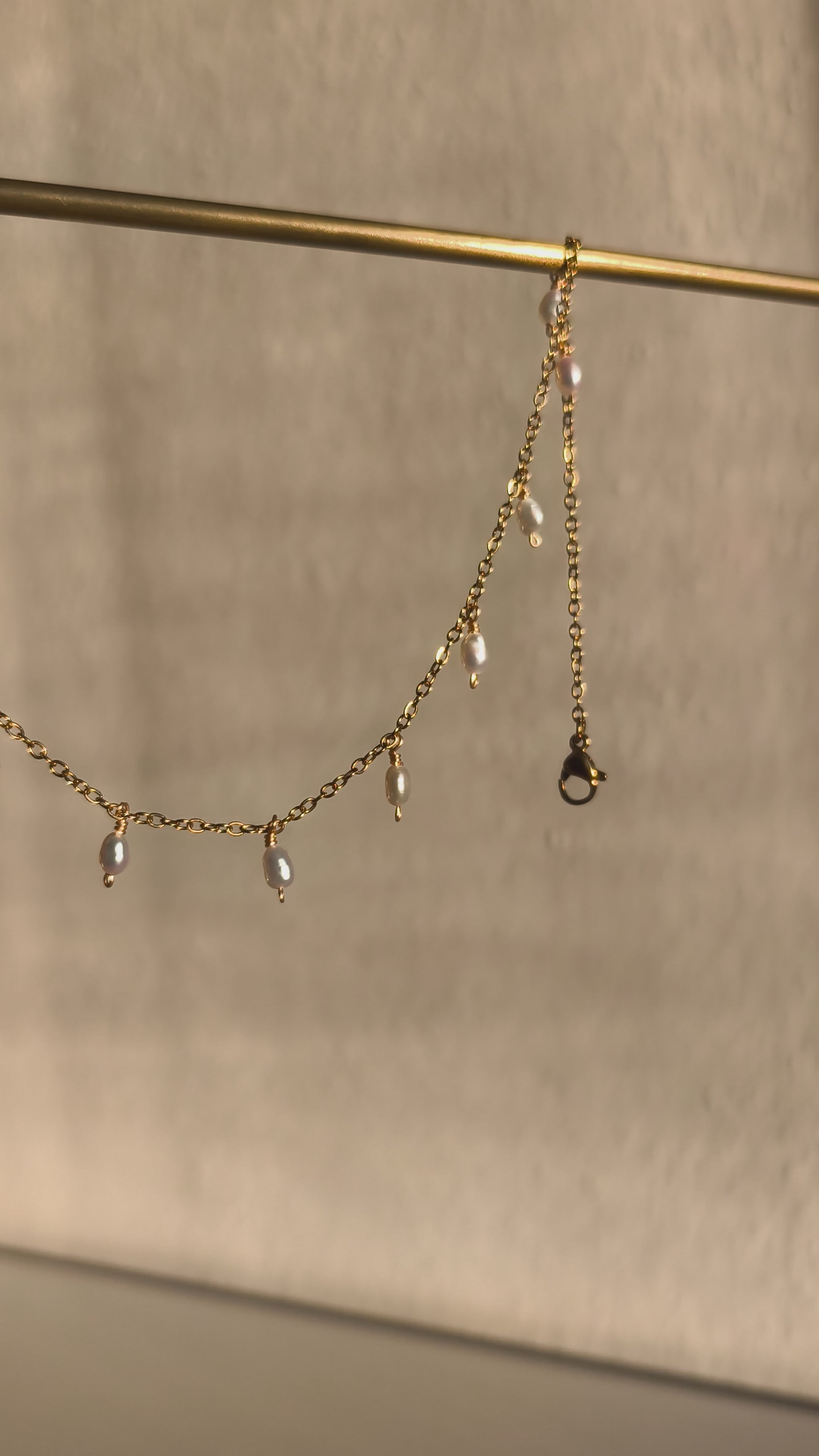 Řetízkový choker náhrdelník s perlovými přívěsky