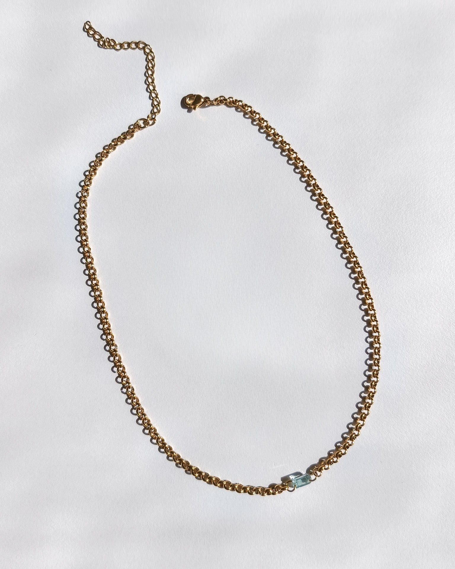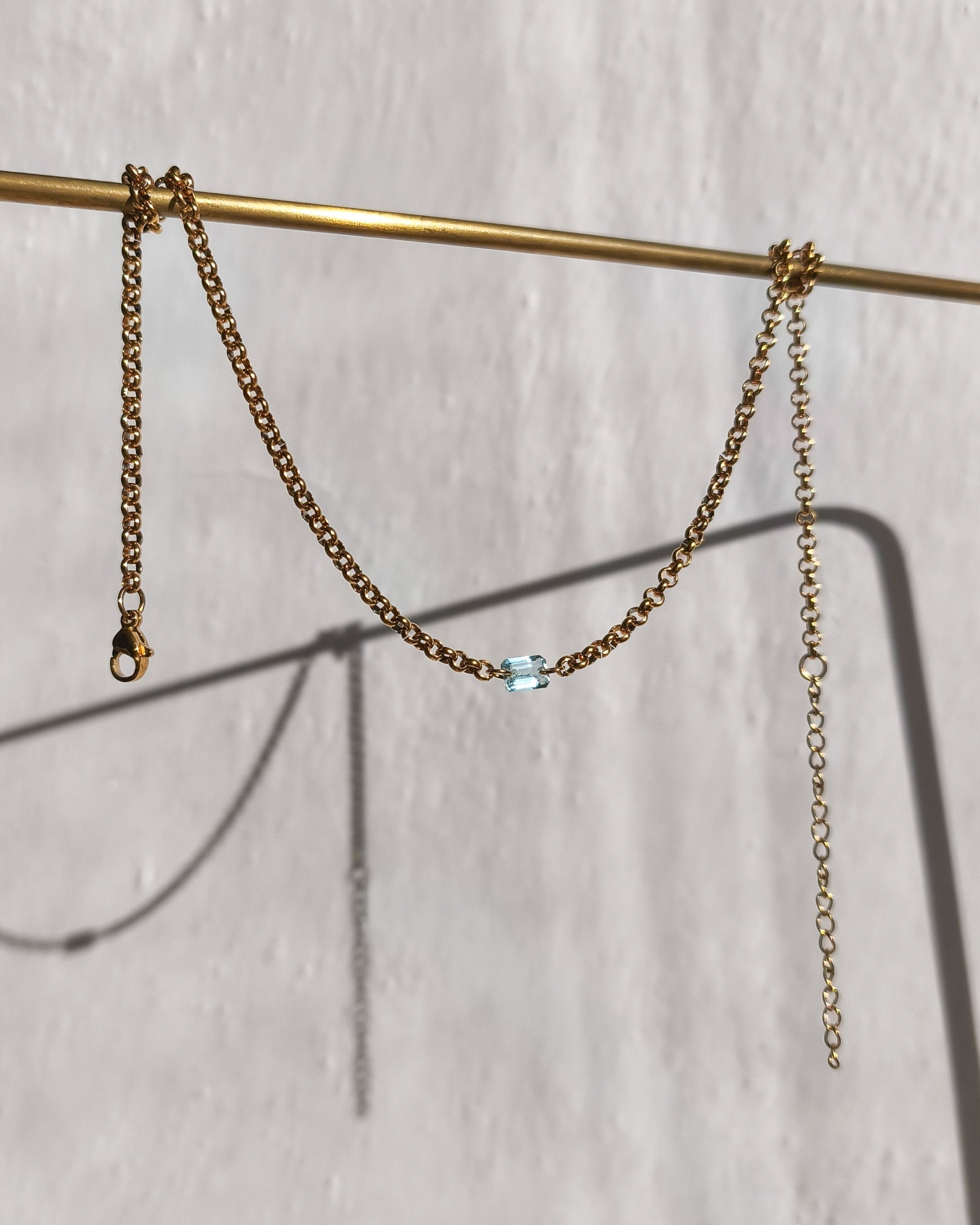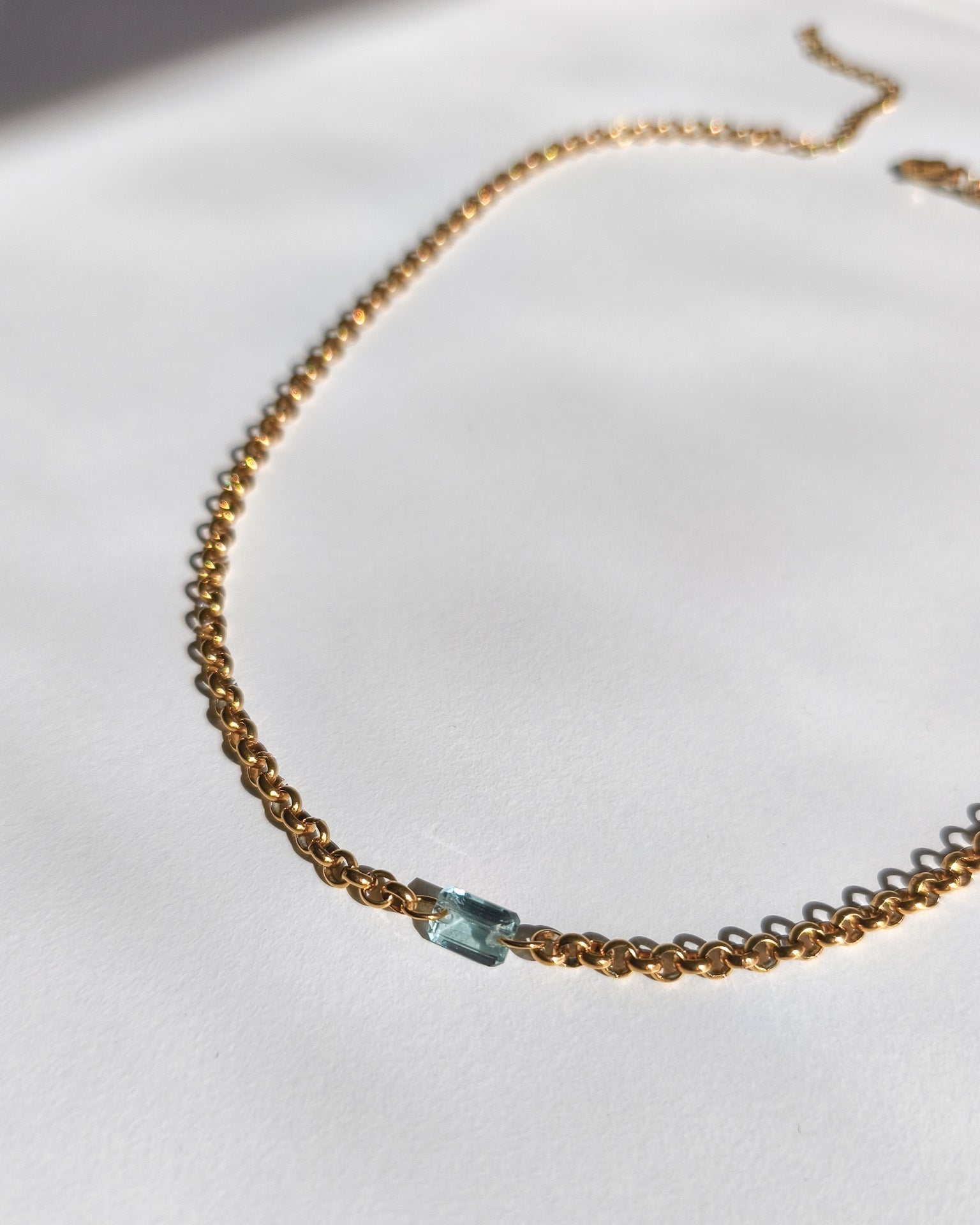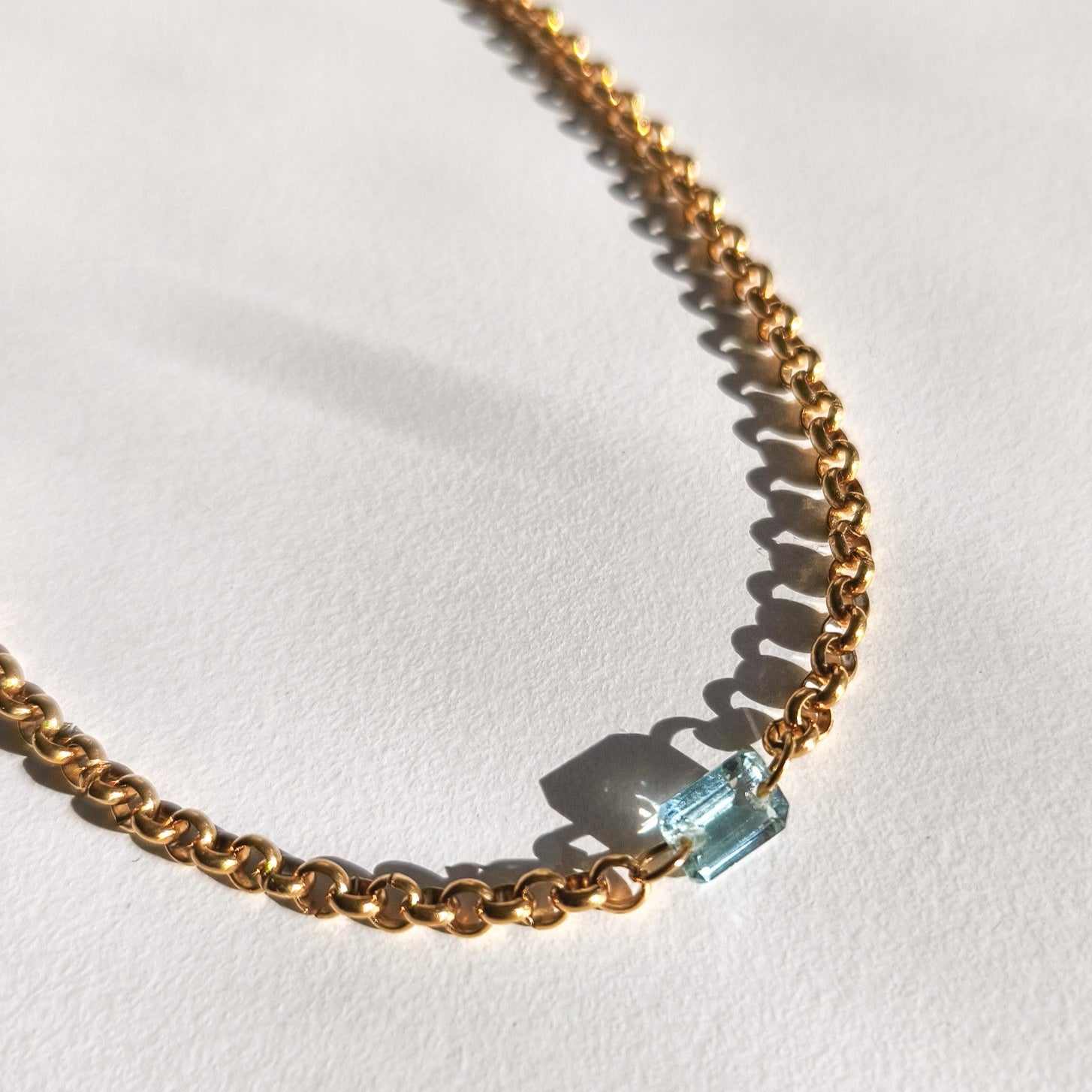 Rolo řetízek s akvamarínem s oktagonovým výbrusem