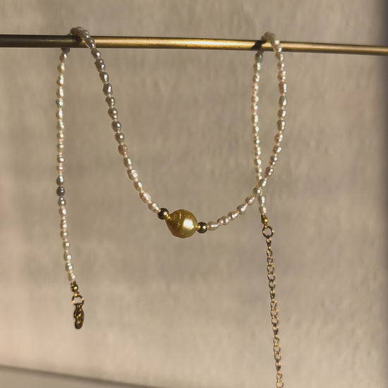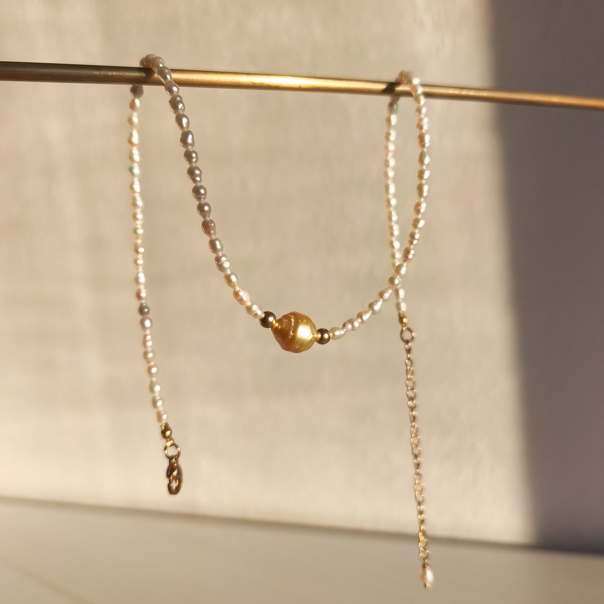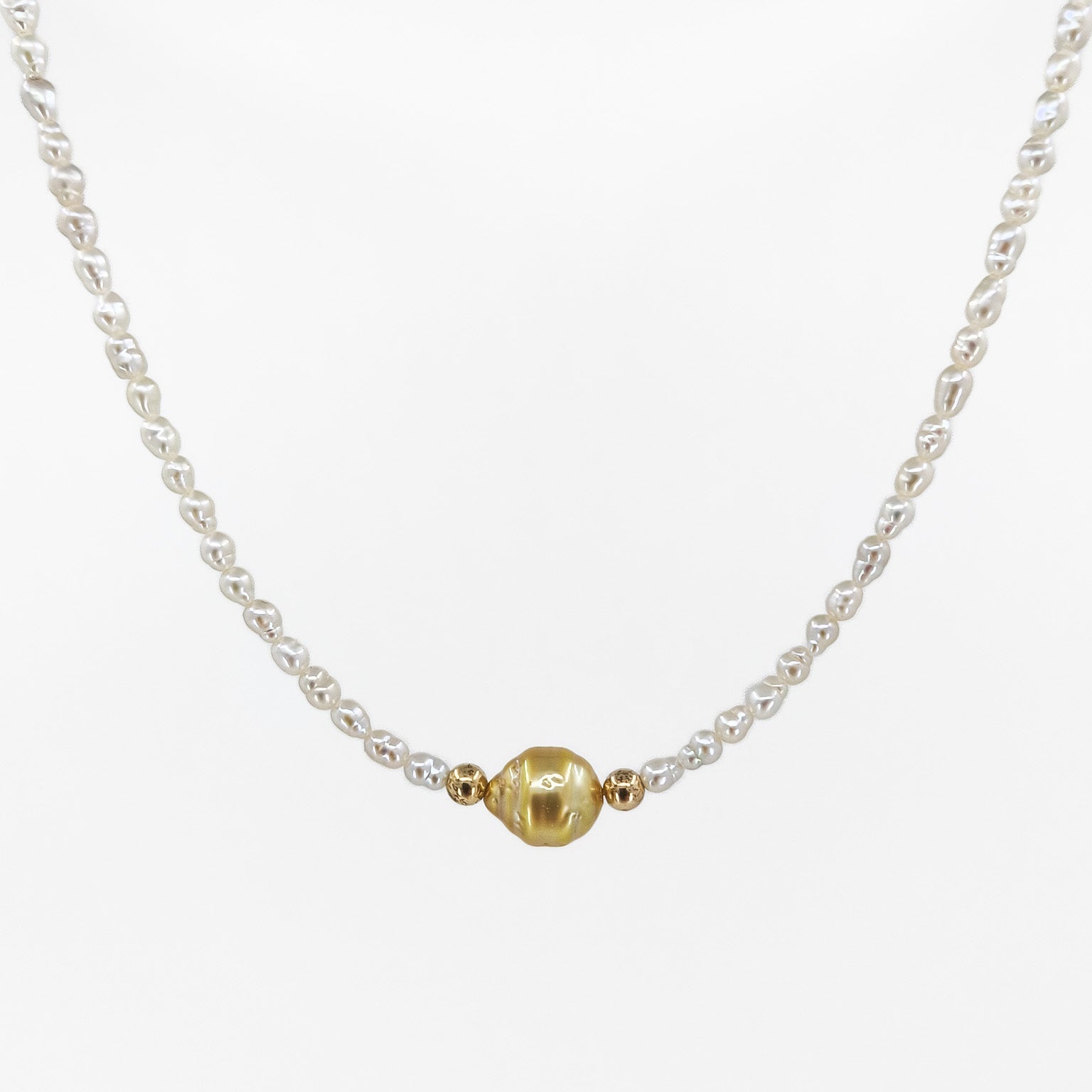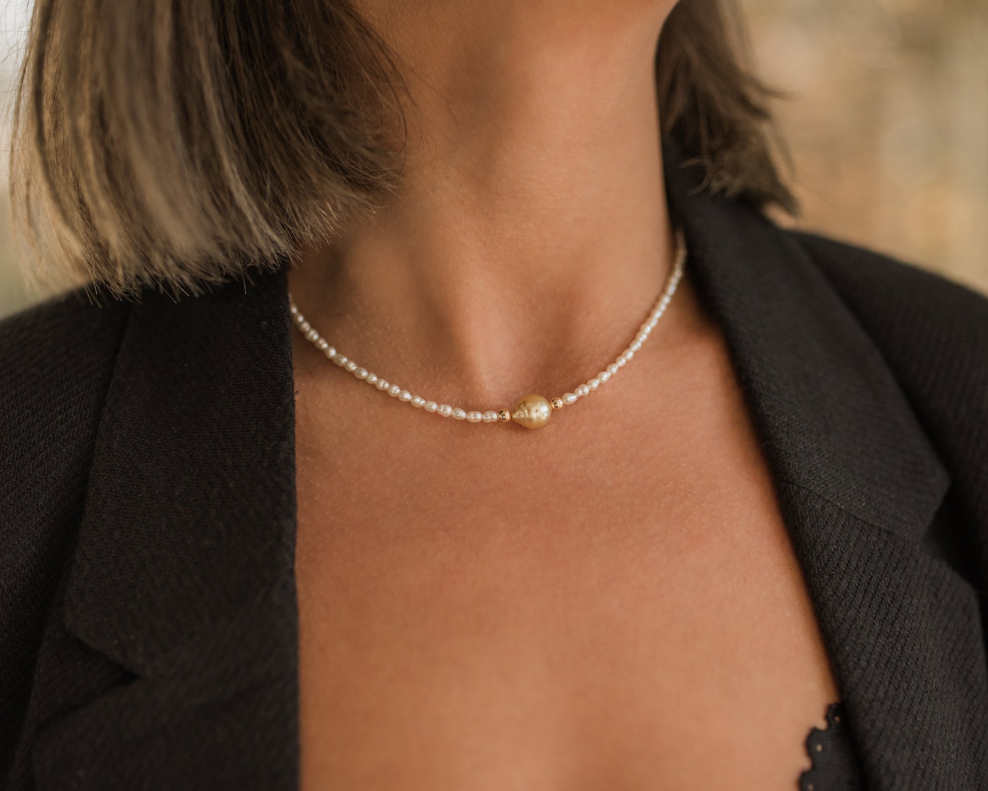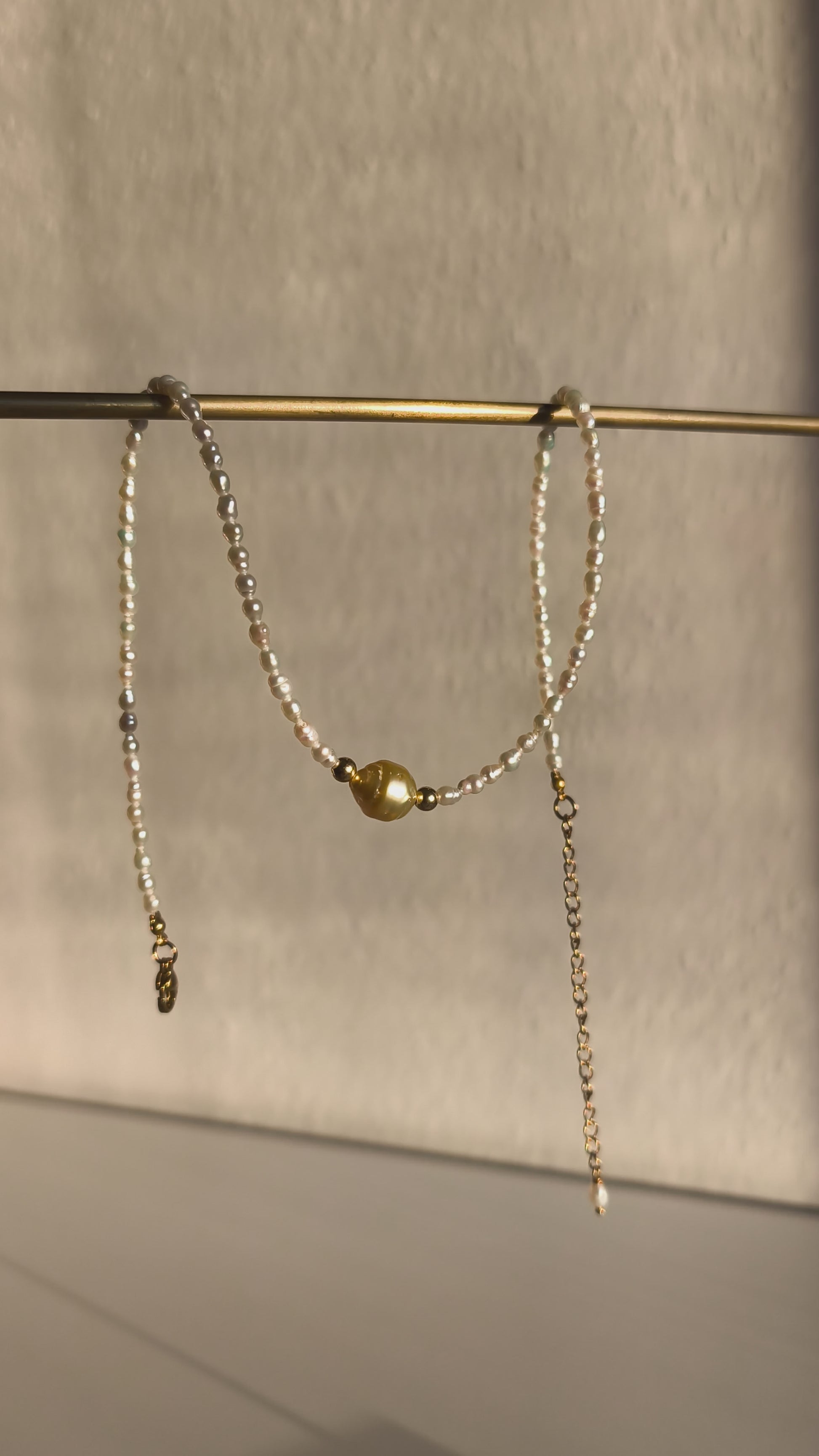 Náhrdelník vyrobený ze sladkovodních perel s jednou jihomořskou perlou uprostřed