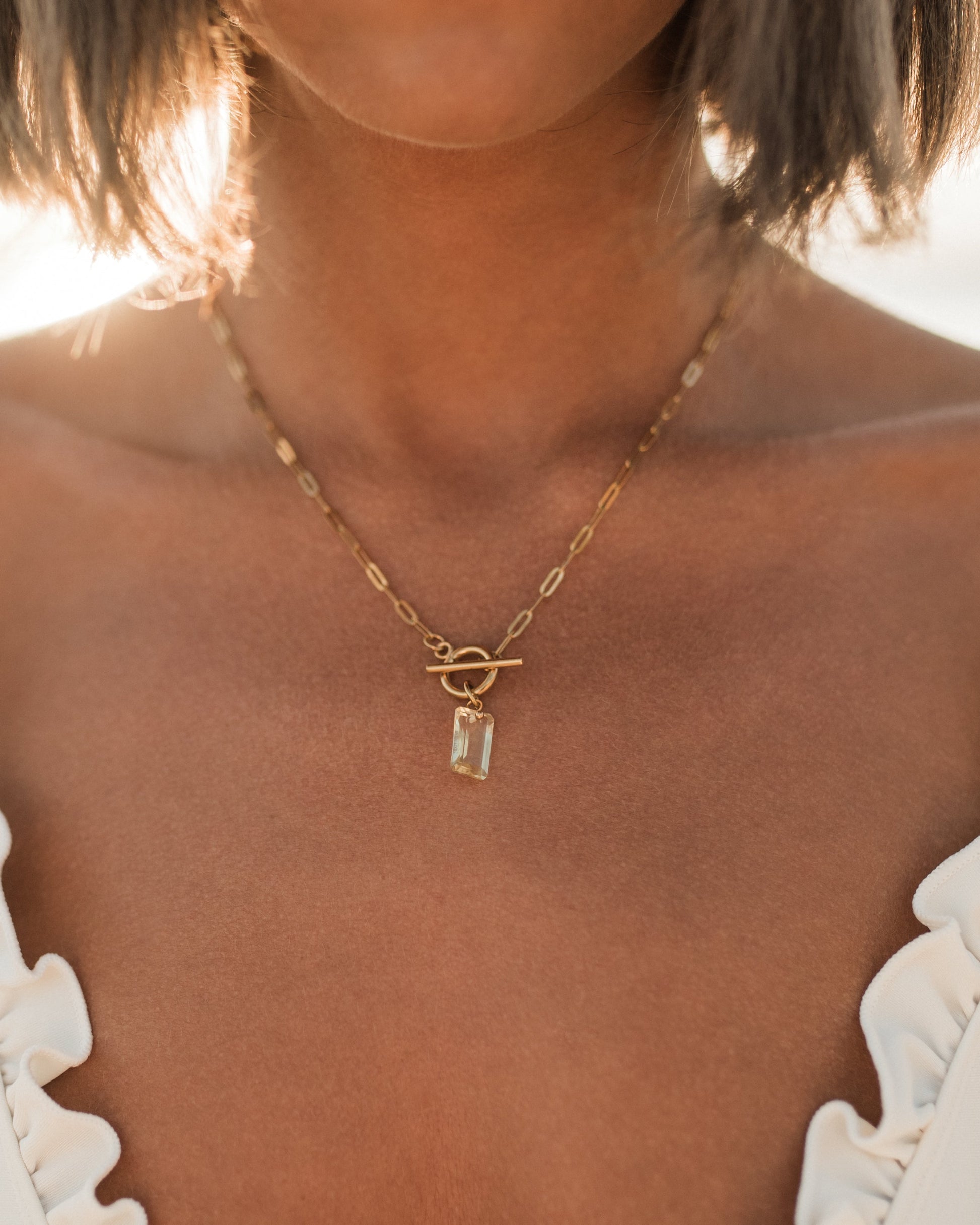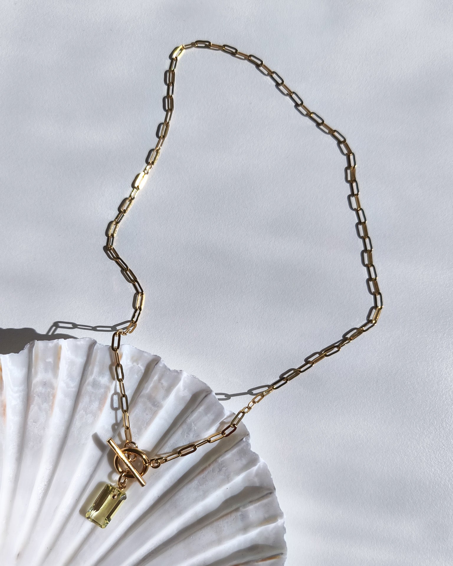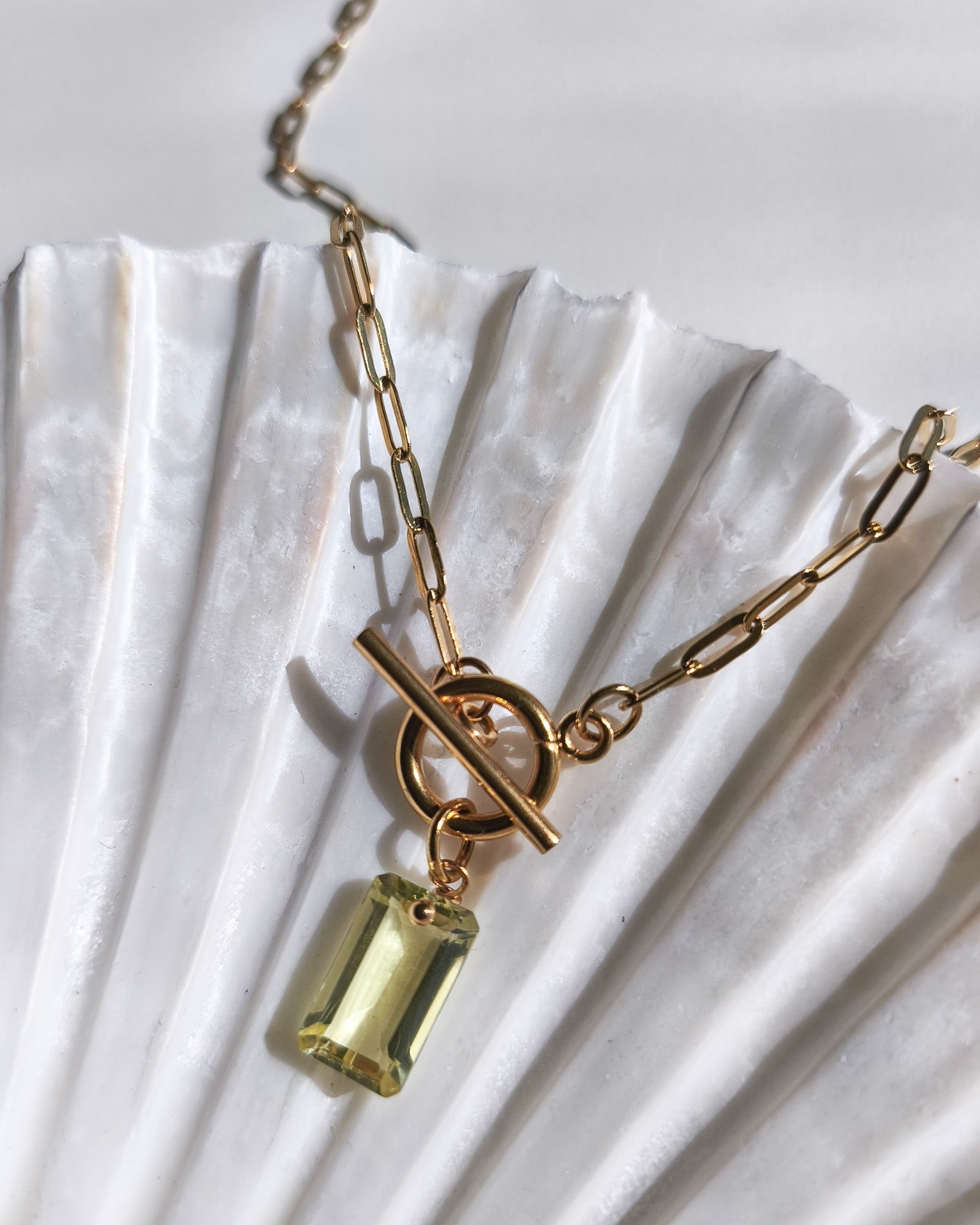 Náhrdelník z řetízku s T zapínáním a přívěskem z citrnového křemenu
